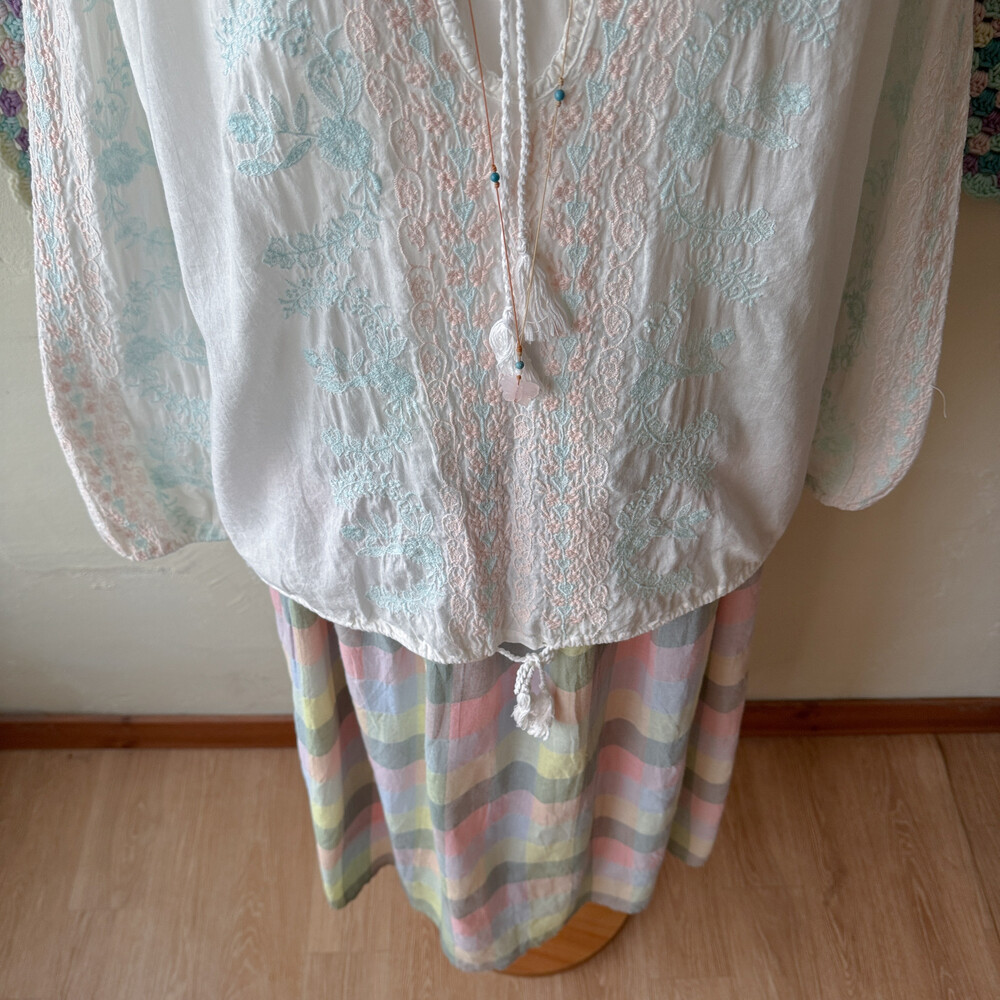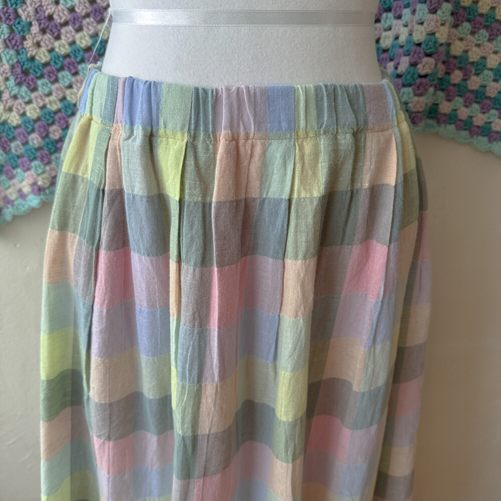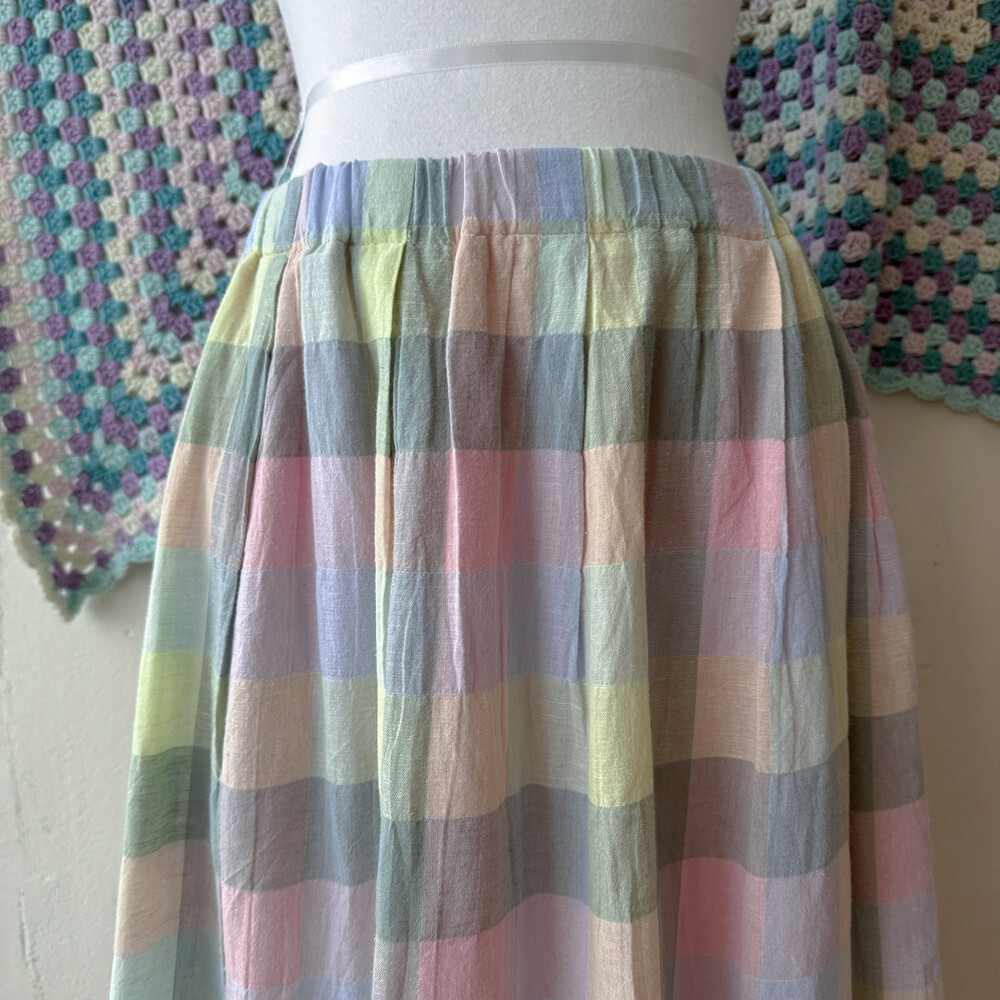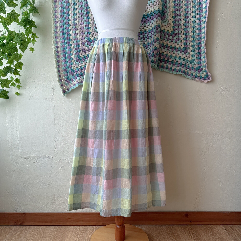 파스텔 색감의 사각체크 스커트예요