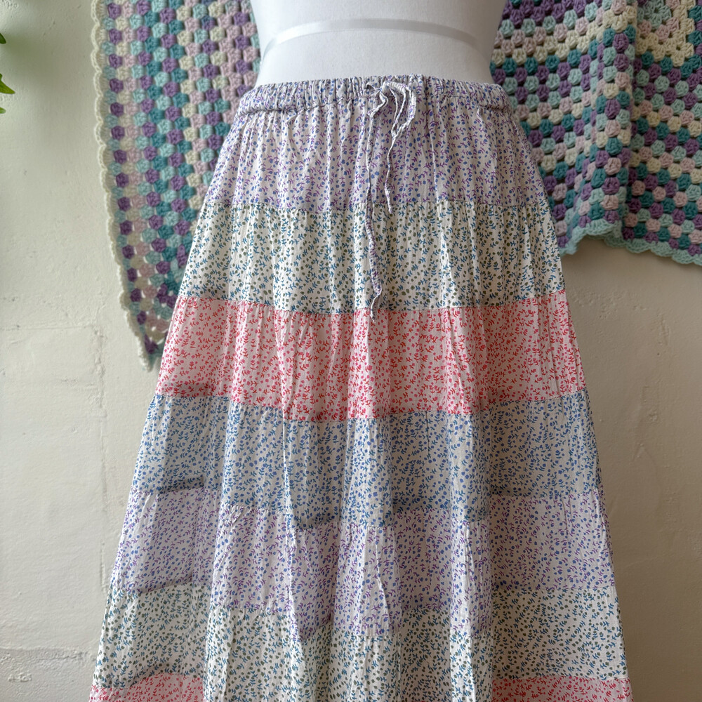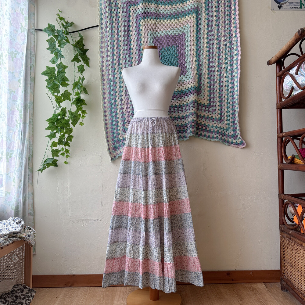 꽃무늬 패턴의 패치워크 스커트예요