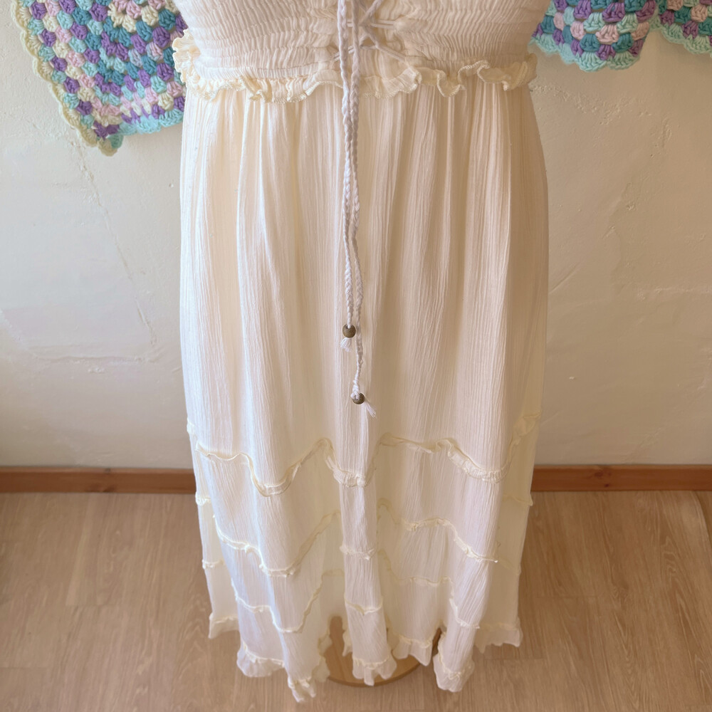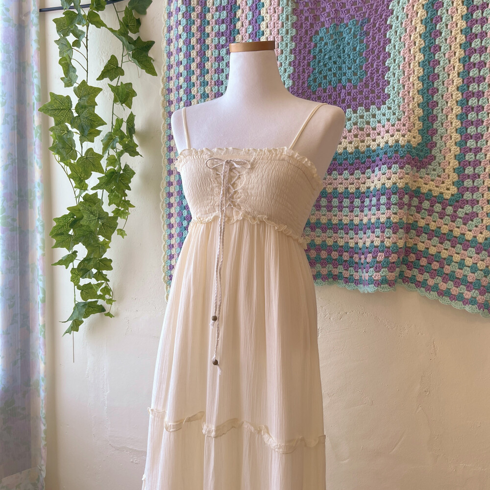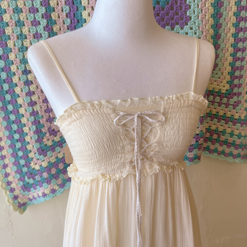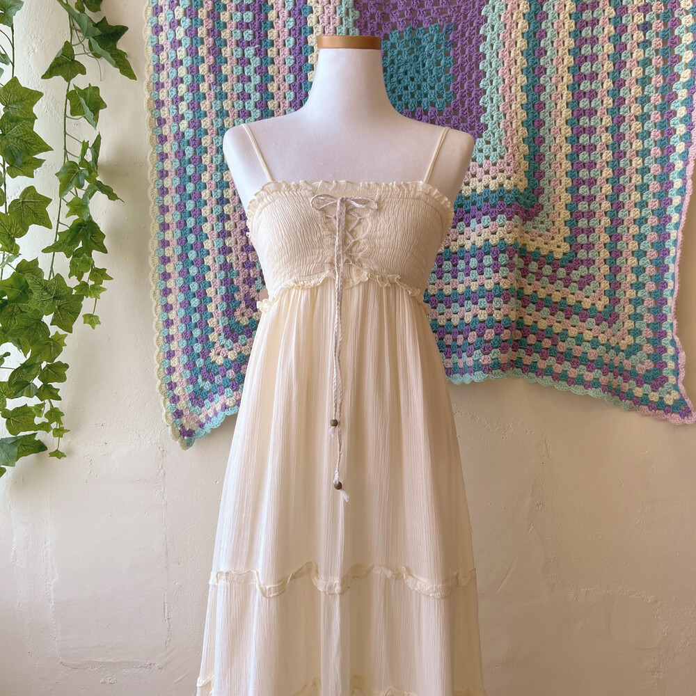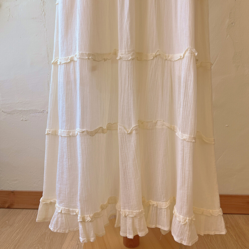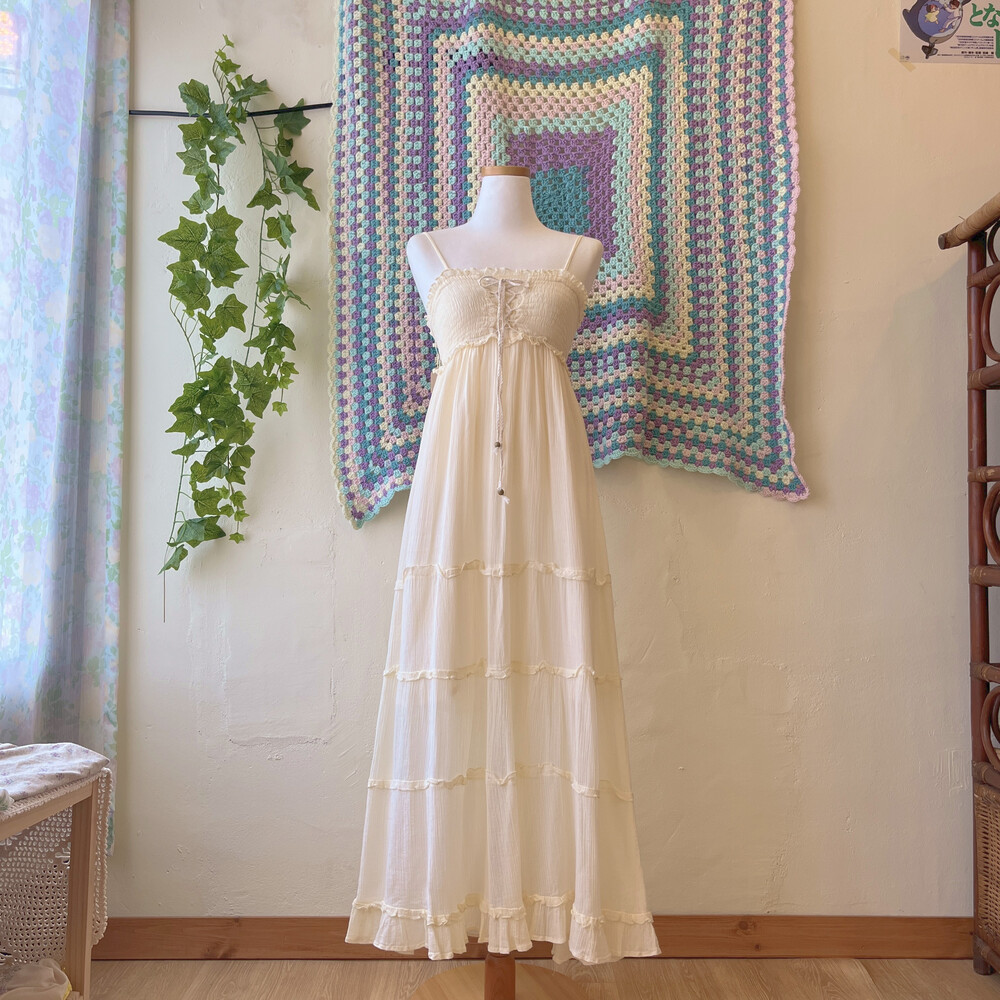 아이보리 색감의 아일렛 코튼 끈원피스예요