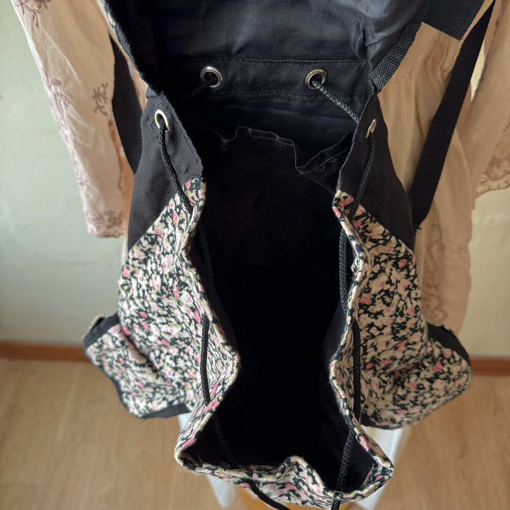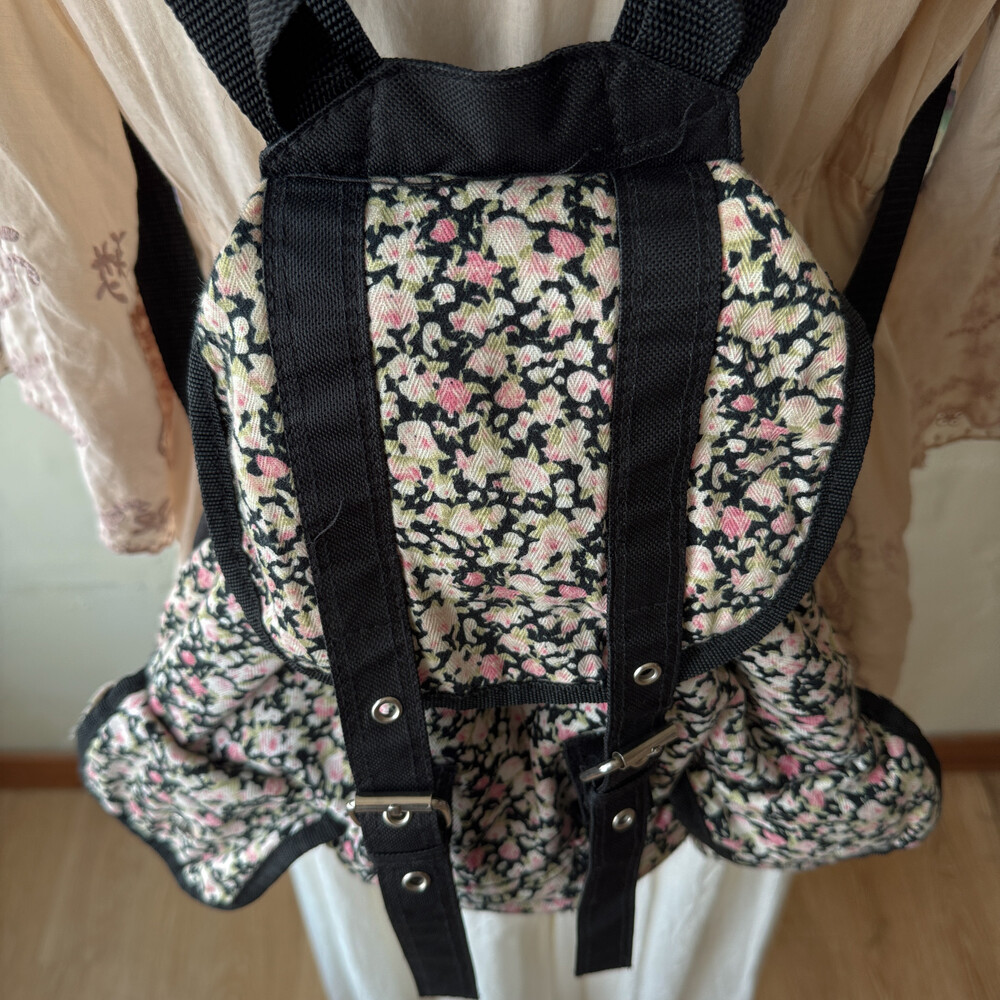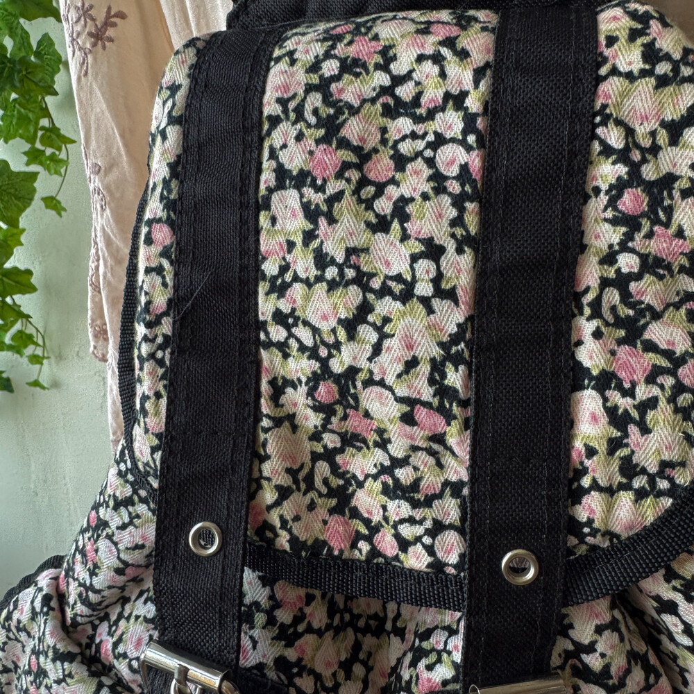 black base pink flower 3pocket backpack