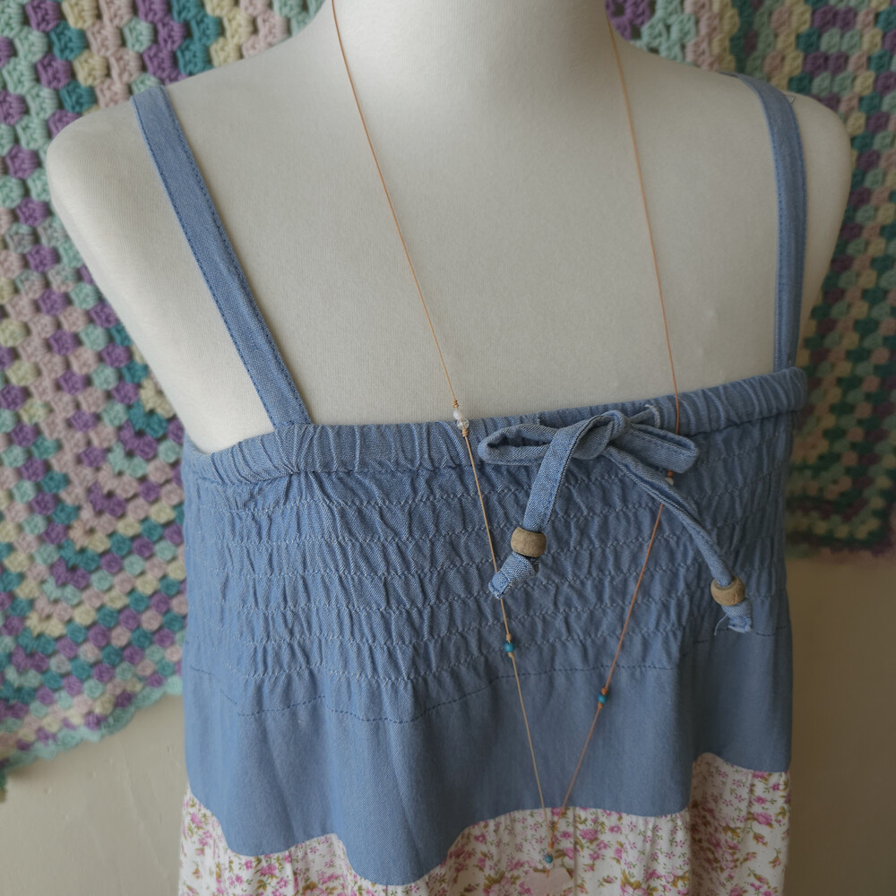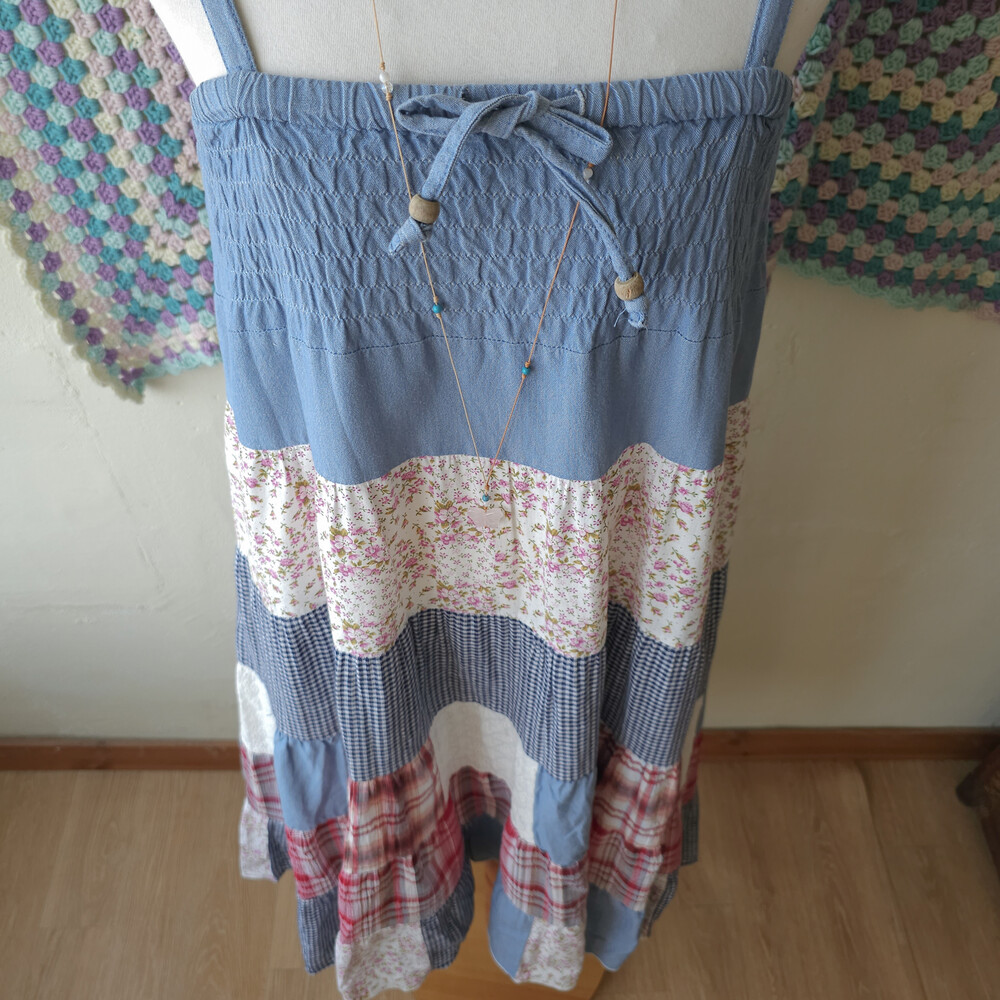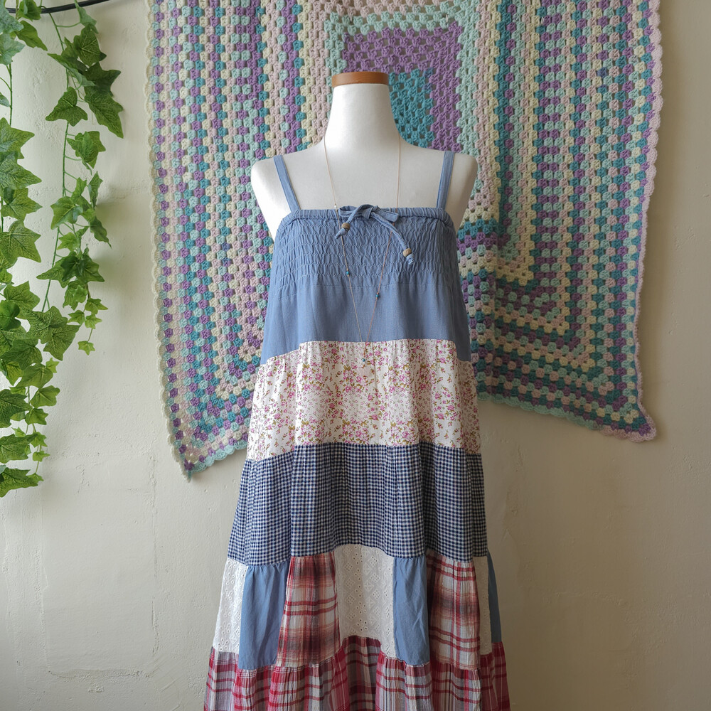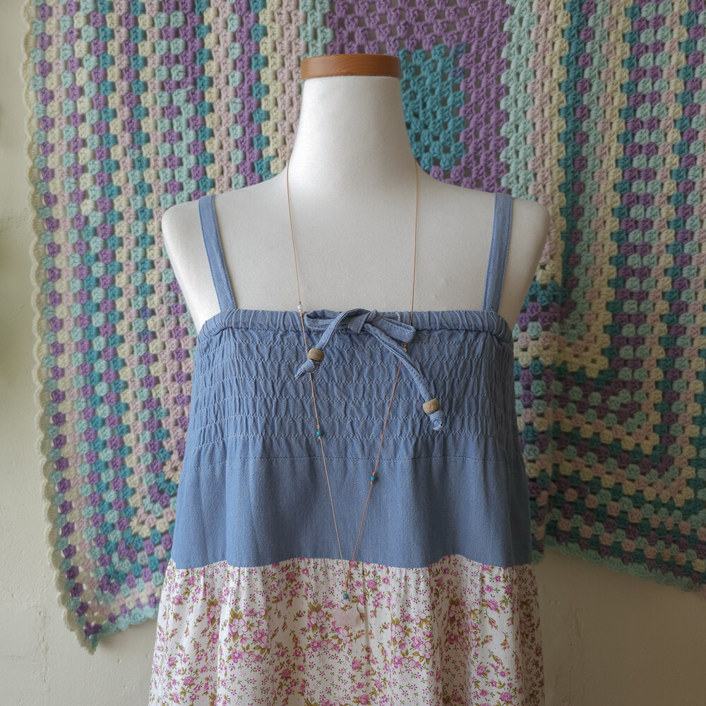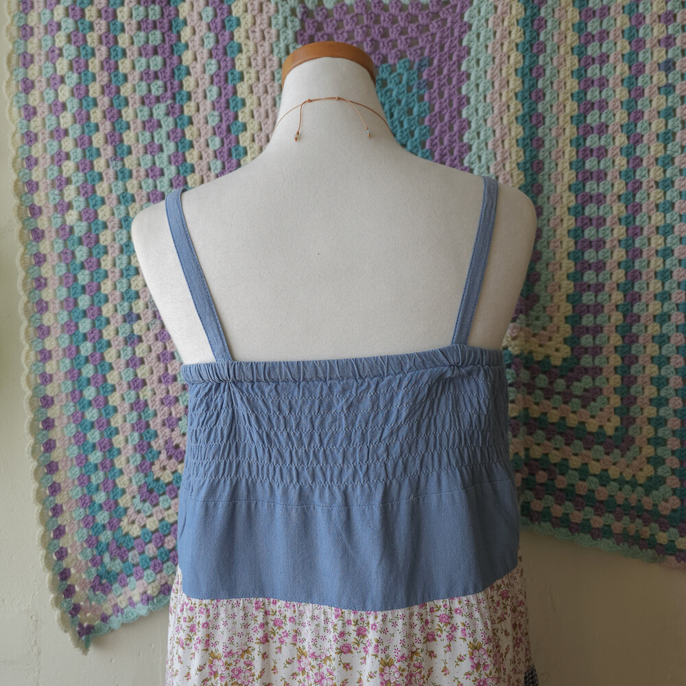 데님 베이스의 패치워크 2way 끈원피스예요