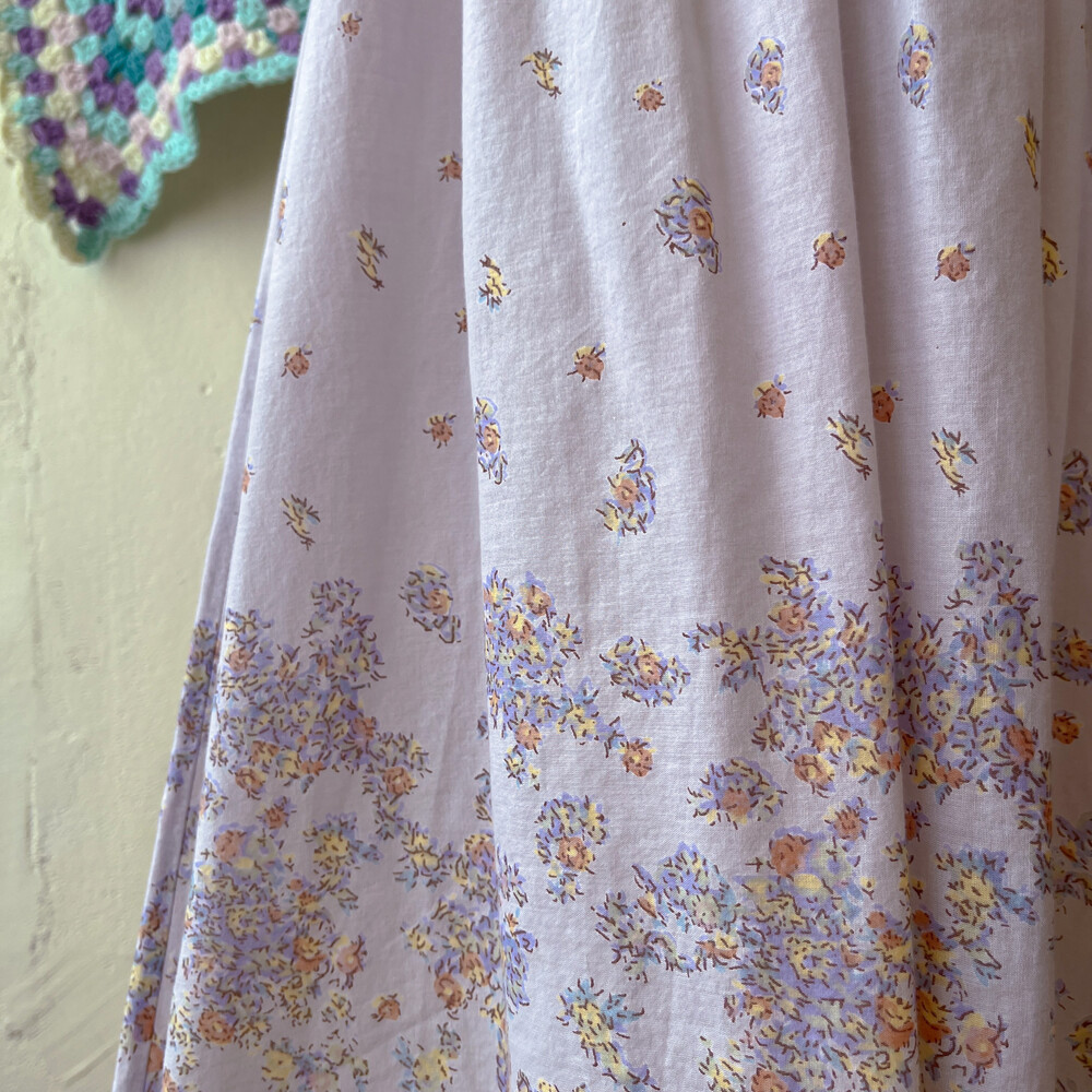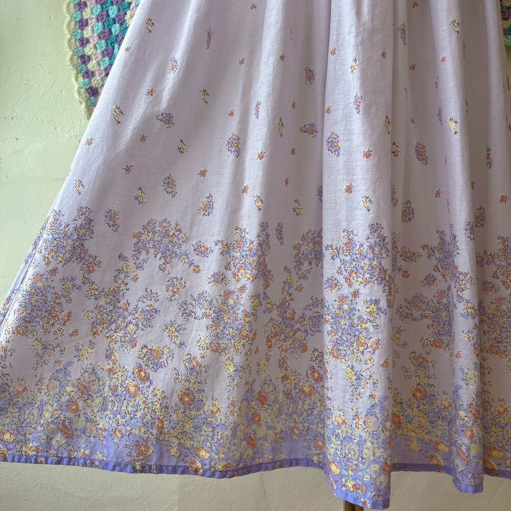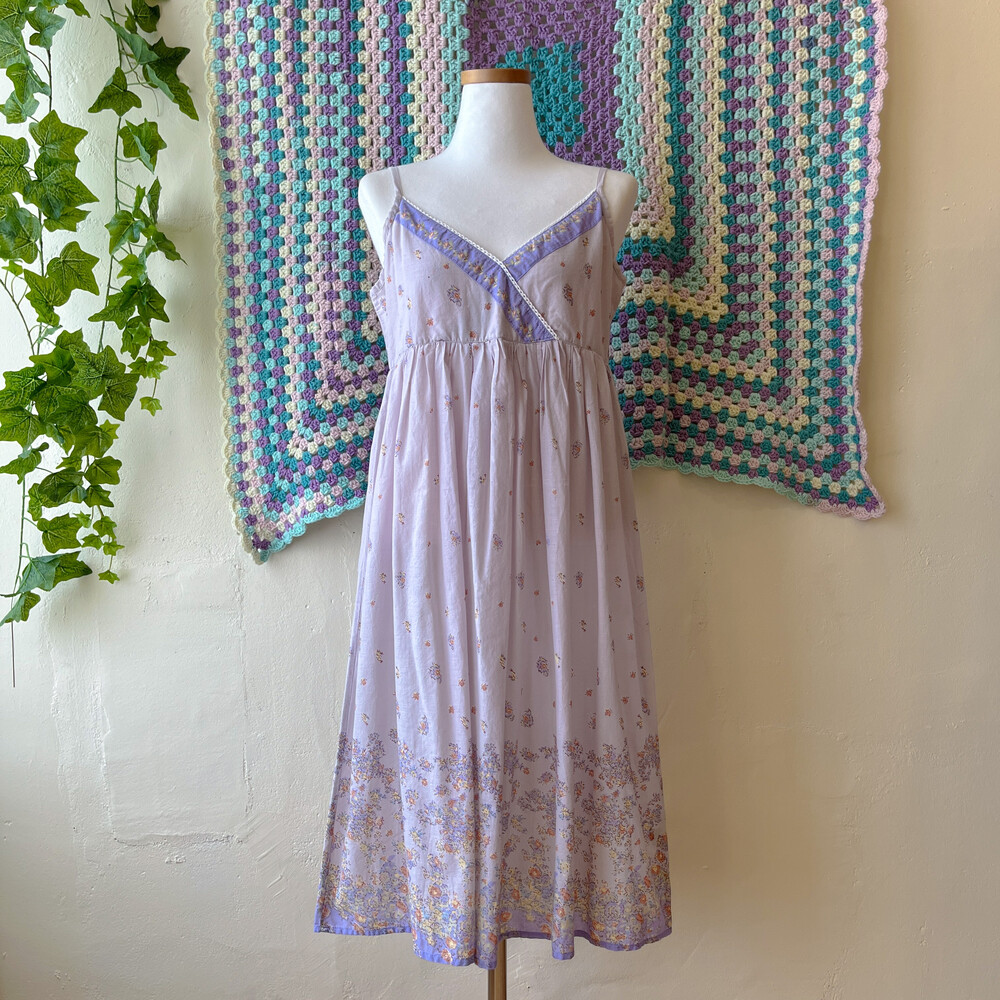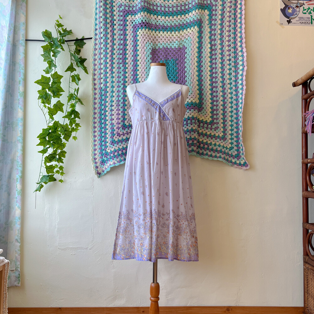연보라색감의 꽃무늬 브이넥 코튼 끈원피스예요