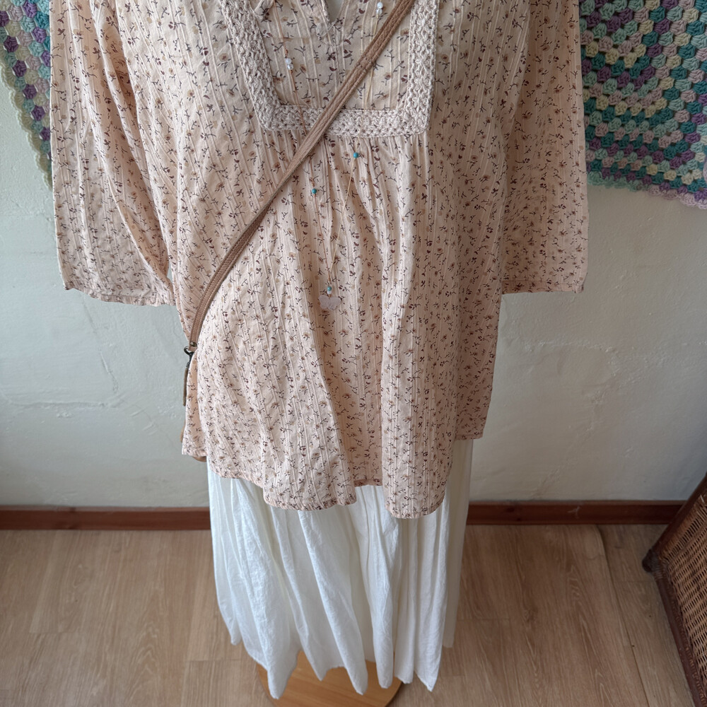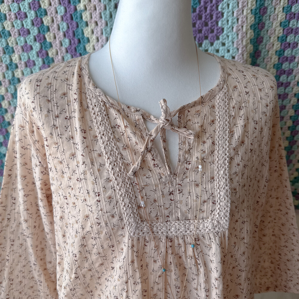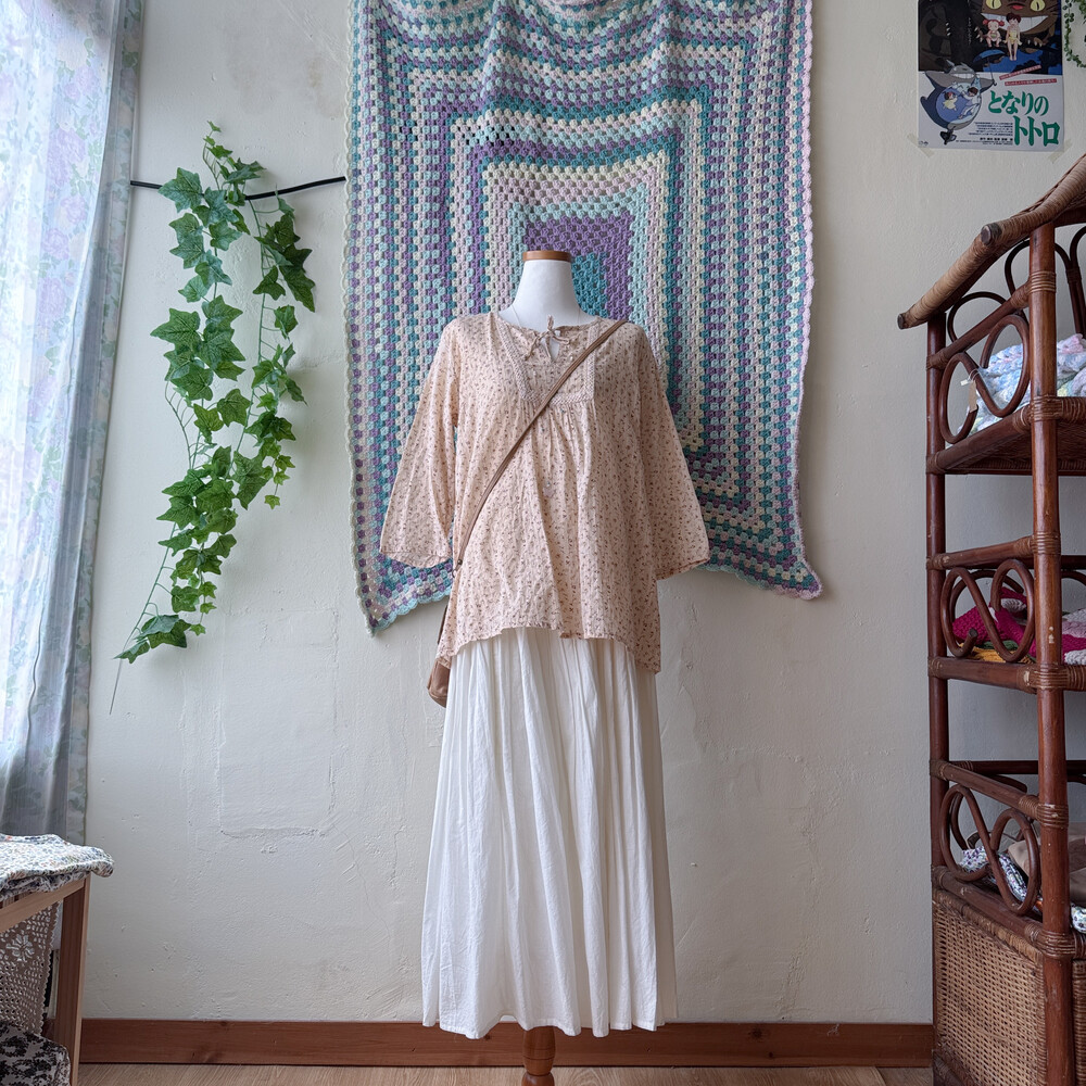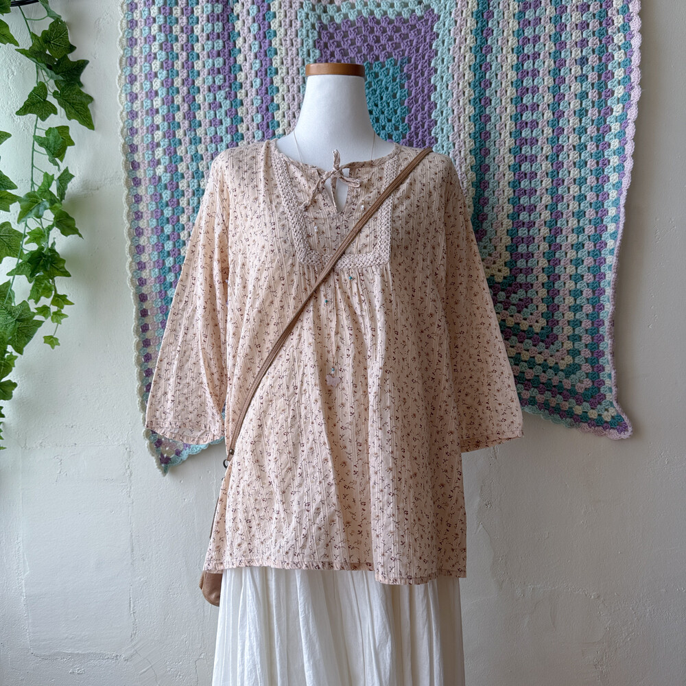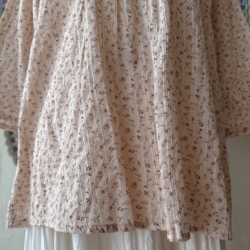 연베이지 색감의 꽃무늬 코튼 블라우스예요