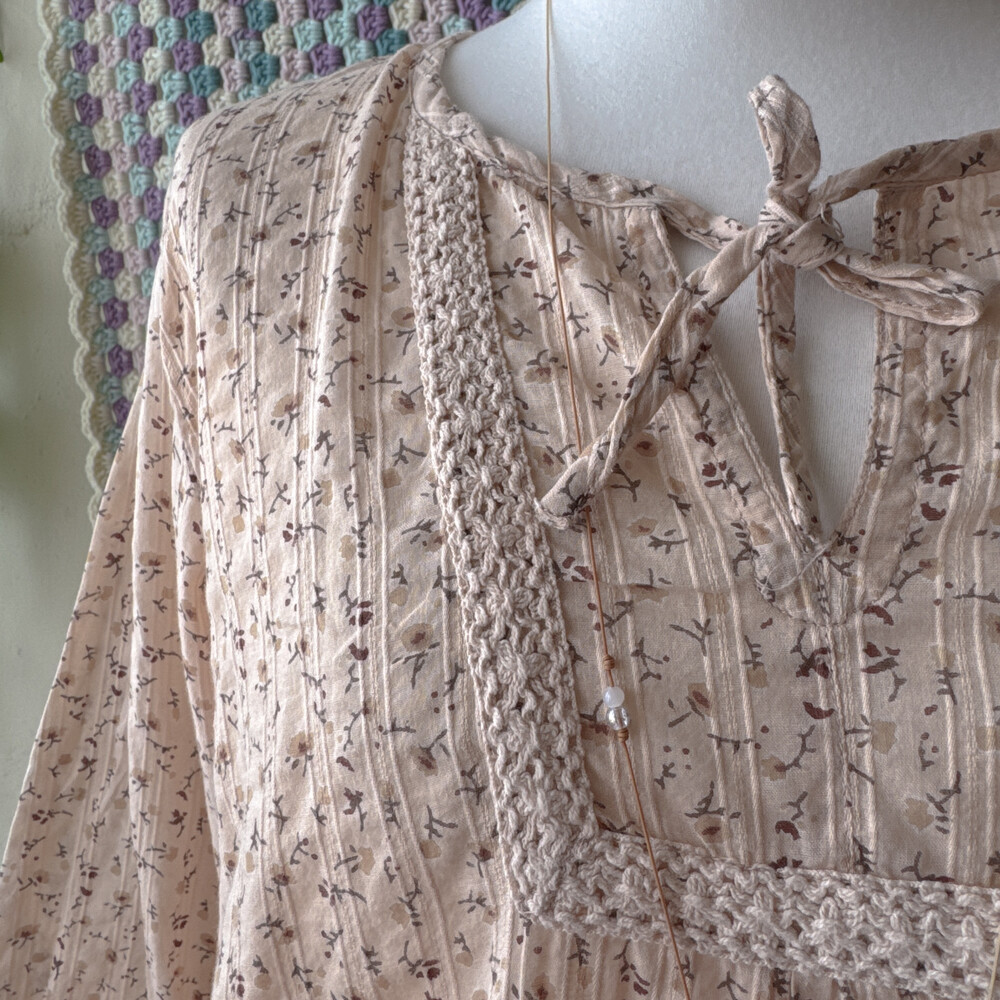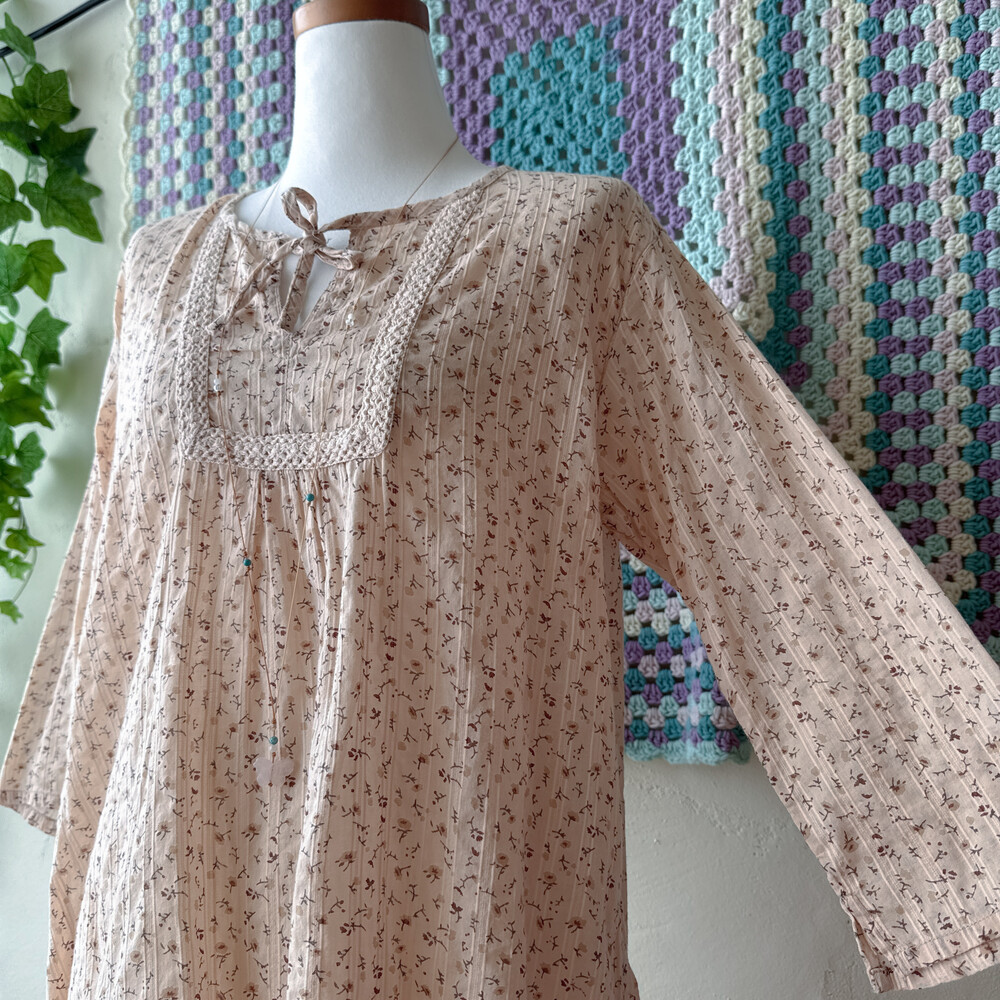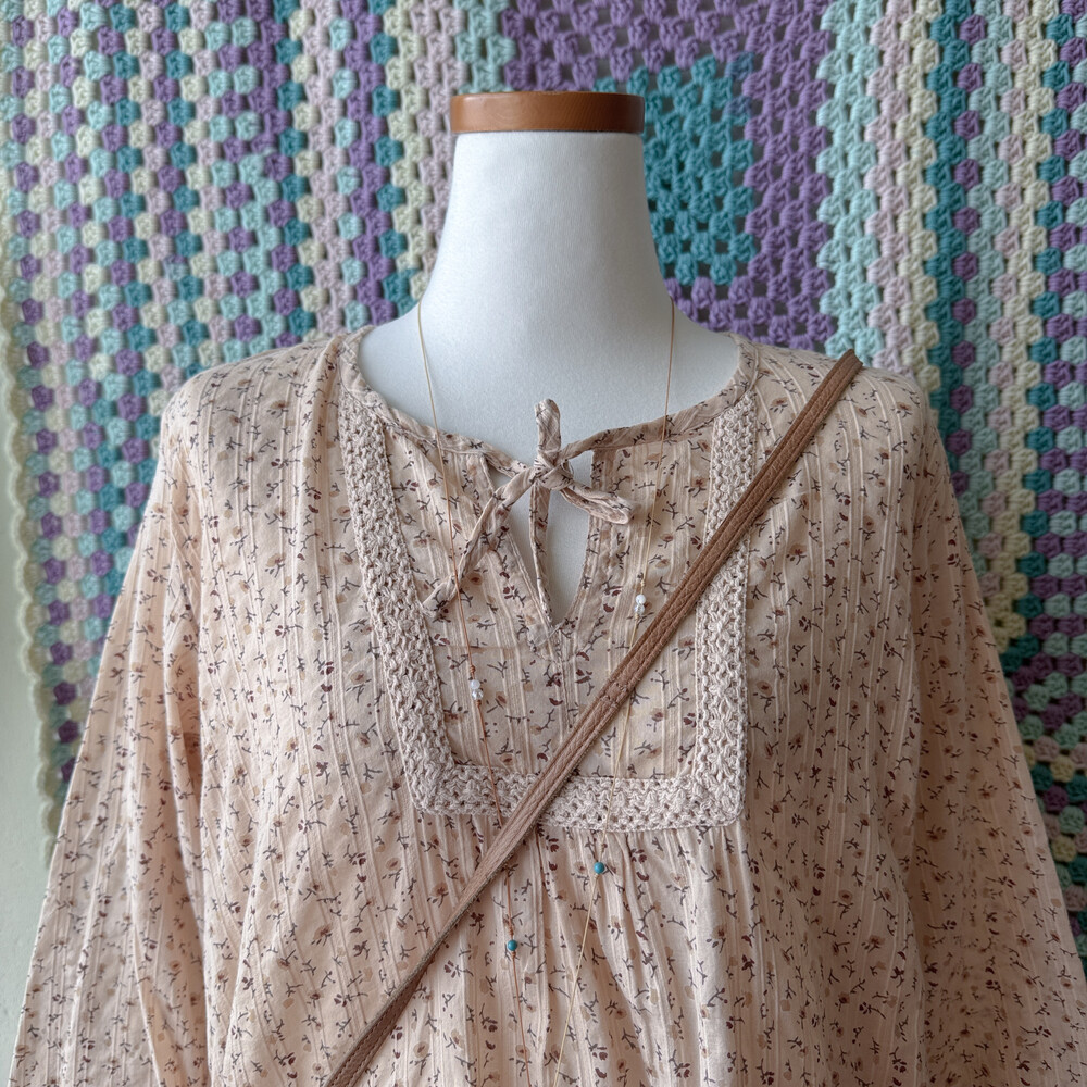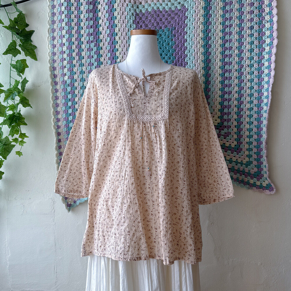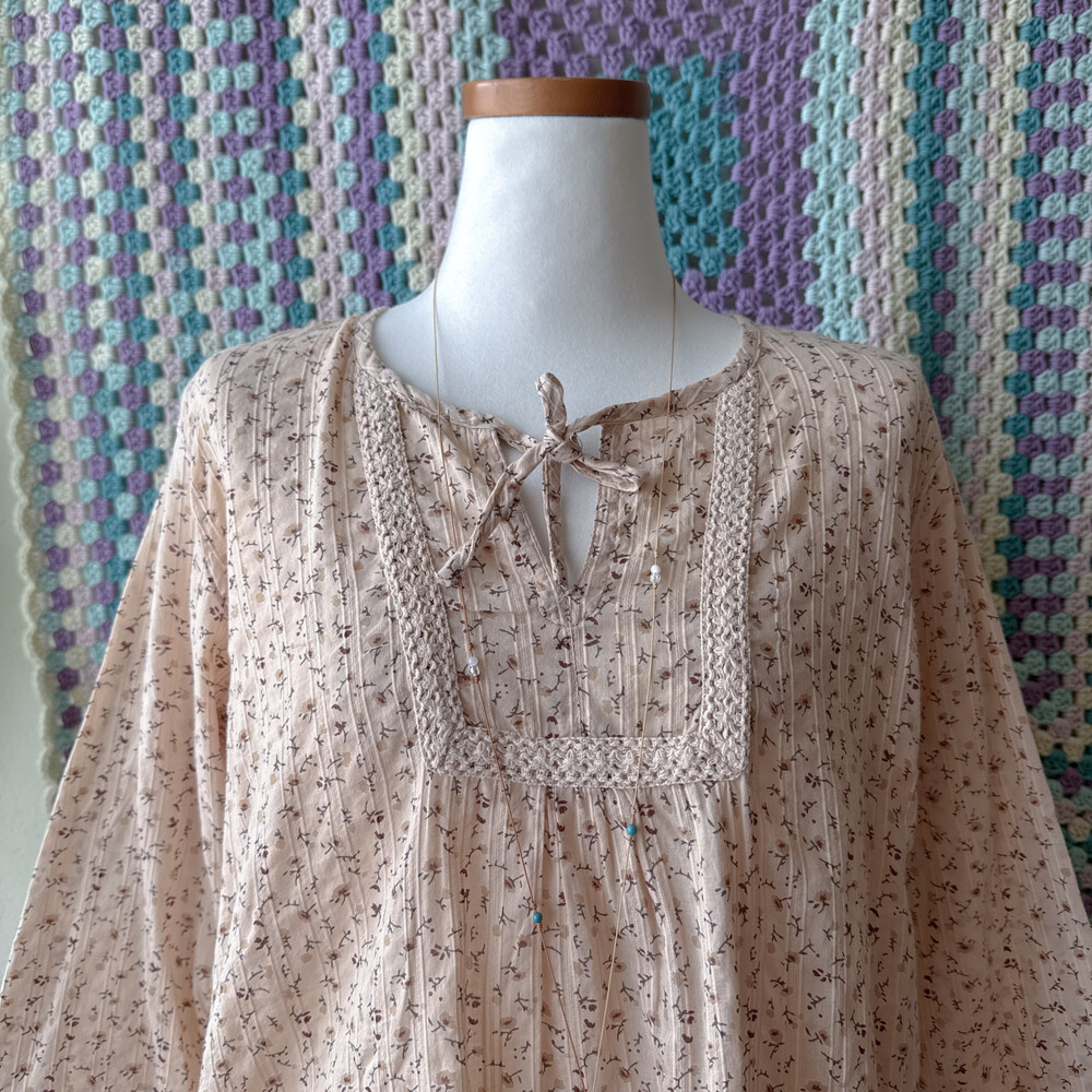 연베이지 색감의 꽃무늬 코튼 블라우스예요