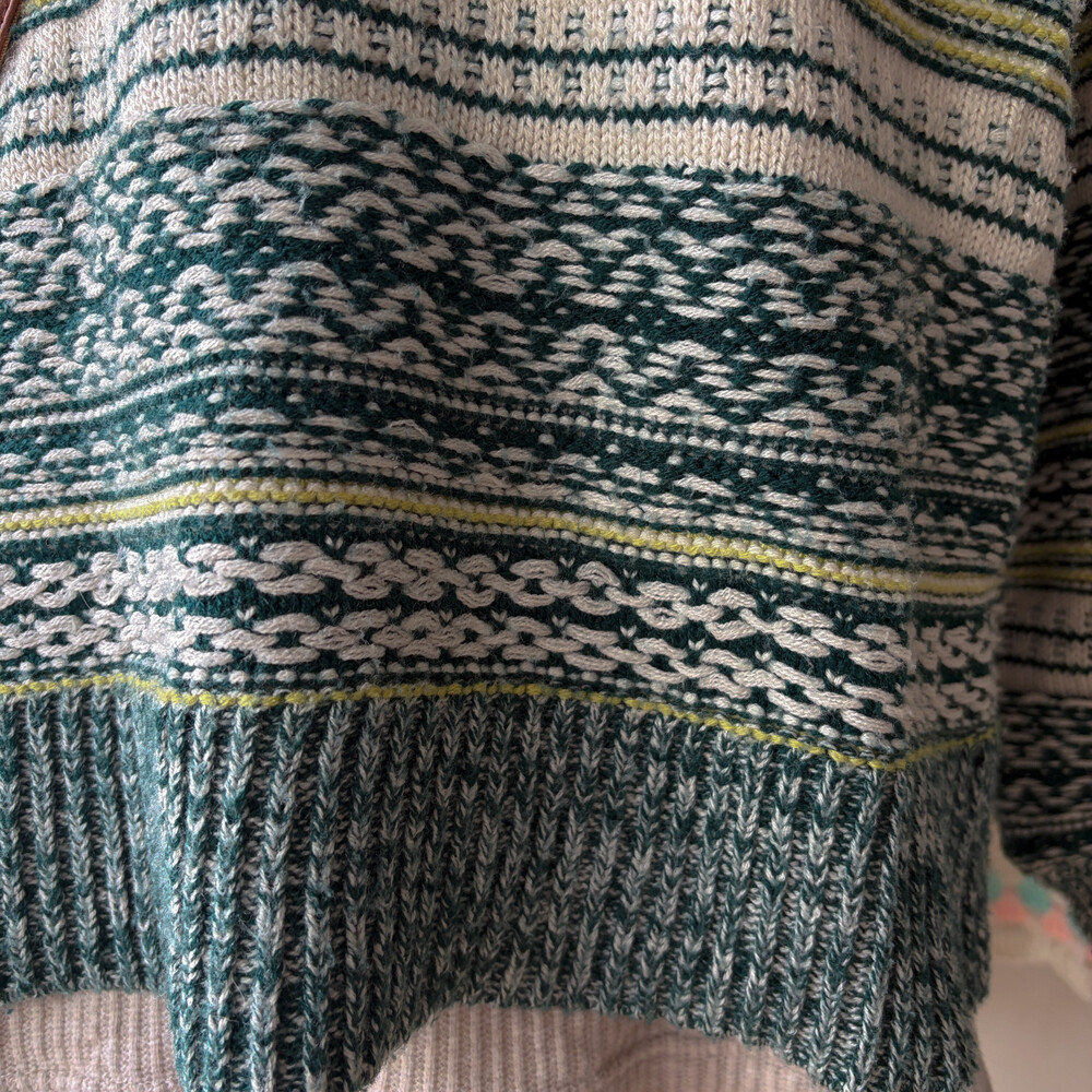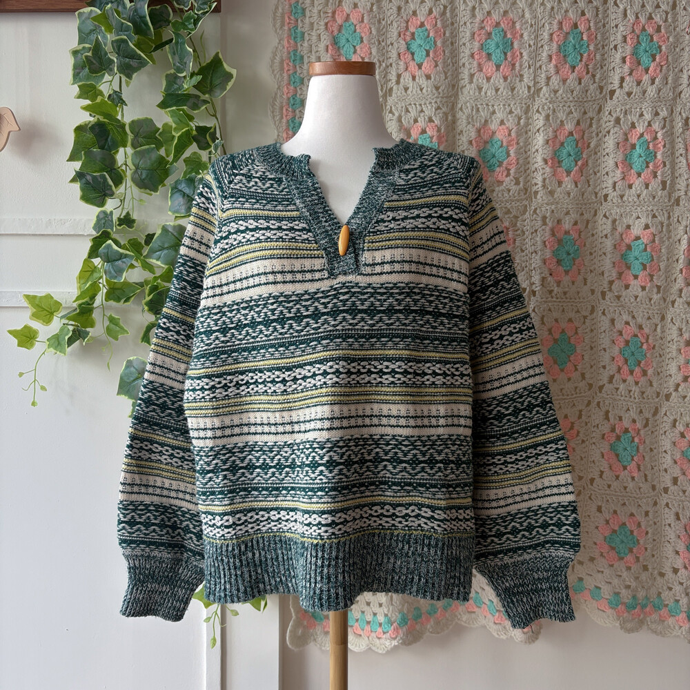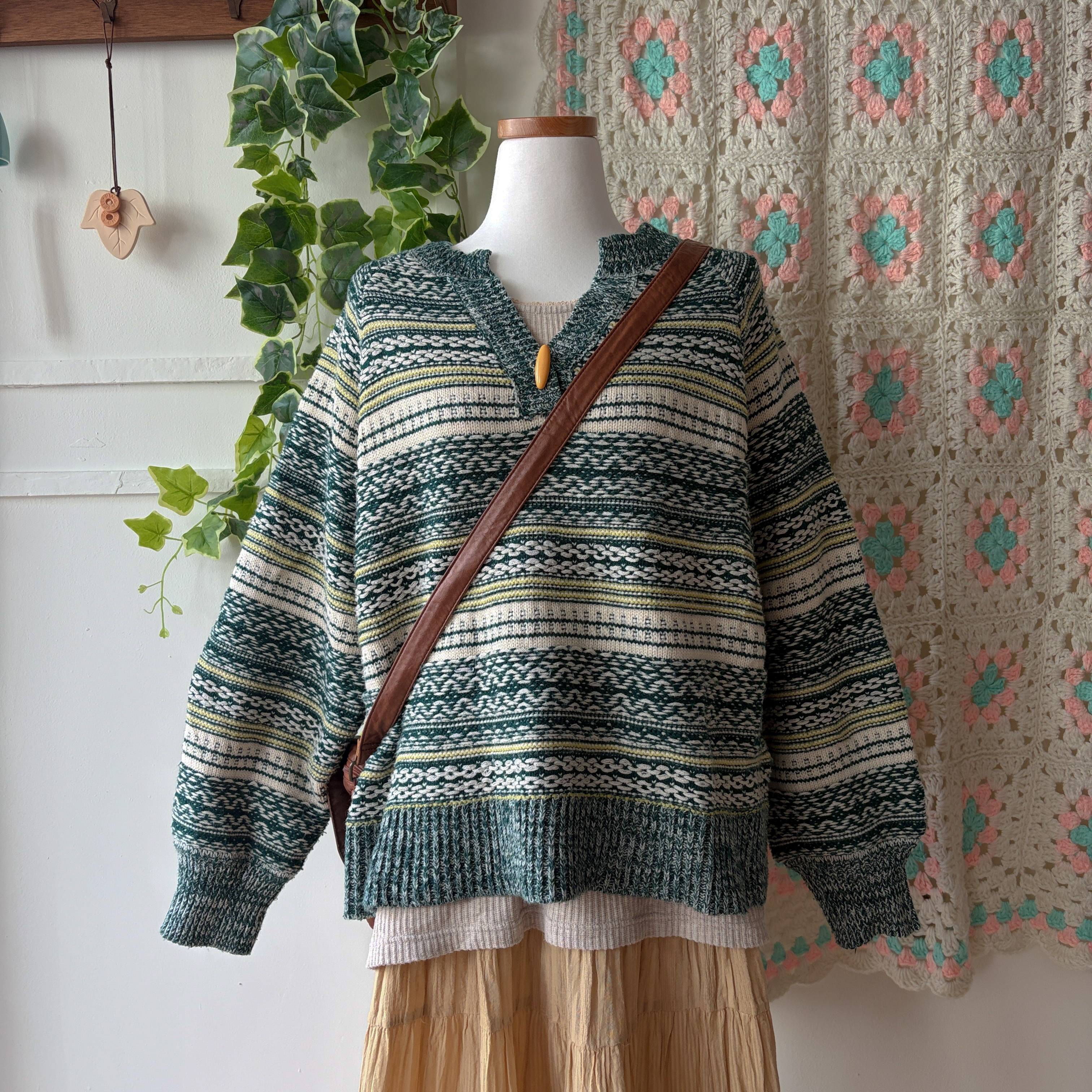 그린, 아이보리 색감 조합의 패턴 니트예요
