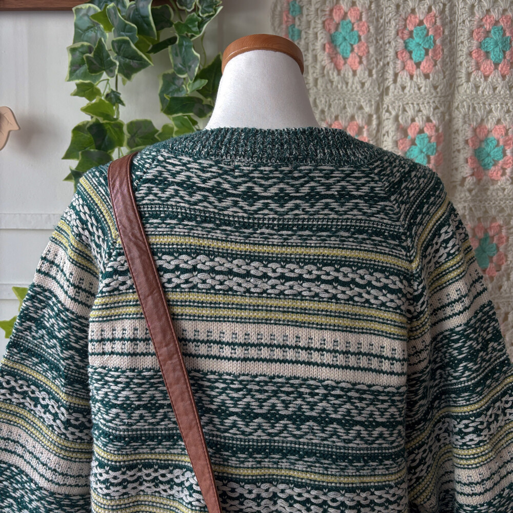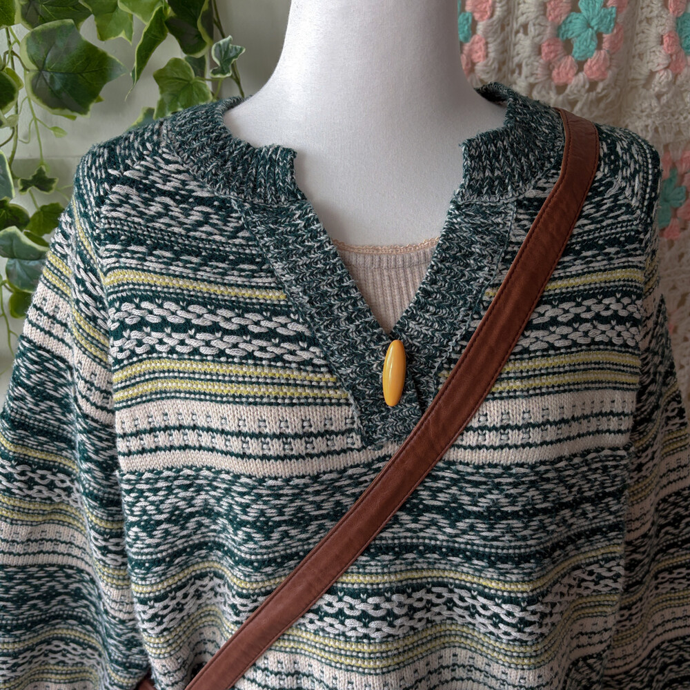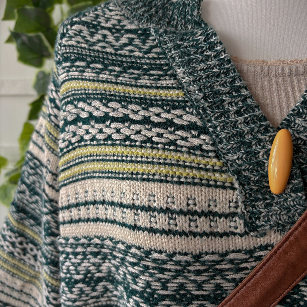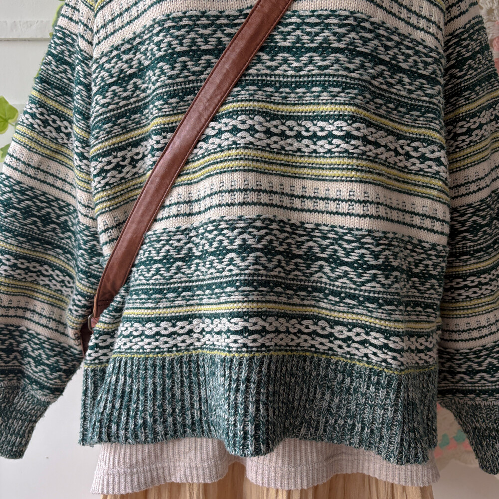그린, 아이보리 색감 조합의 패턴 니트예요