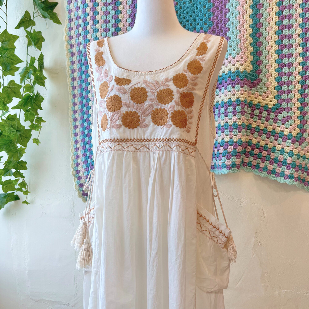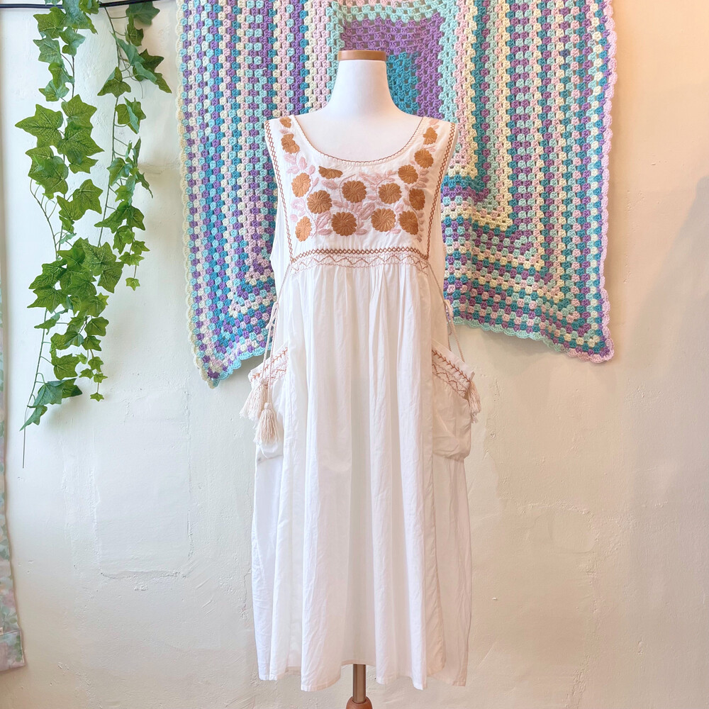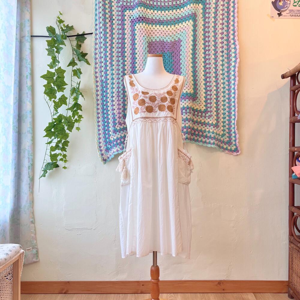 꽃자수 포인트의 포켓 코튼 민소매 원피스예요