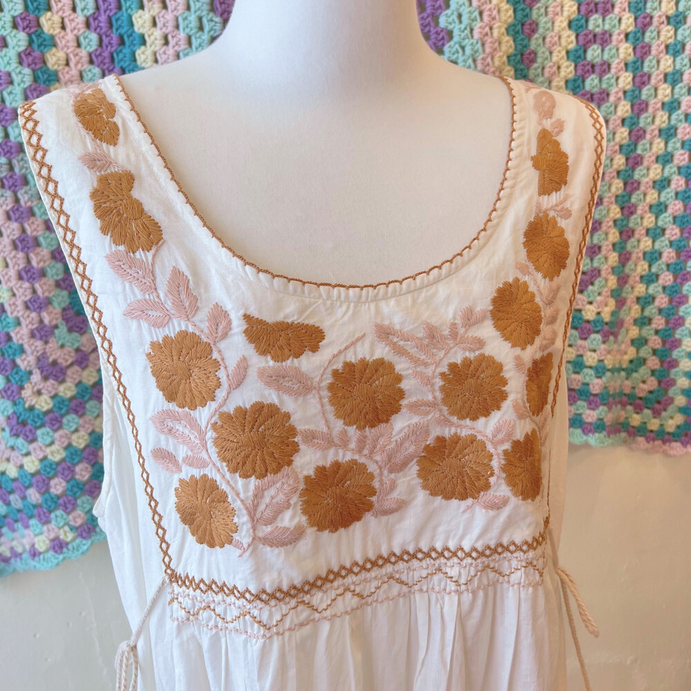 camel brown flower embroidery ops