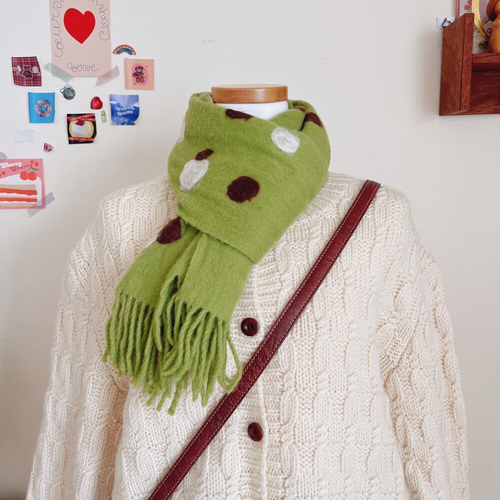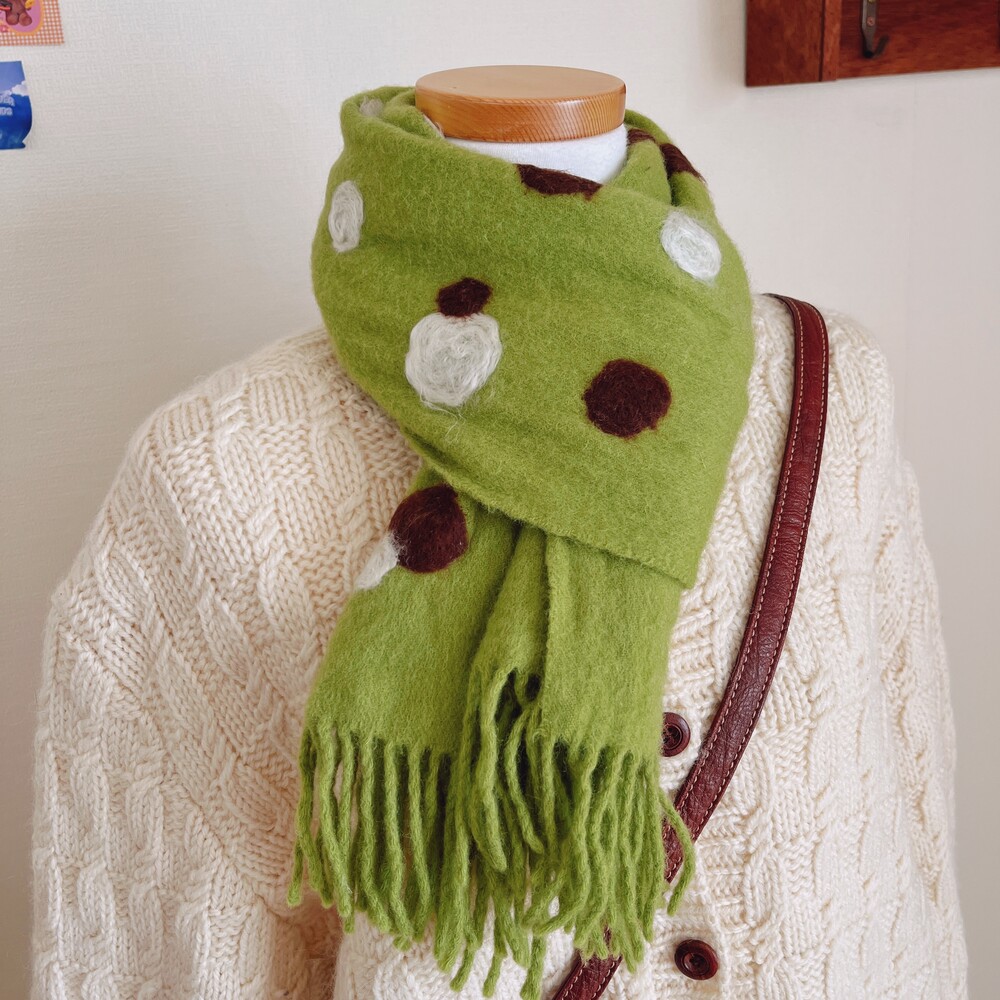 olive green circle pattern muffler