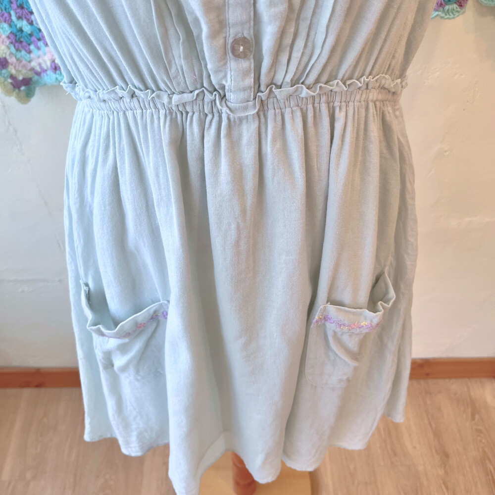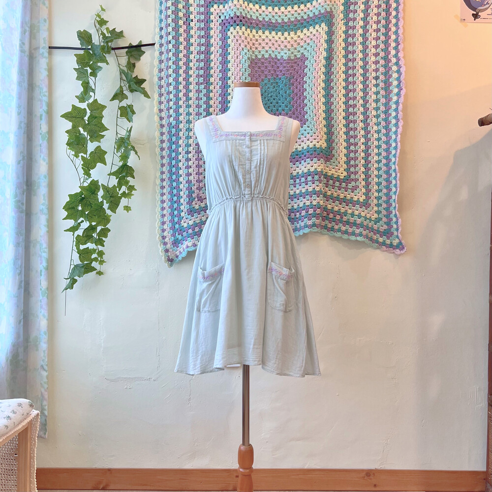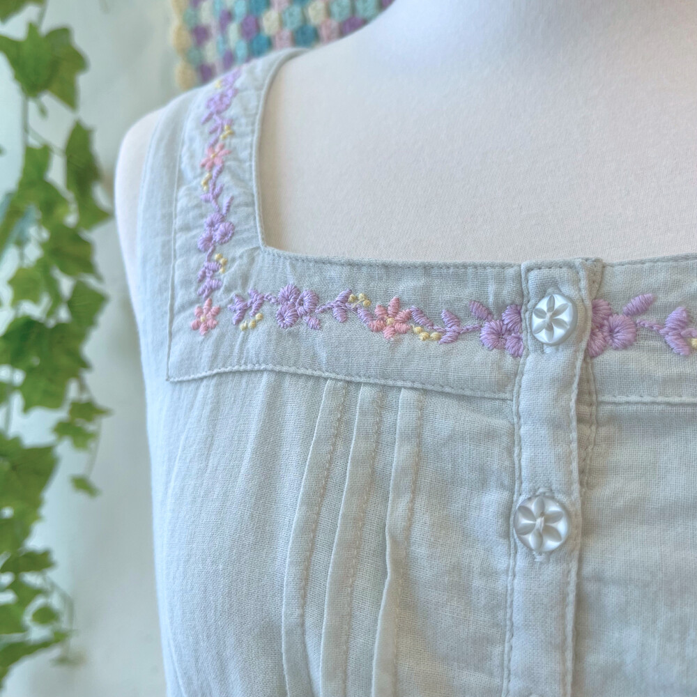 파스텔 자수 포인트의 코튼 민소매 원피스예요