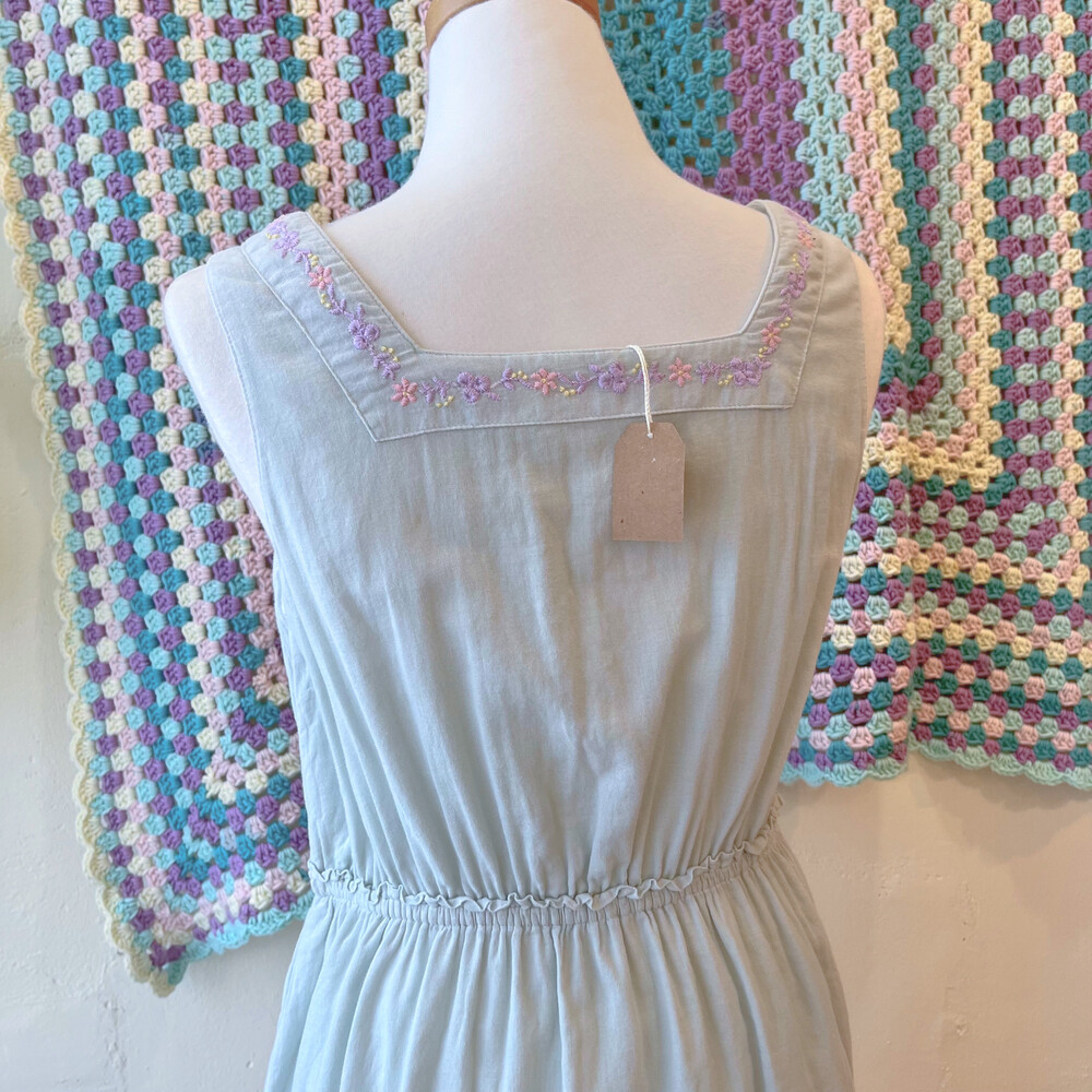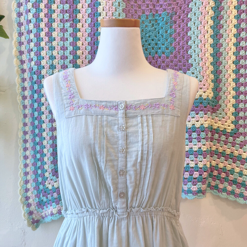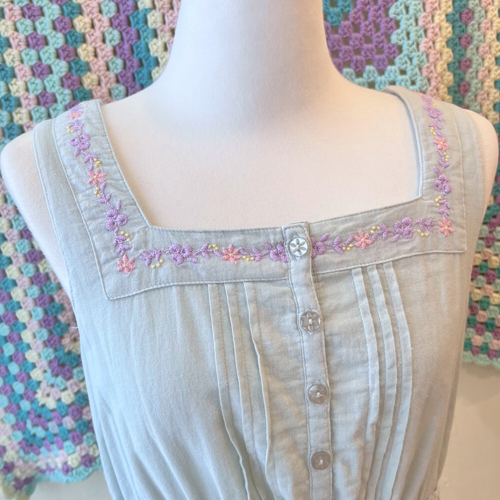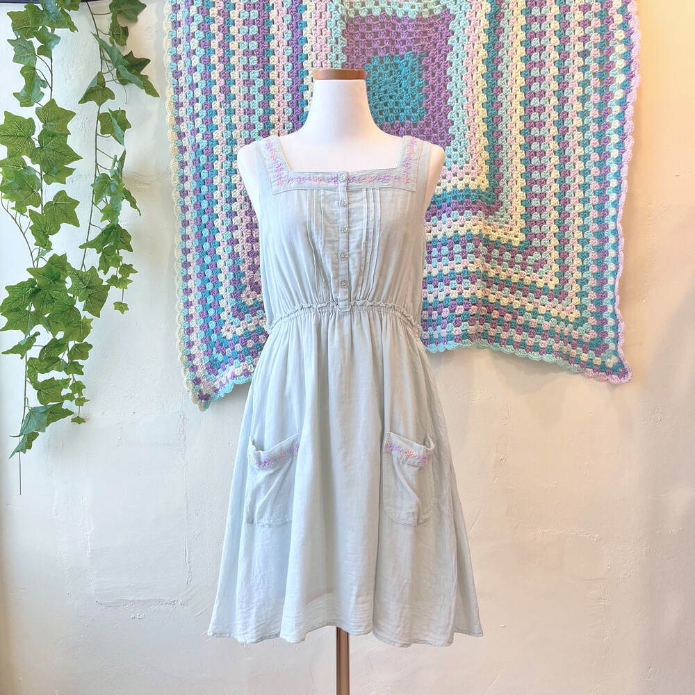 파스텔 자수 포인트의 코튼 민소매 원피스예요