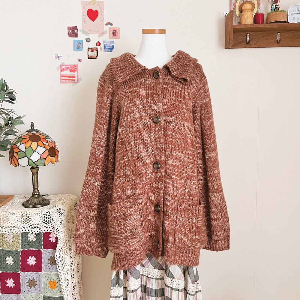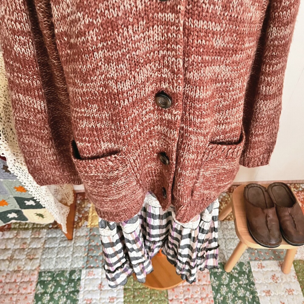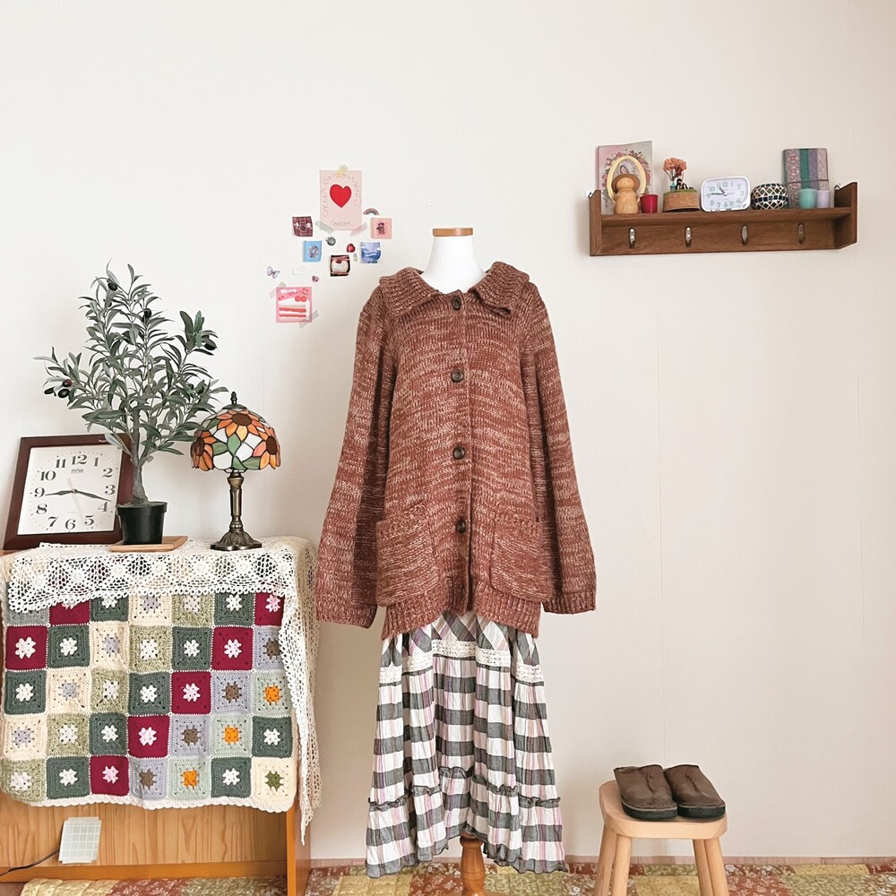 드라이 로즈 색감의 카라 롱 가디건이에요