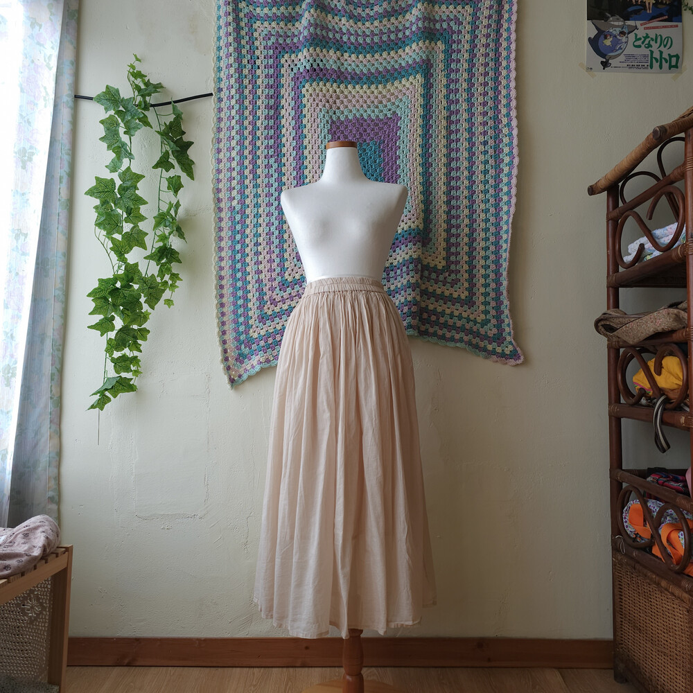 베이지 색감의 코튼 롱스커트예요