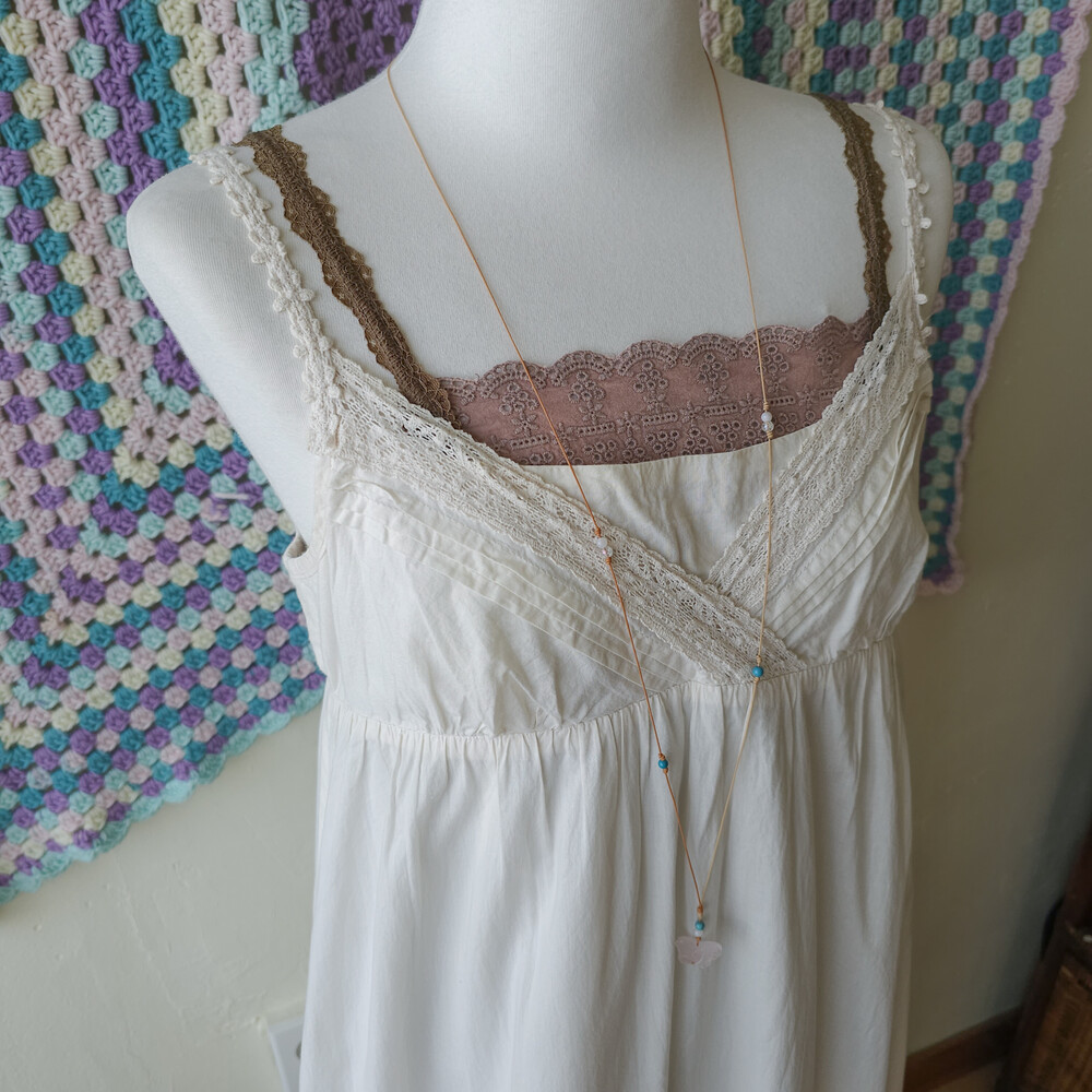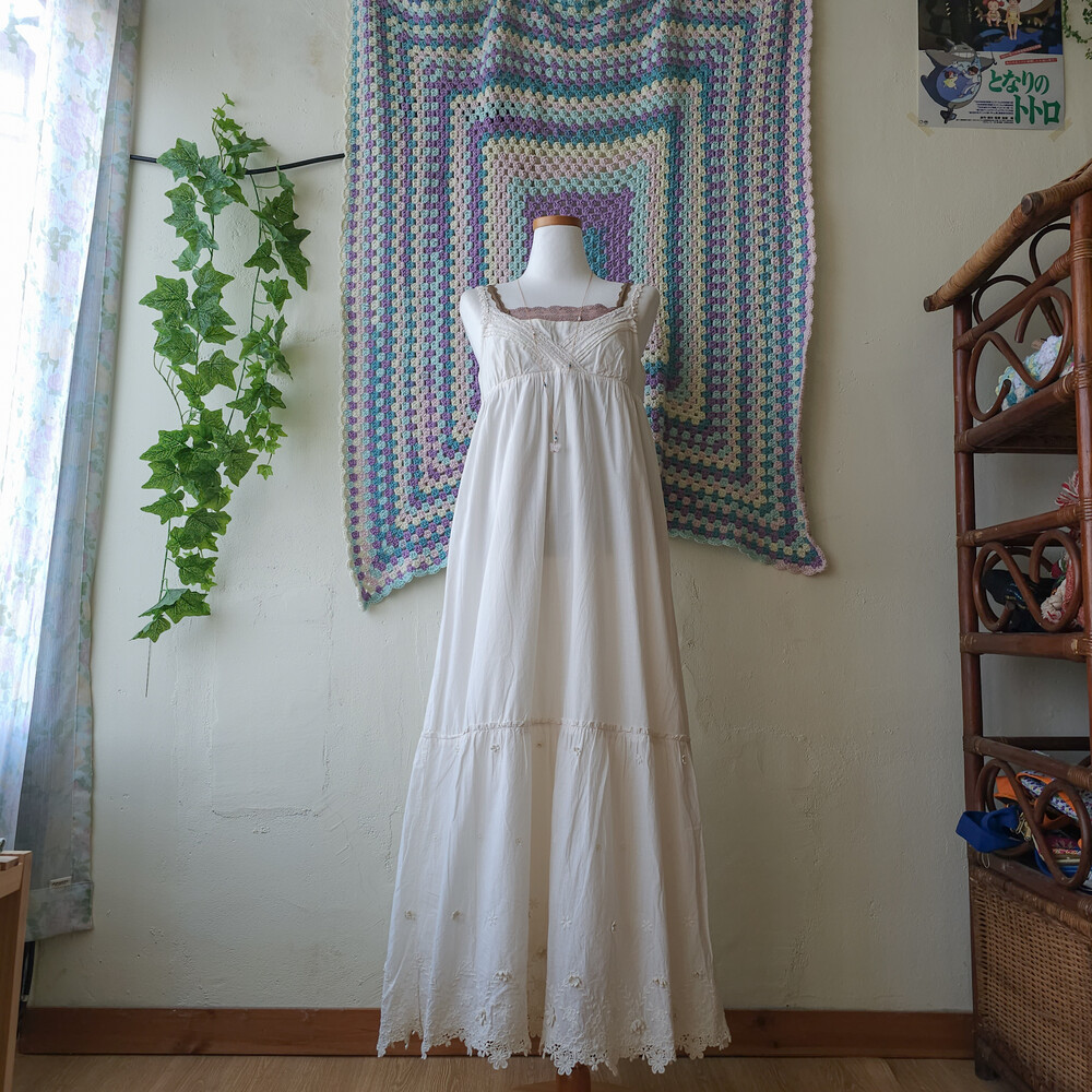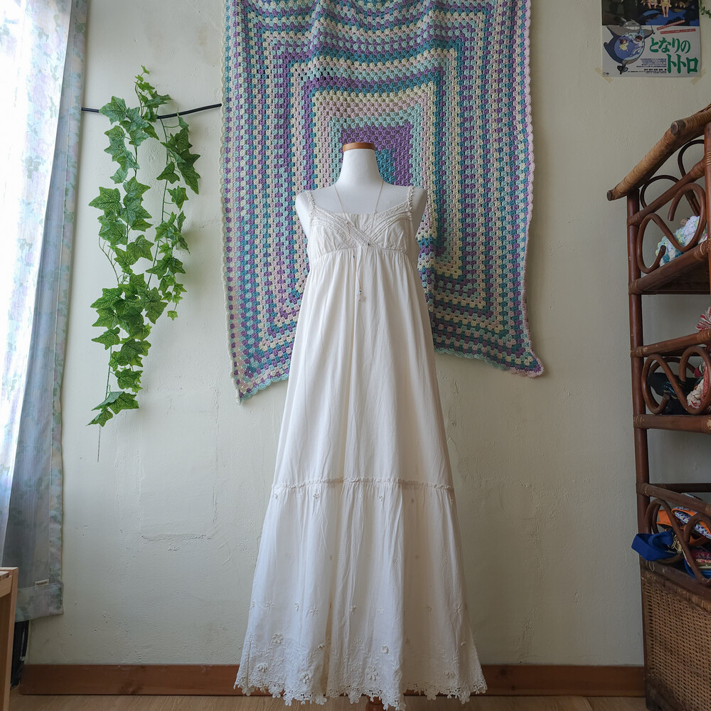 레이스 스트랩 디자인에, 밑단 자수 꽃모티브 포인트가 너무나 사랑스러워요