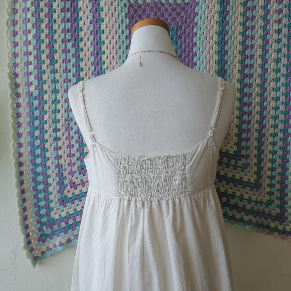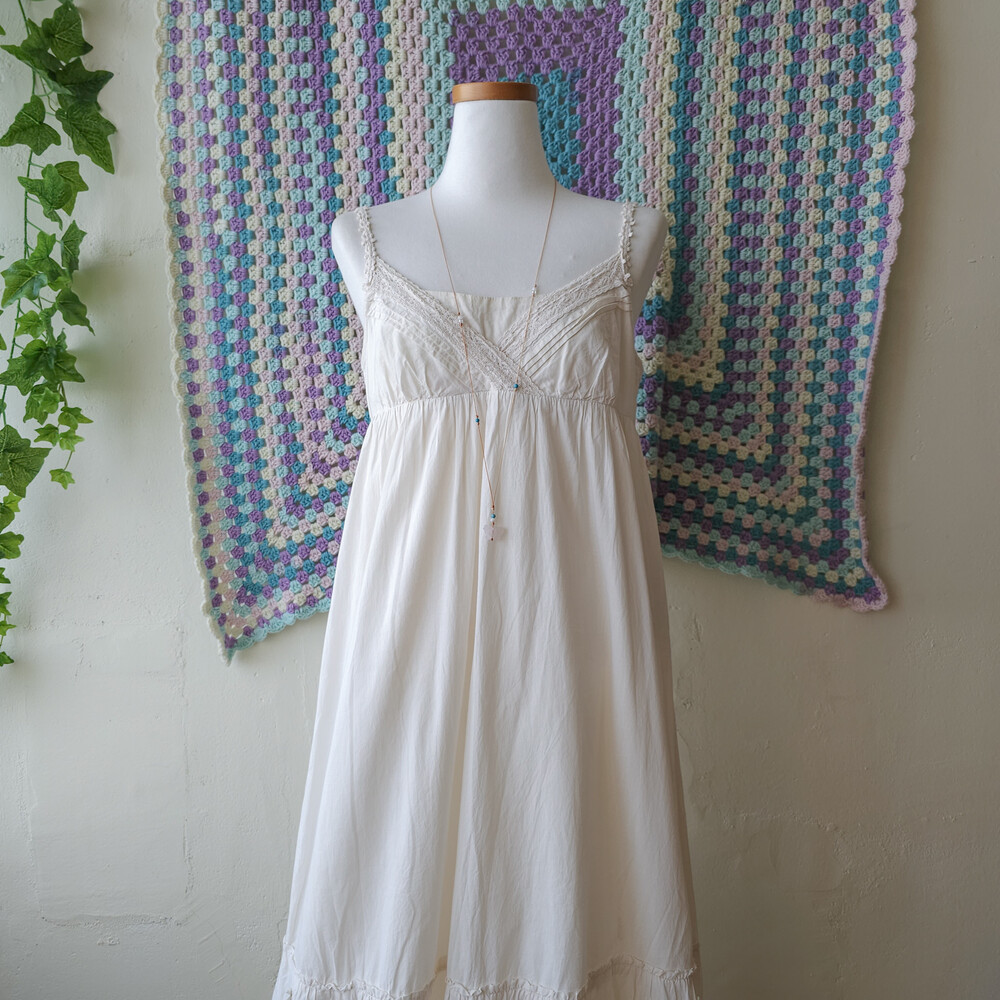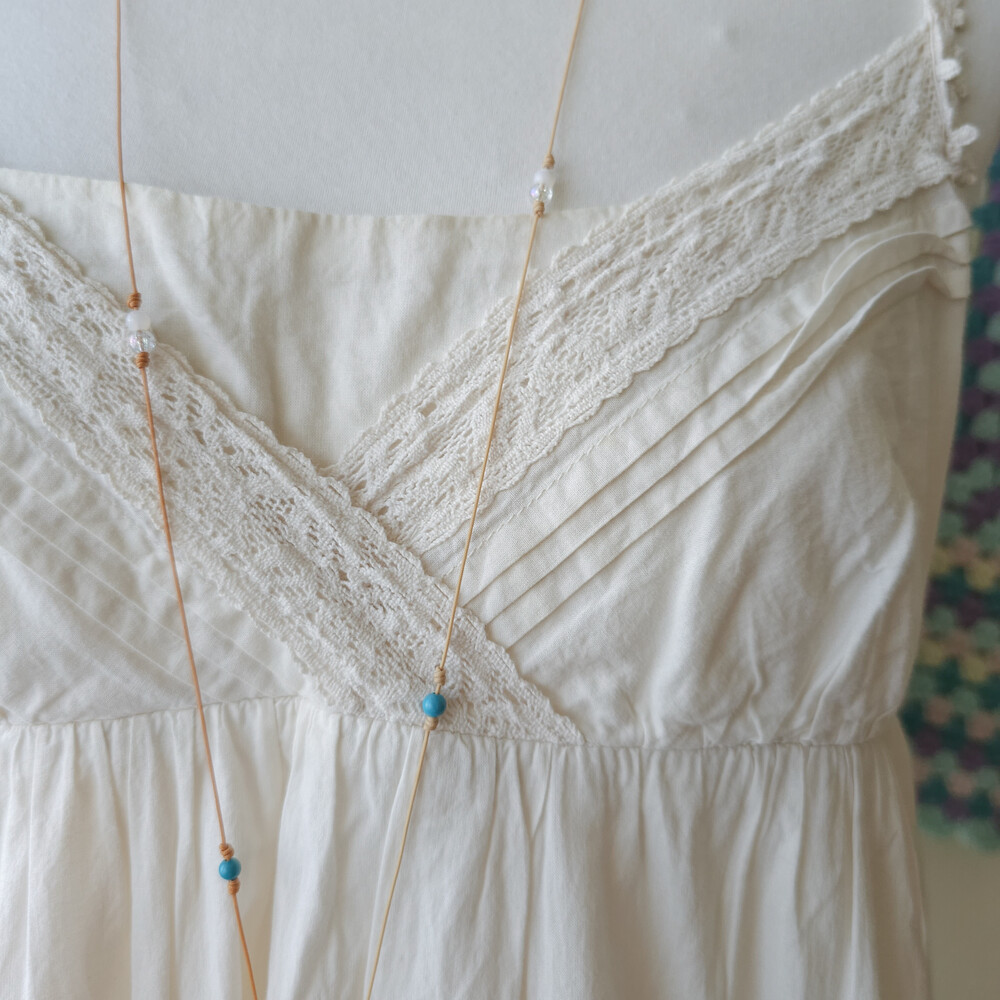 아이보리 색감의 코튼 끈원피스예요