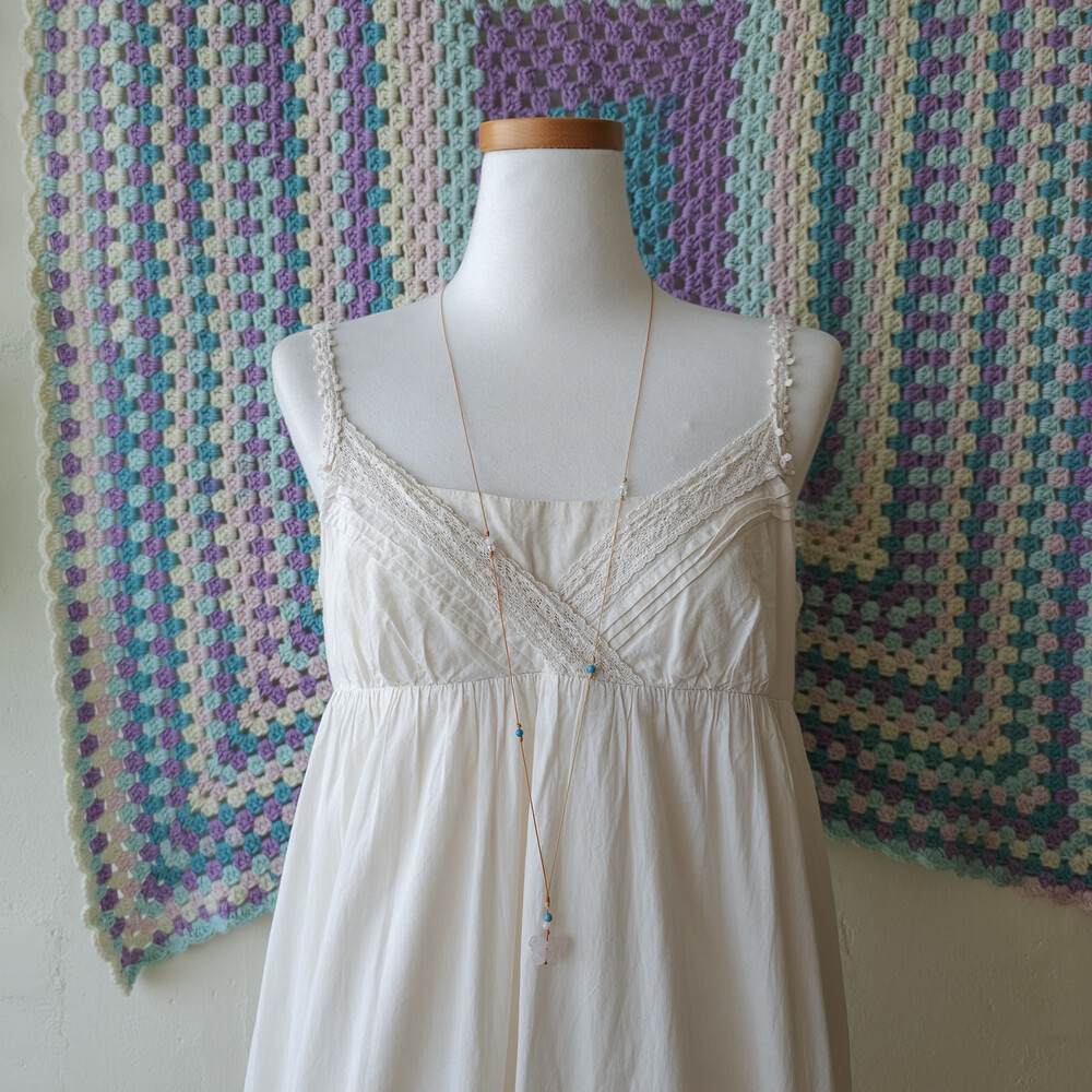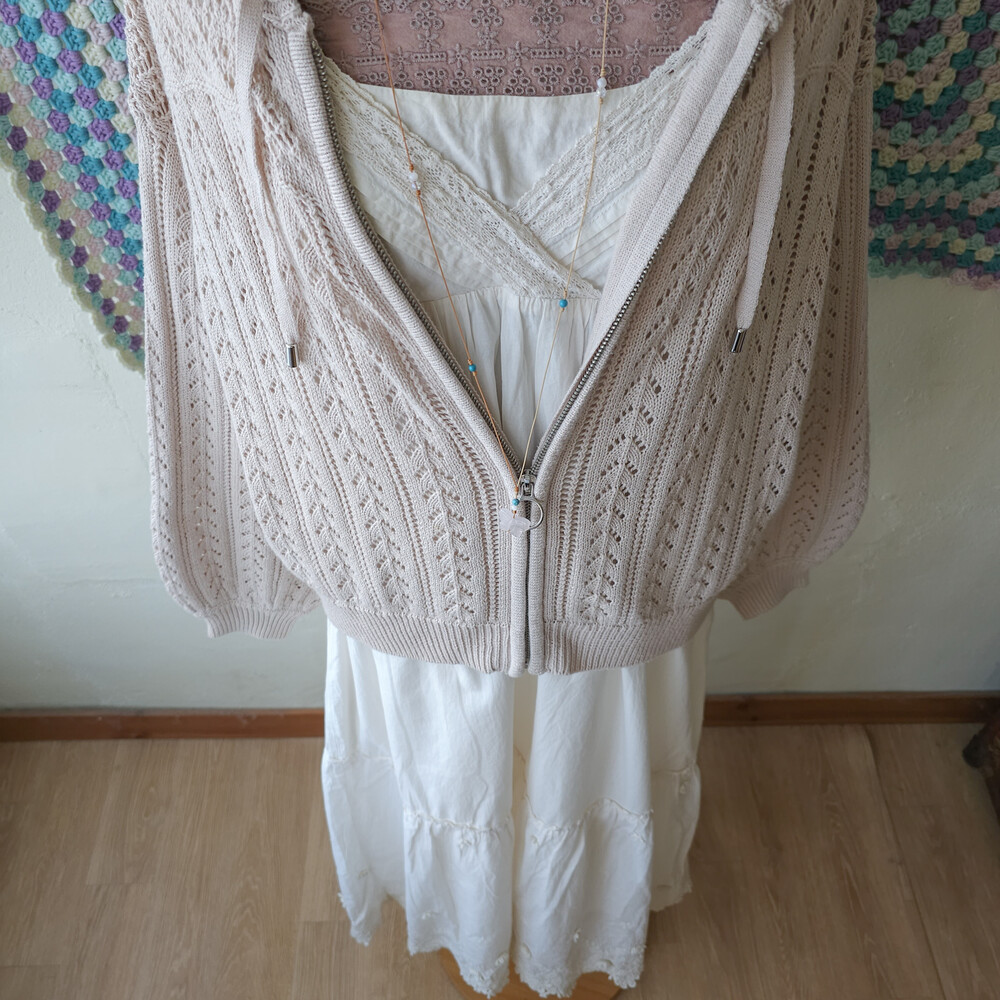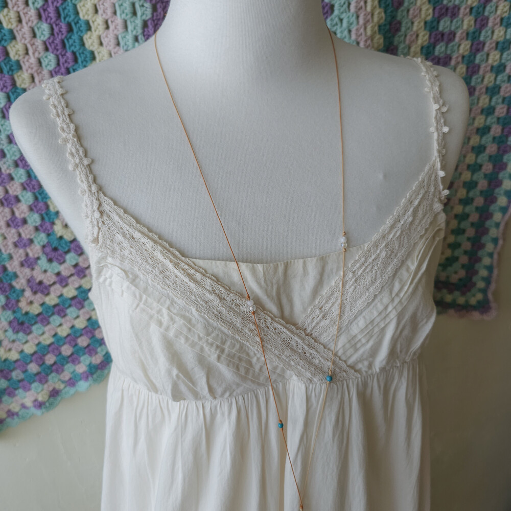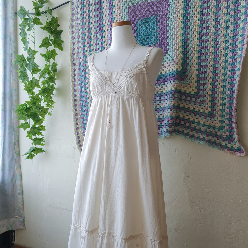 아이보리 색감의 코튼 끈원피스예요