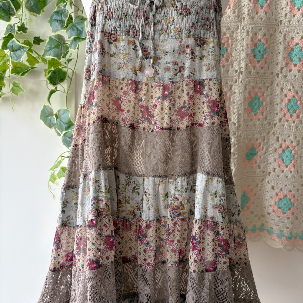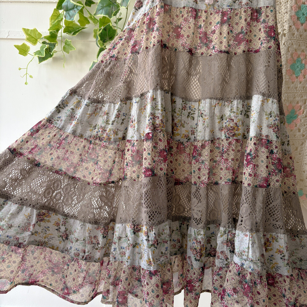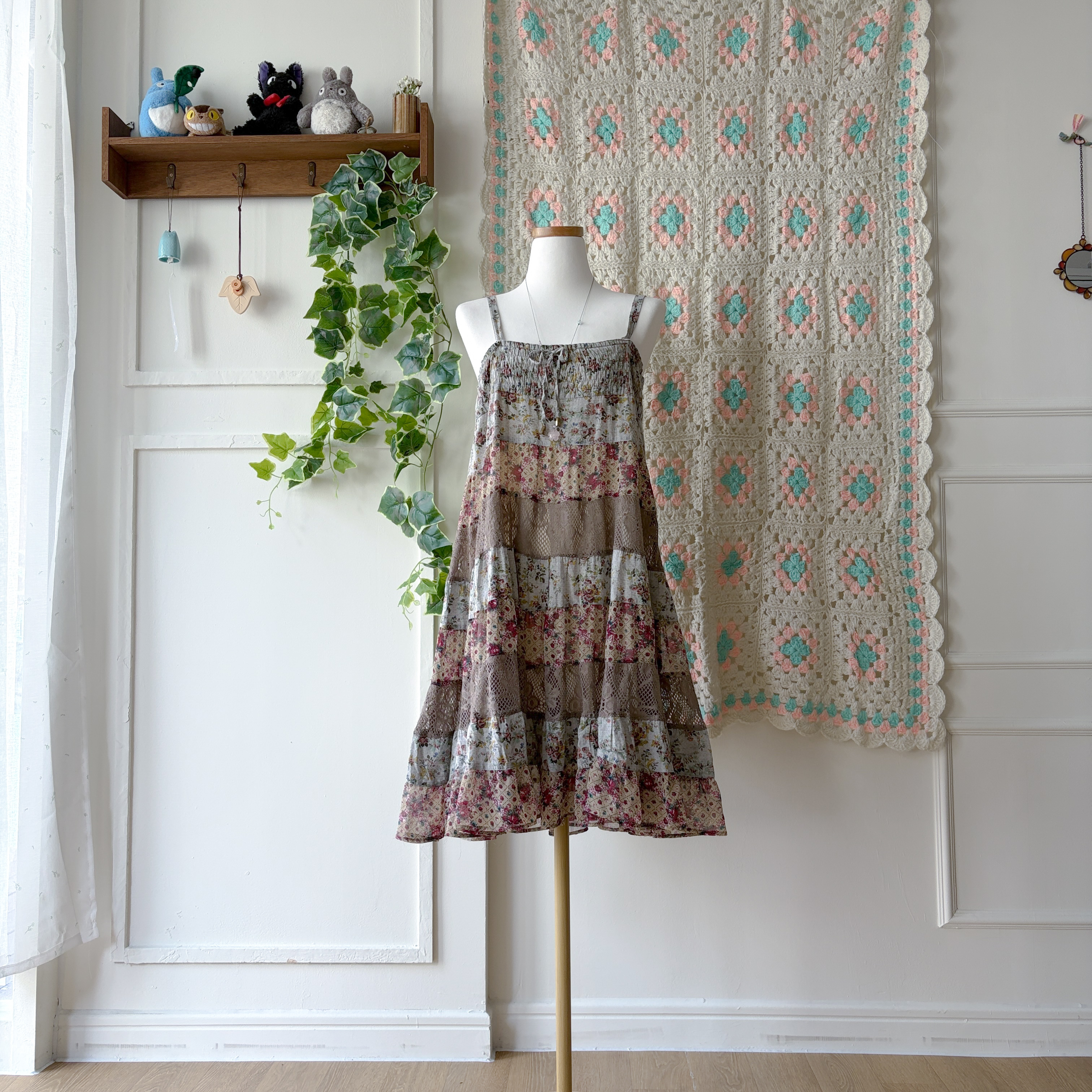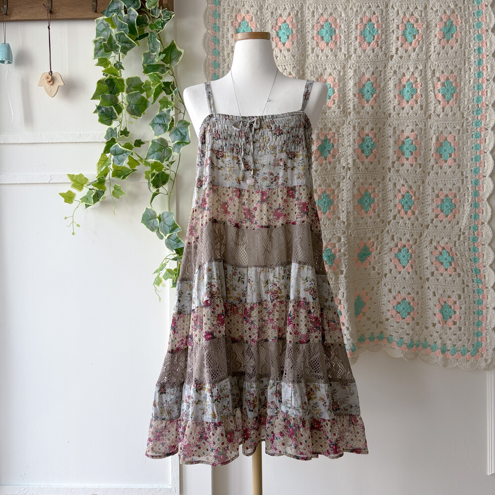 그레이 색감 베이스의 패치워크 투웨이 원피스예요