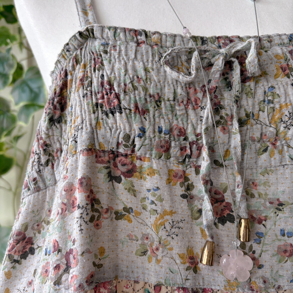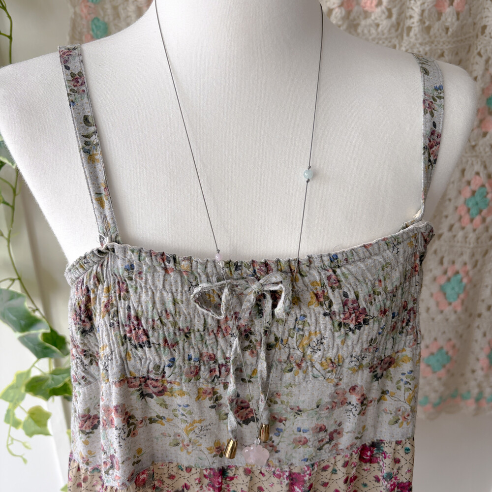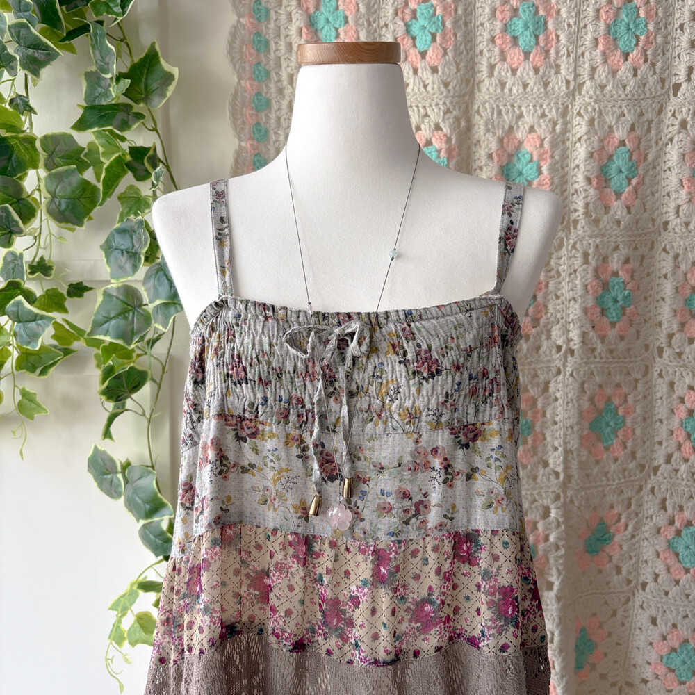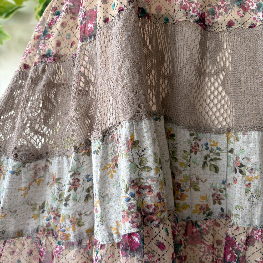 그레이 색감 베이스의 패치워크 투웨이 원피스예요