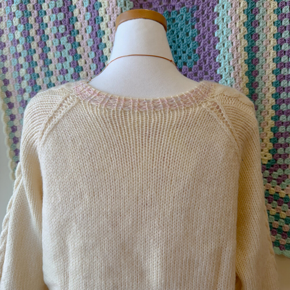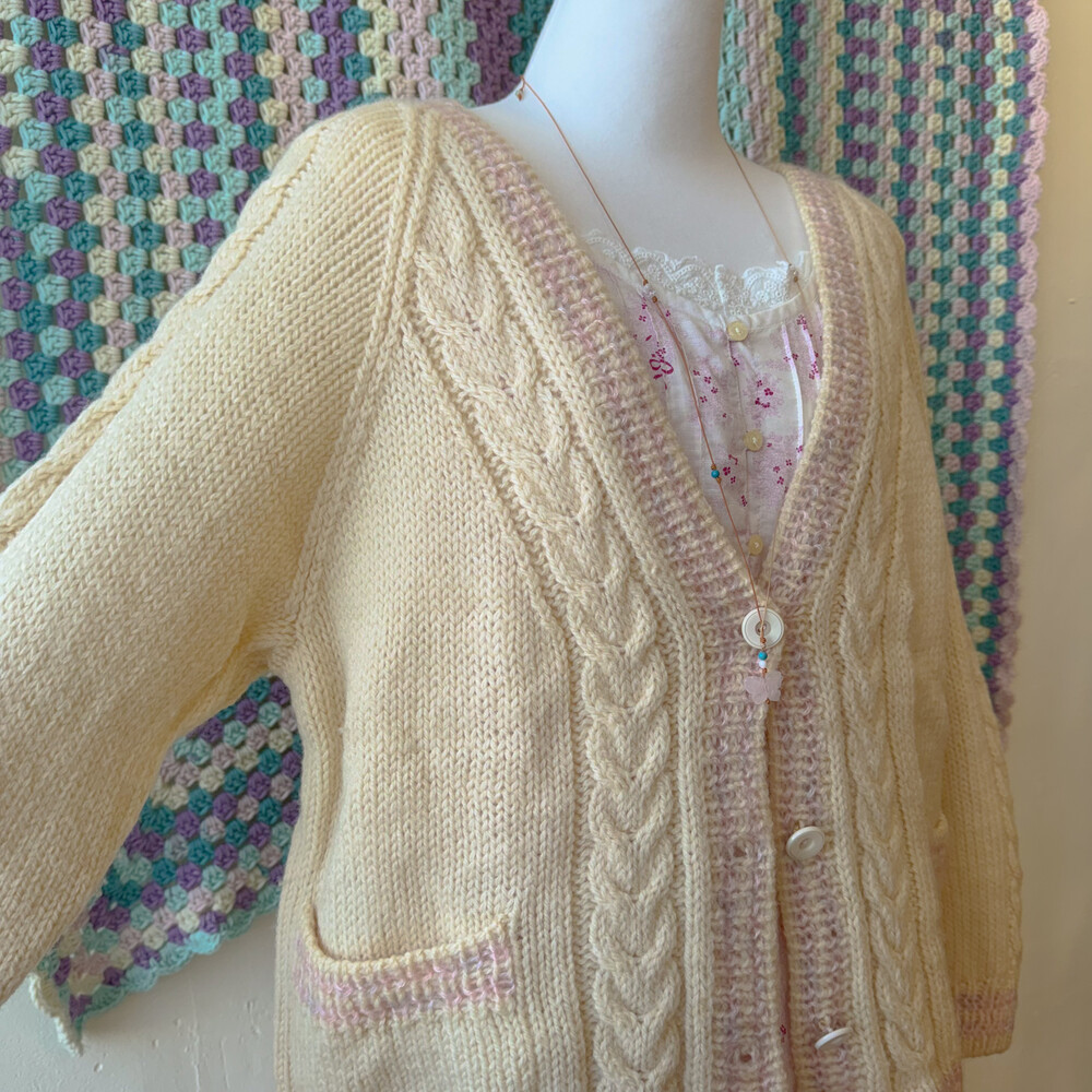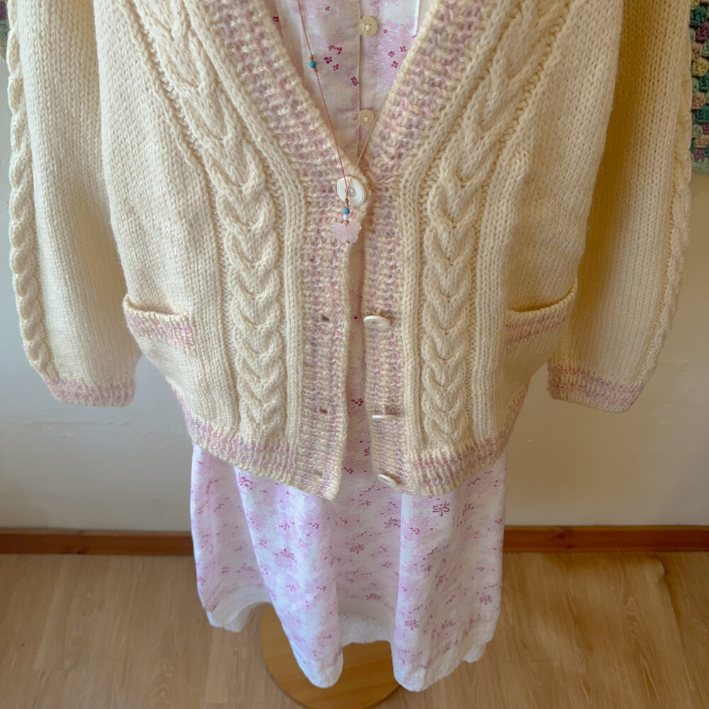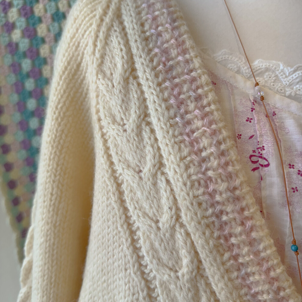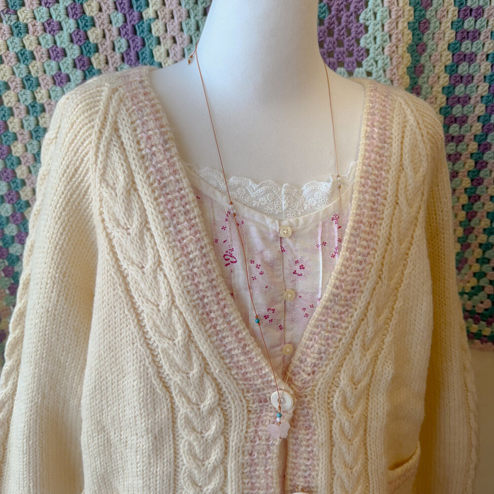 아이보리 색감 베이스의 브이넥 가디건이에요