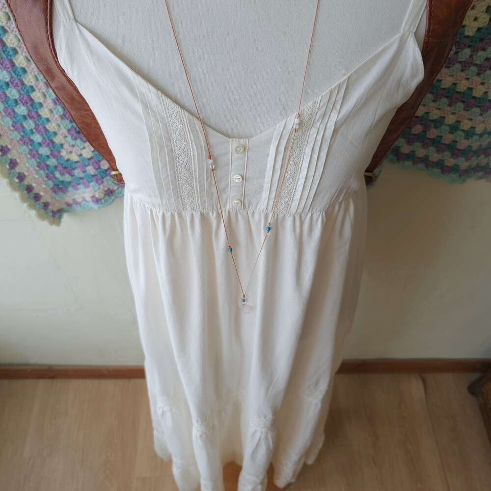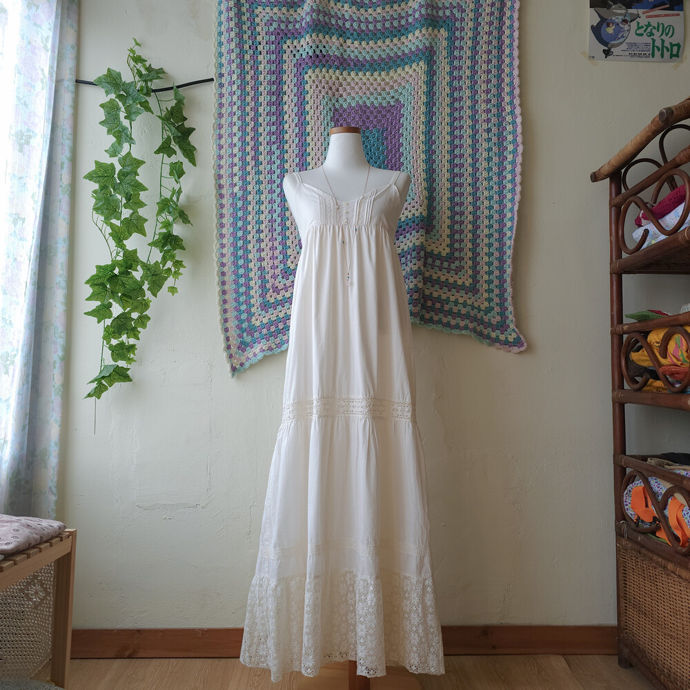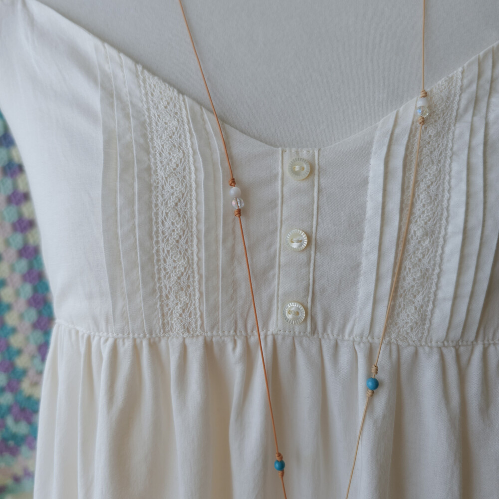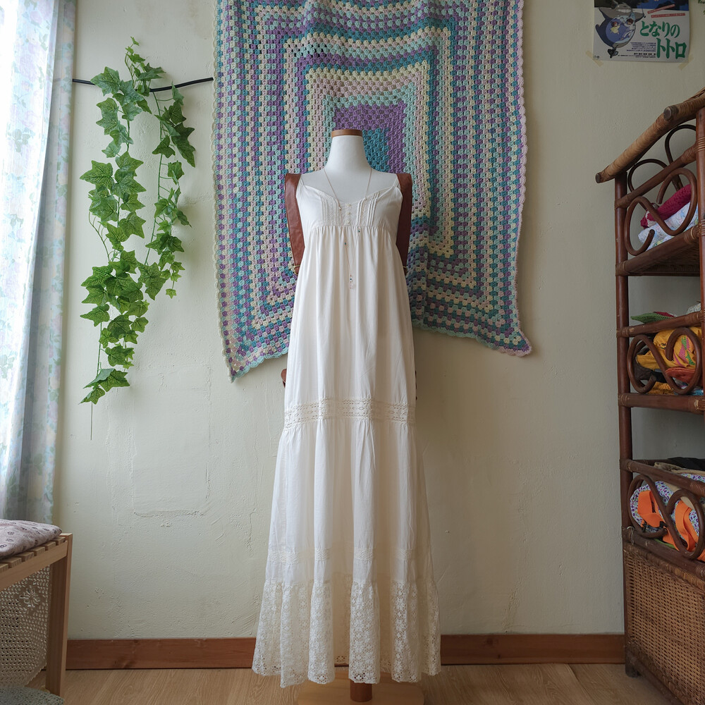 아이보리 색감의 브이넥 코튼 끈원피스예요