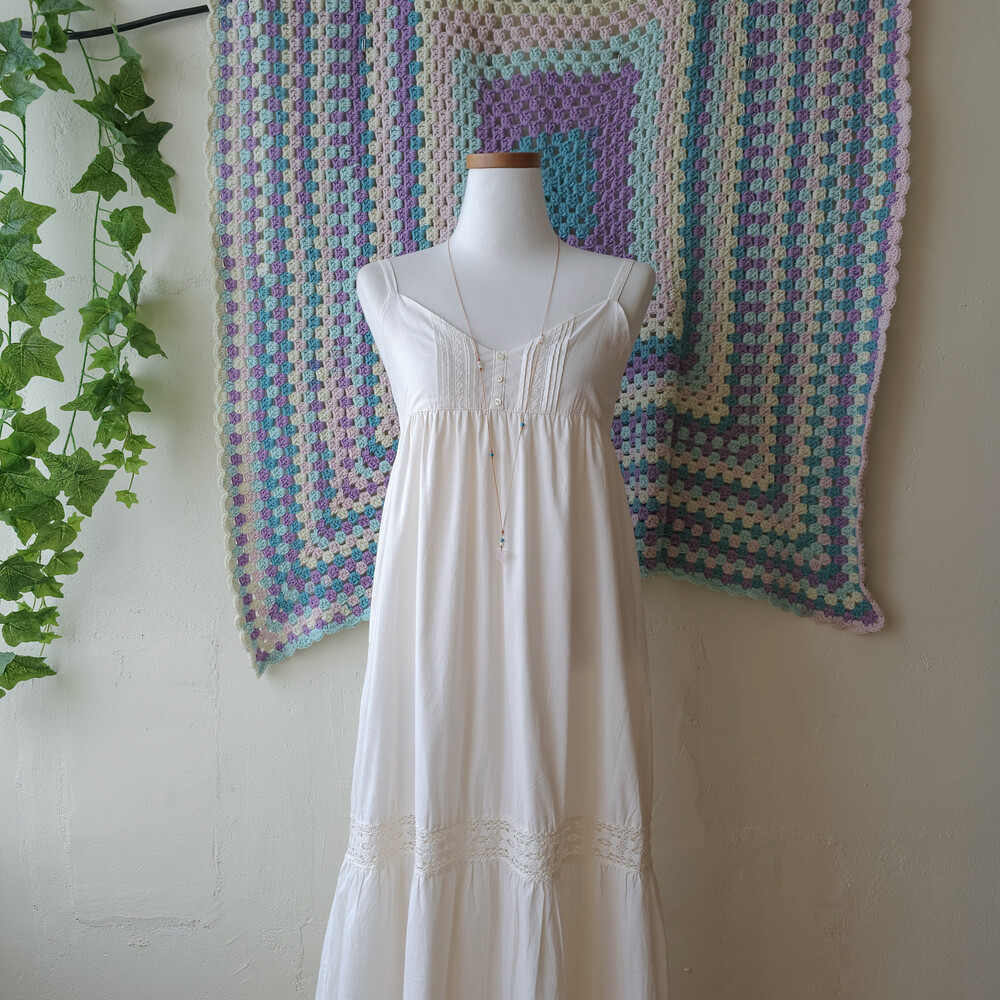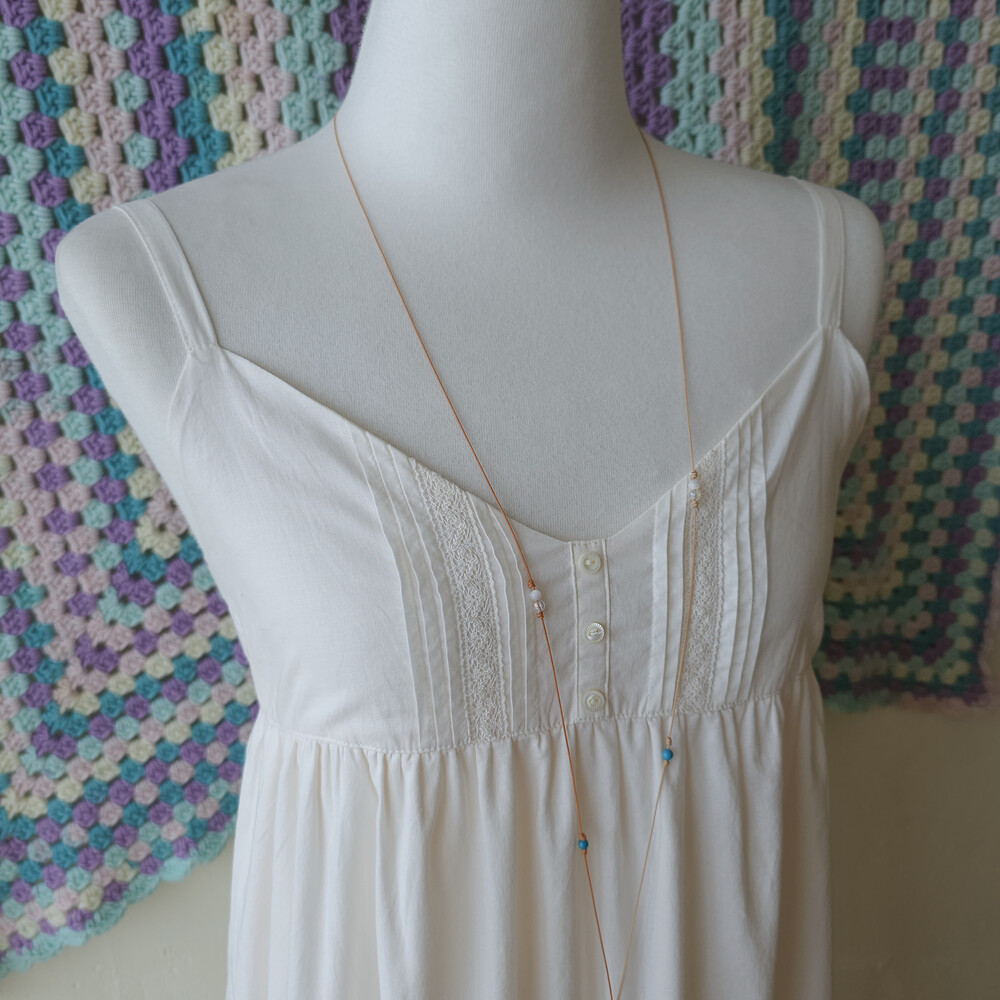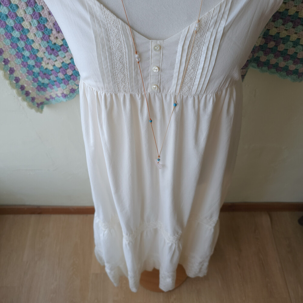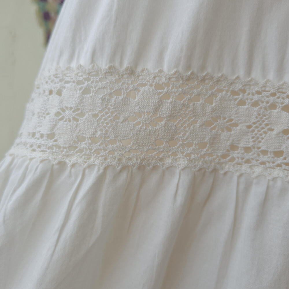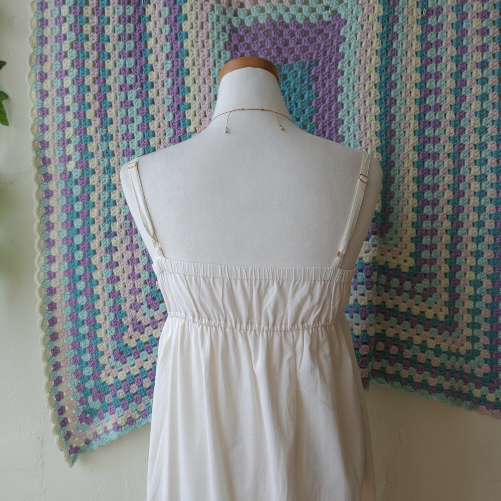 아이보리 색감의 브이넥 코튼 끈원피스예요