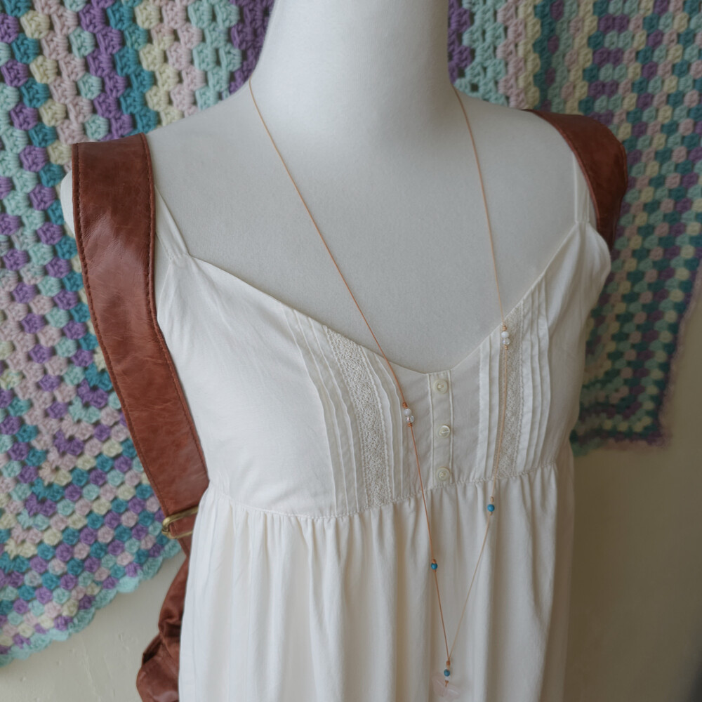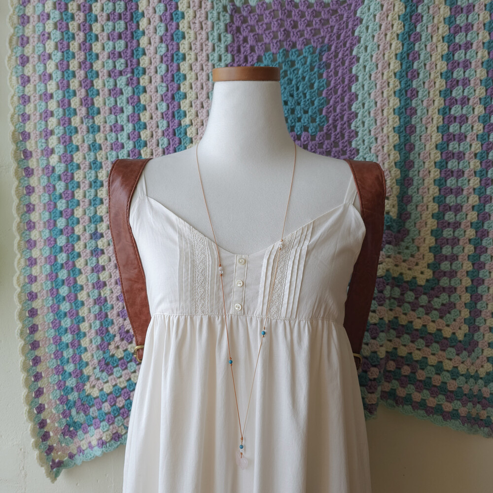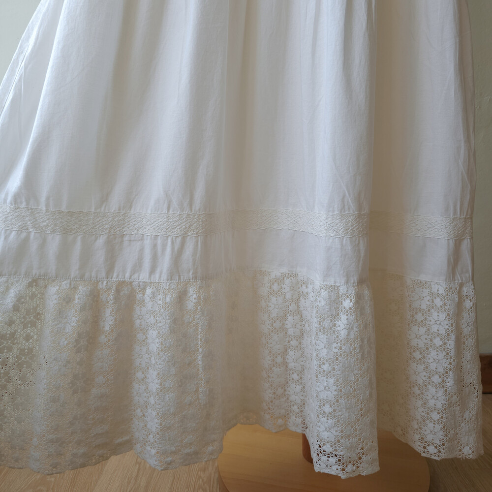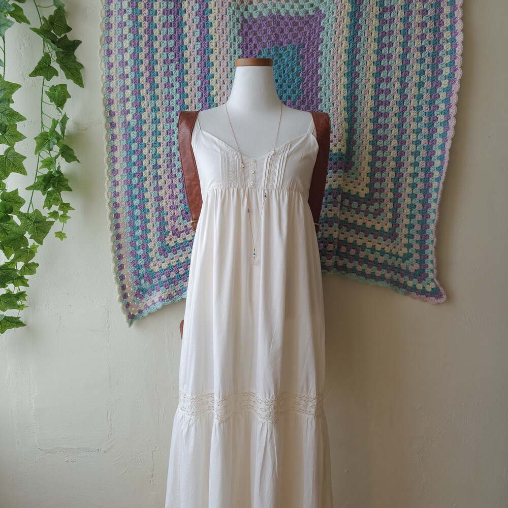 아이보리 색감의 브이넥 코튼 끈원피스예요