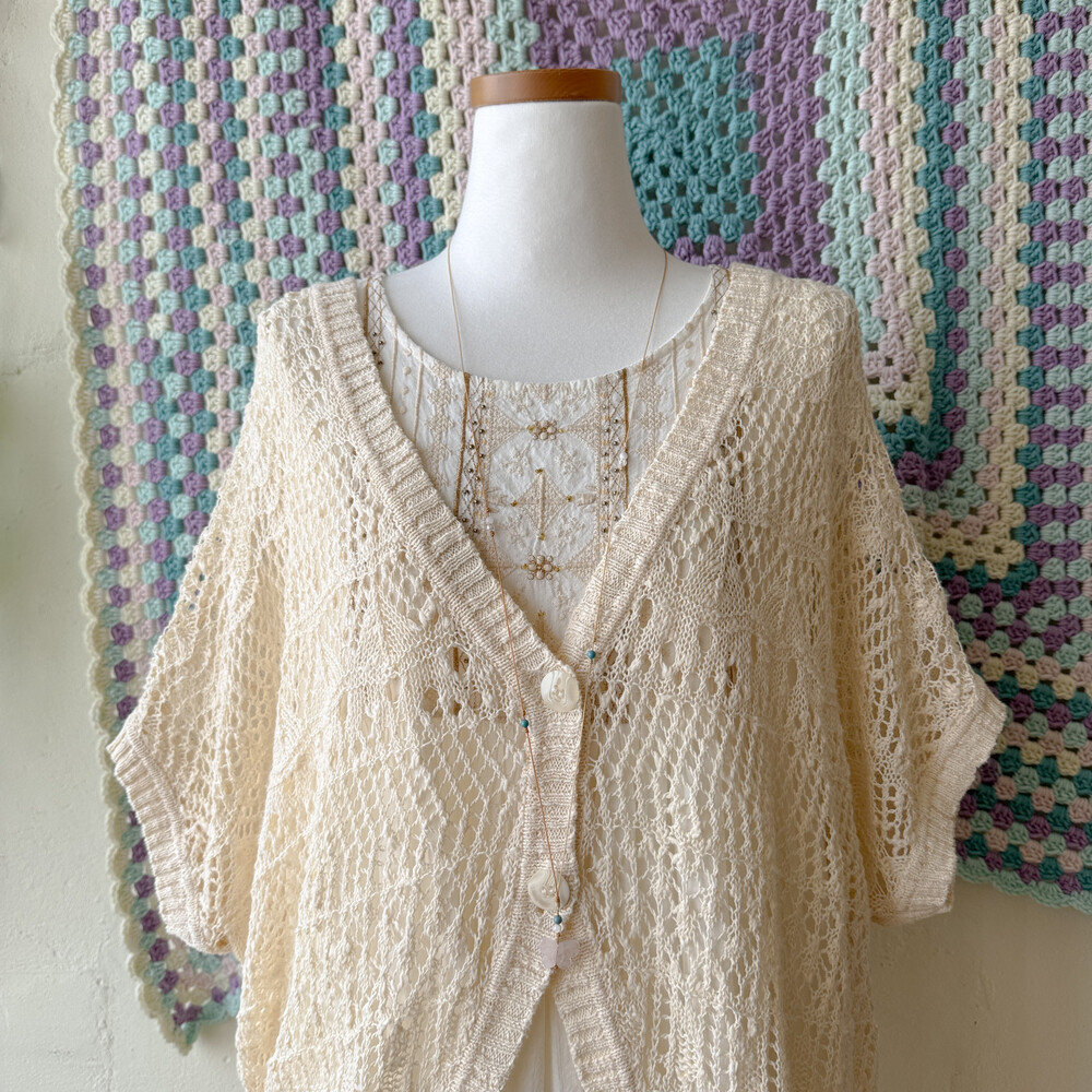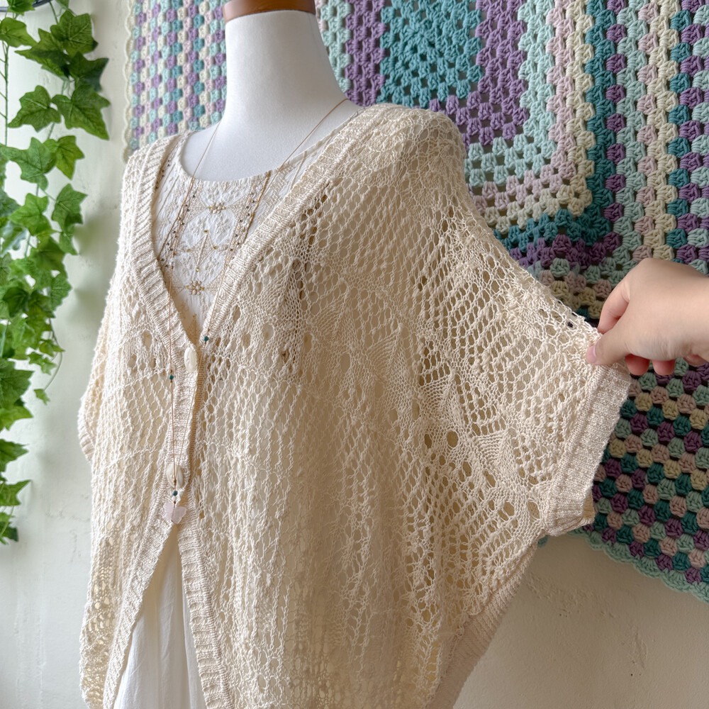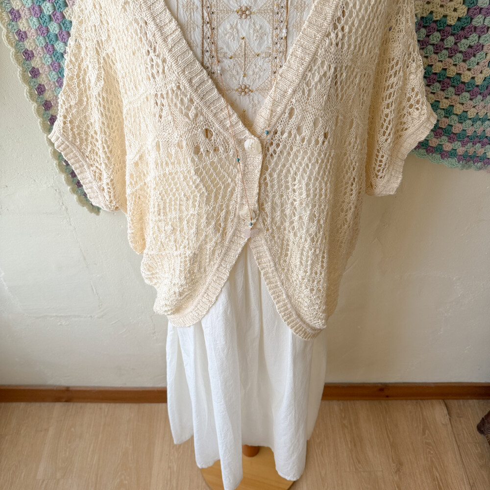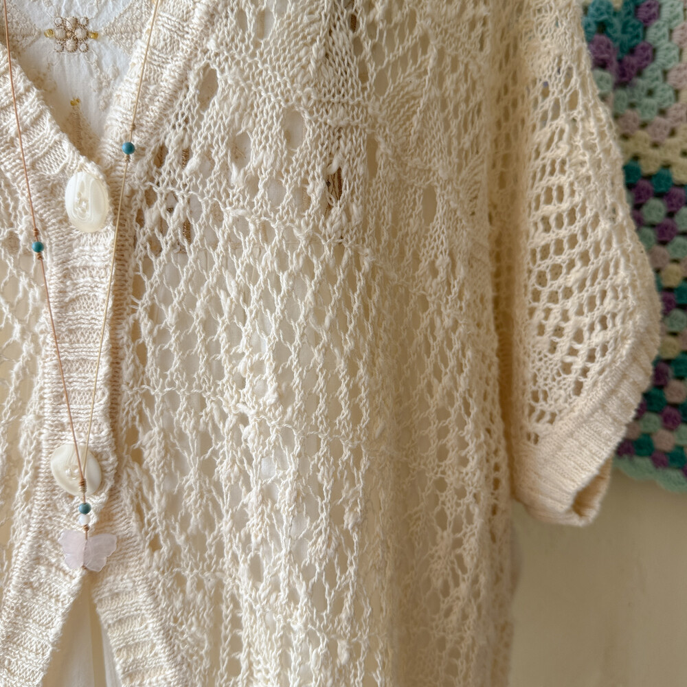 아이보리 색감의 펀칭 크로셰 볼레로 가디건이에요