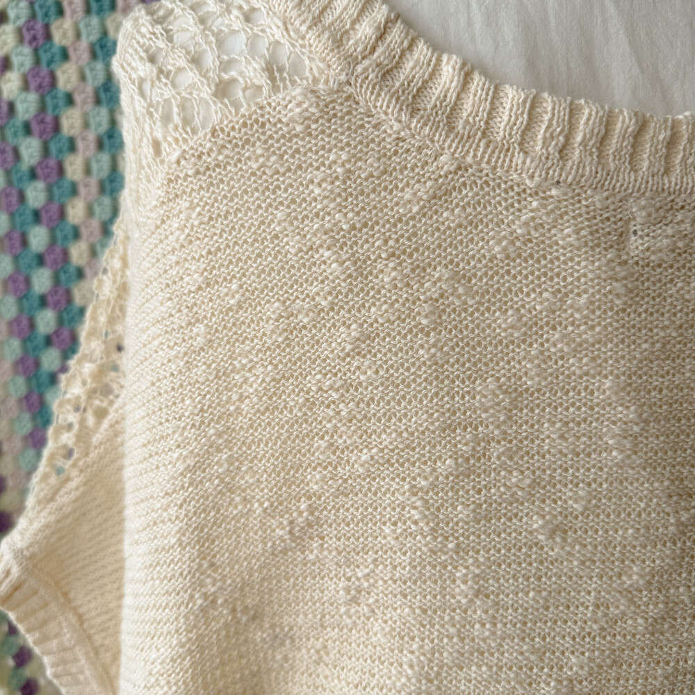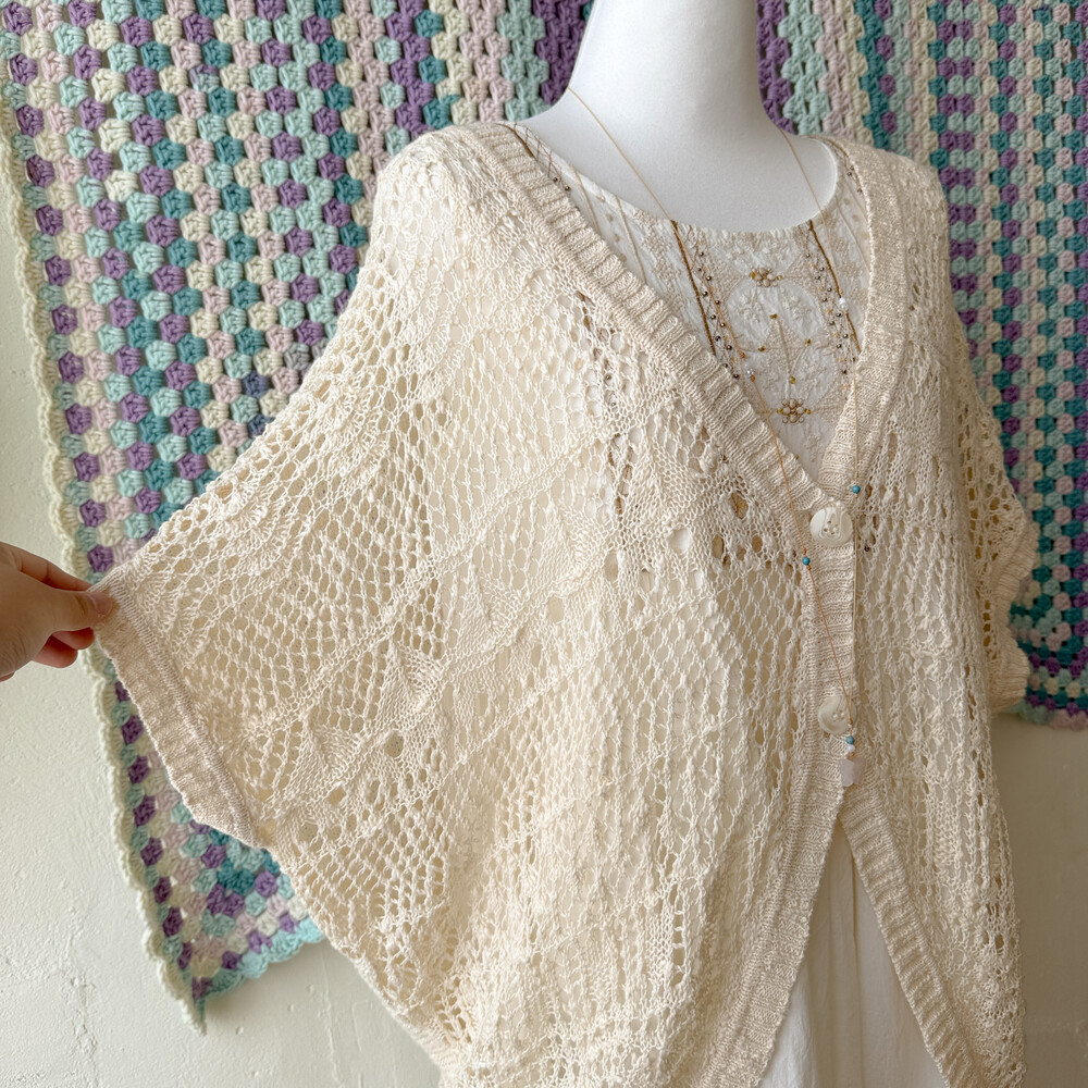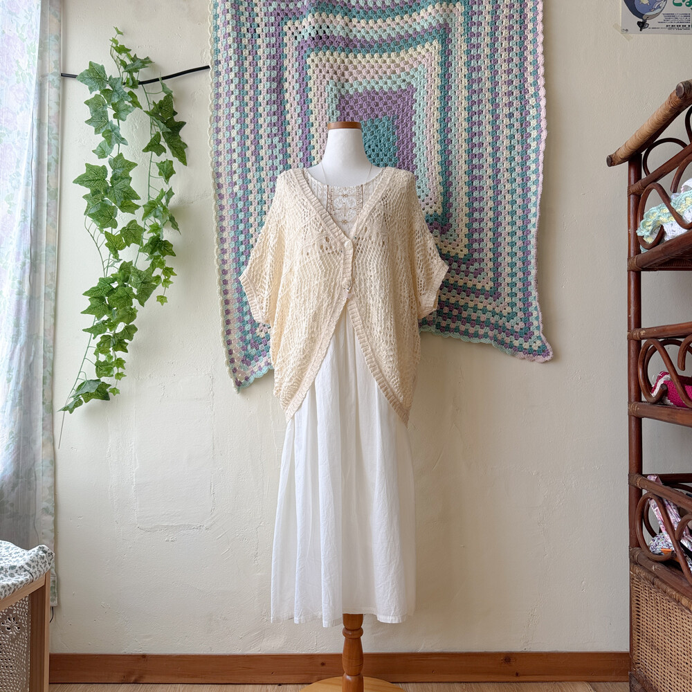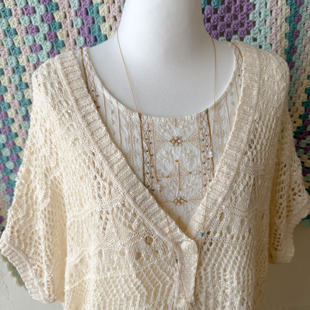 아이보리 색감의 펀칭 크로셰 볼레로 가디건이에요