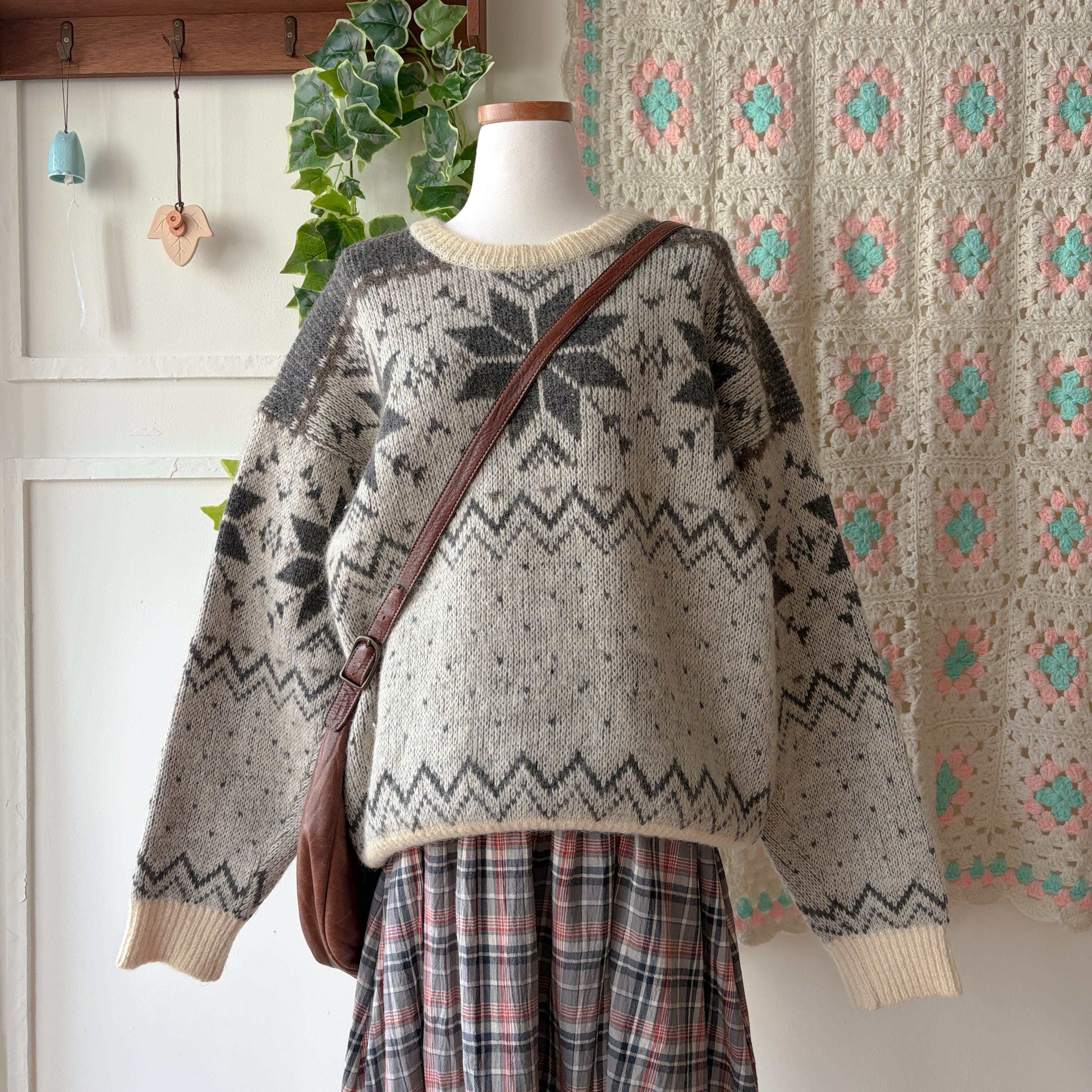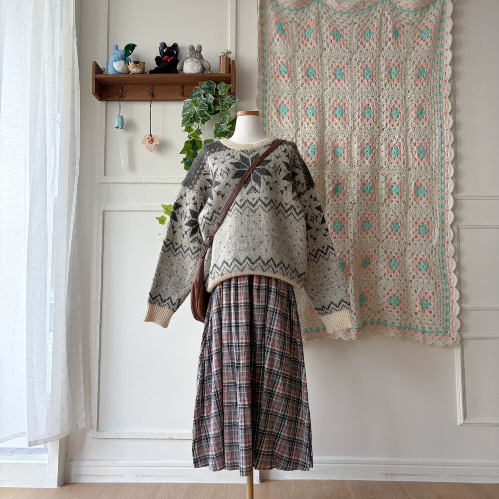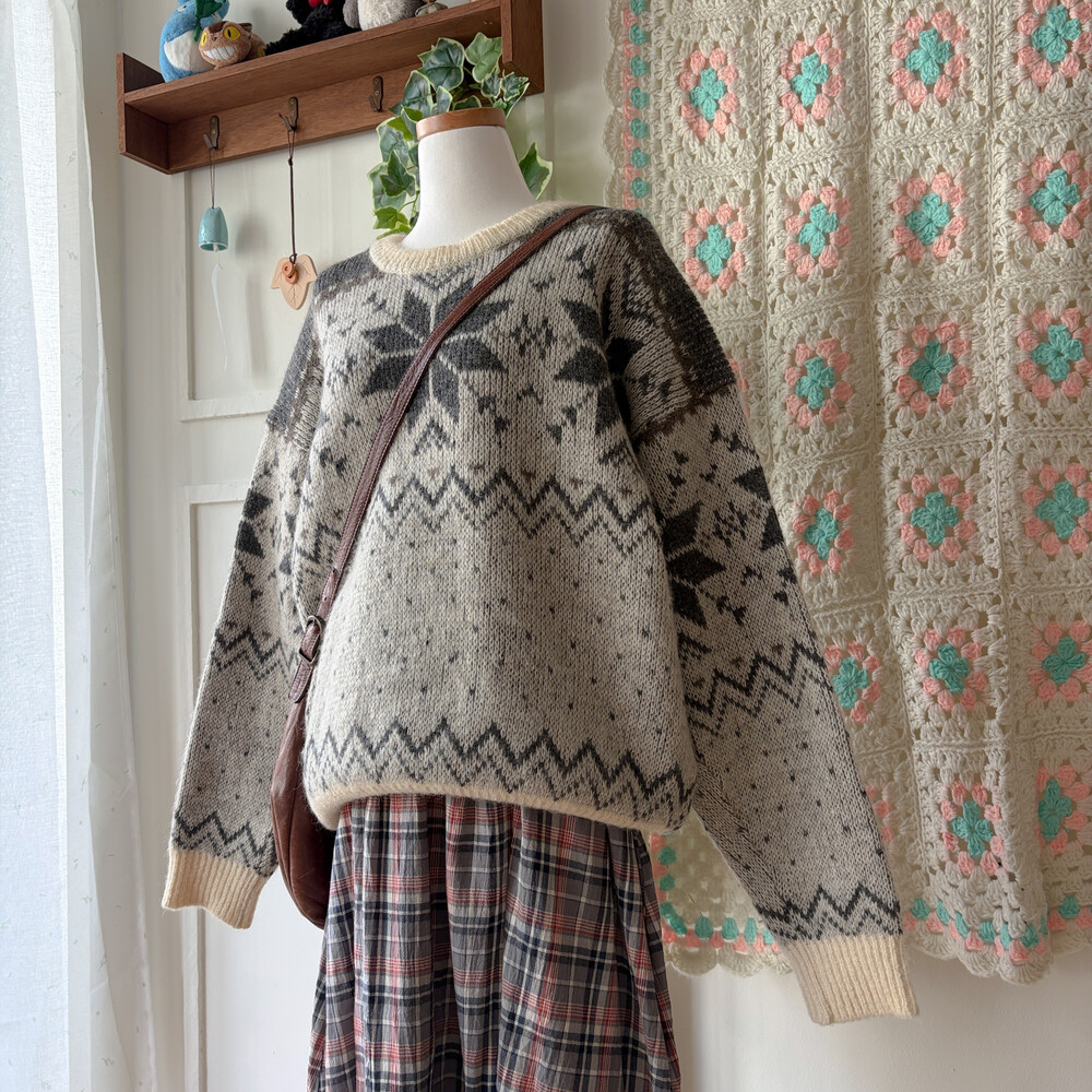 그레이 눈꽃 패턴의 노르딕 니트예요