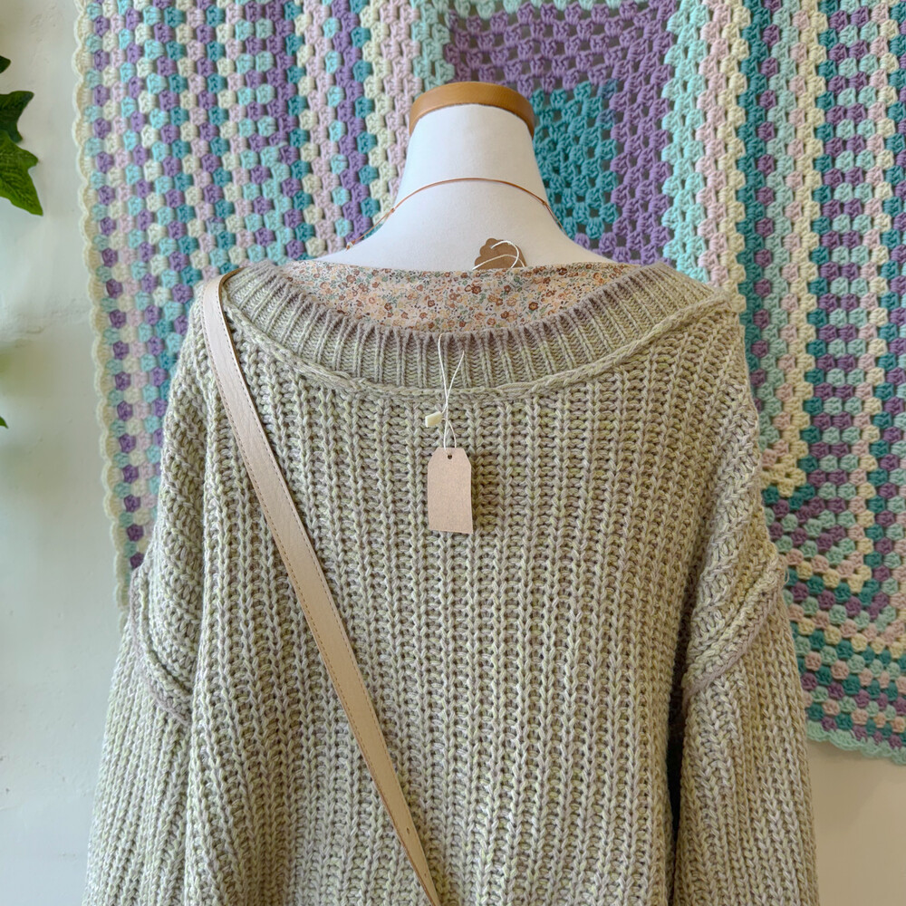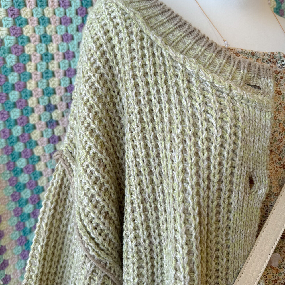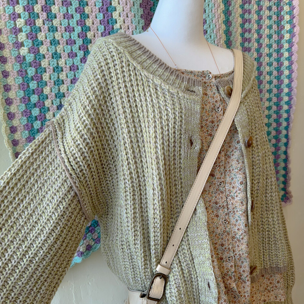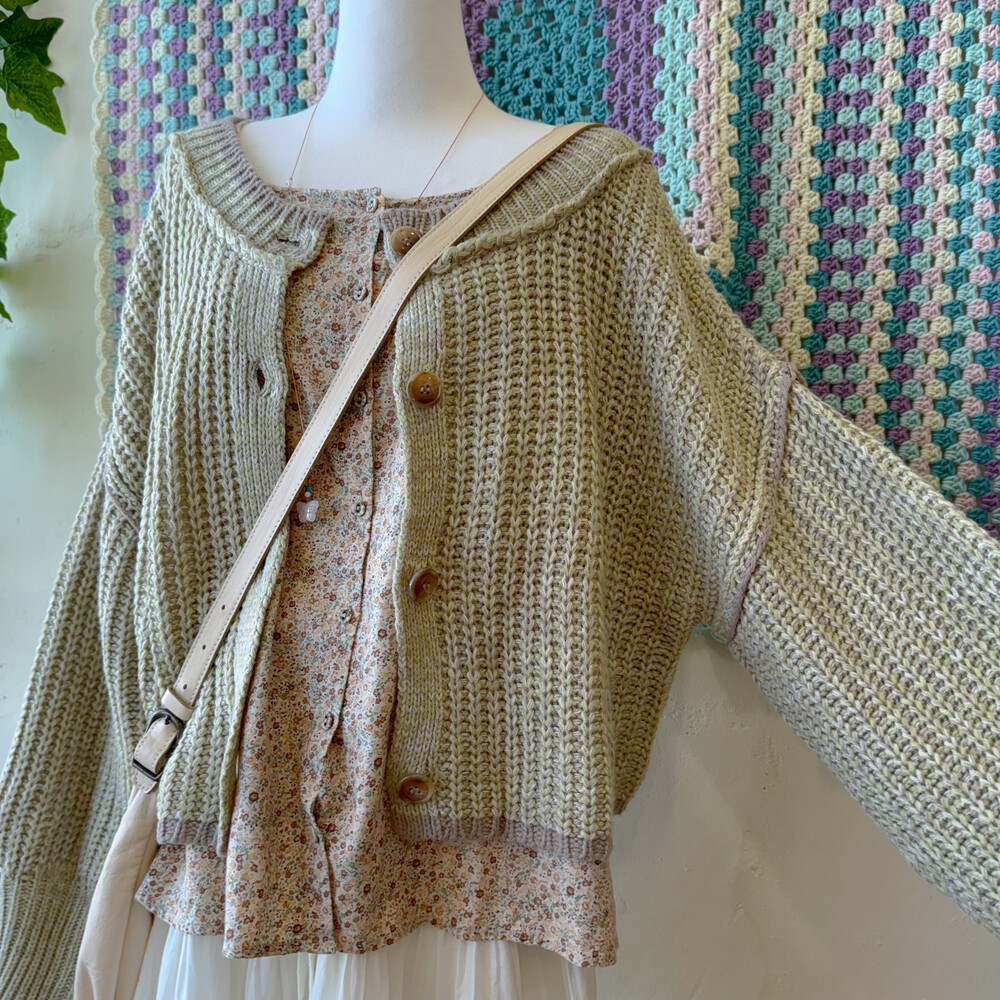 그린, 베이지색 믹스 오버사이즈 가디건이에요