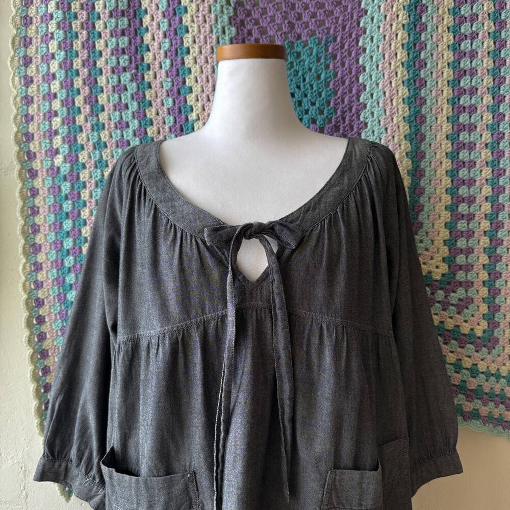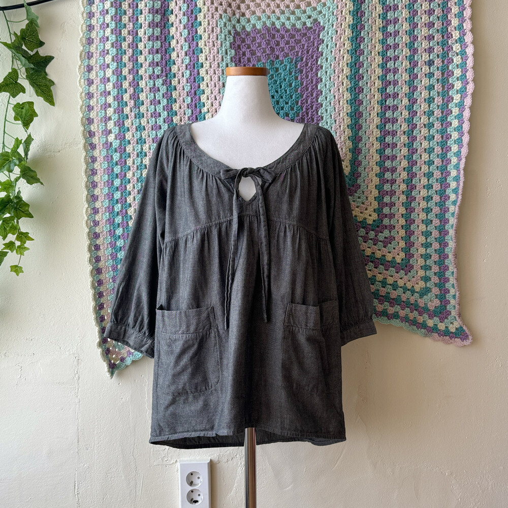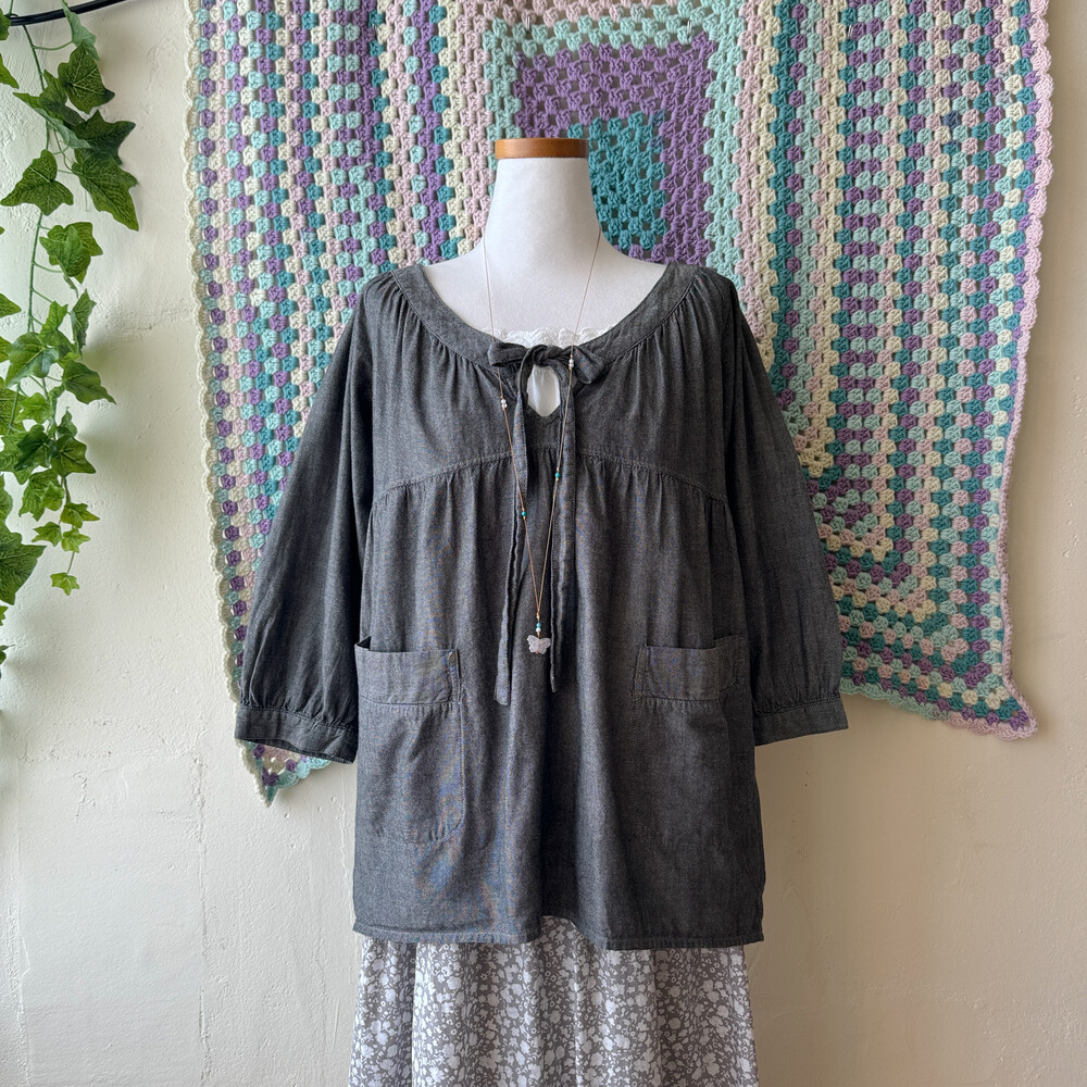 흑청 색감의 코튼 블라우스예요
