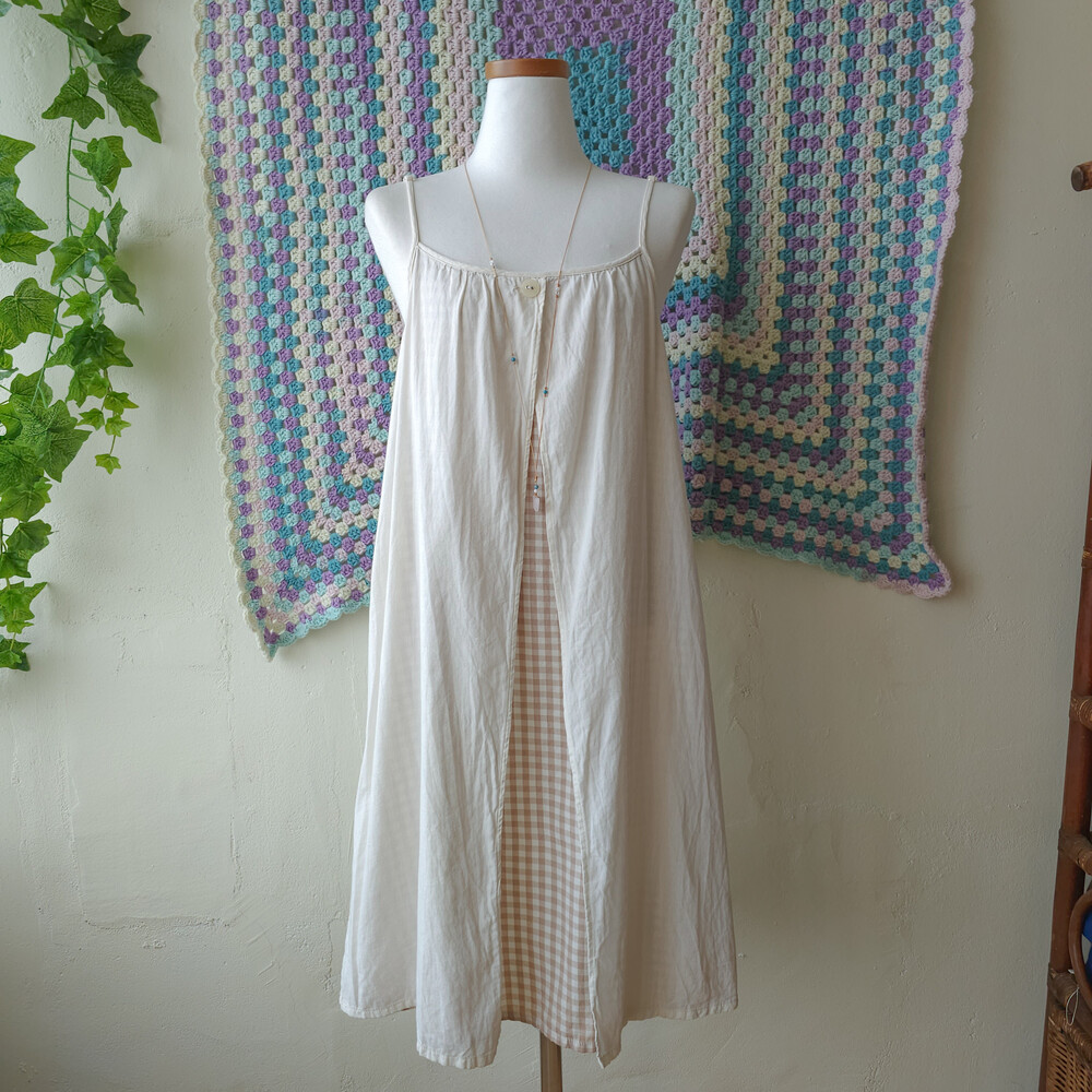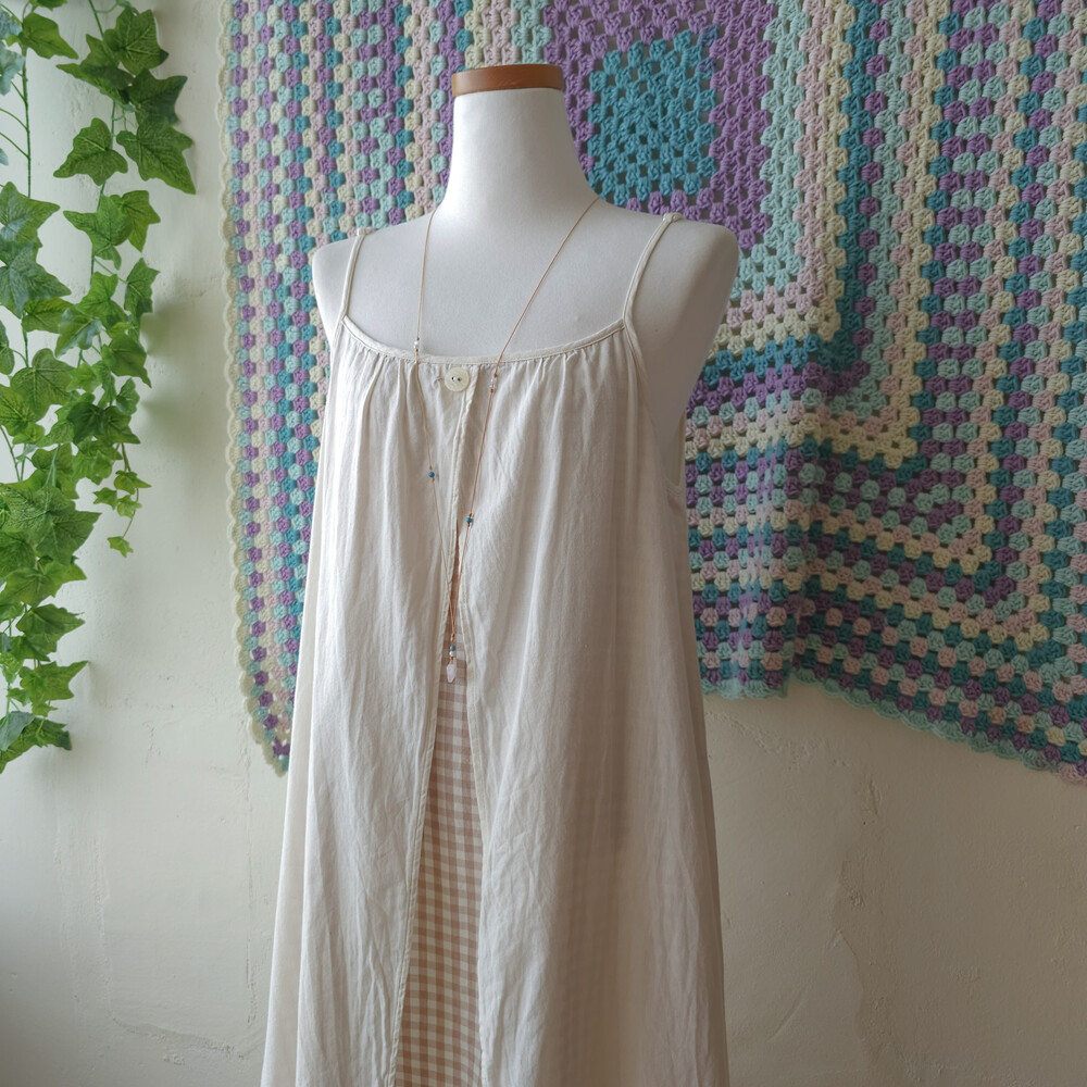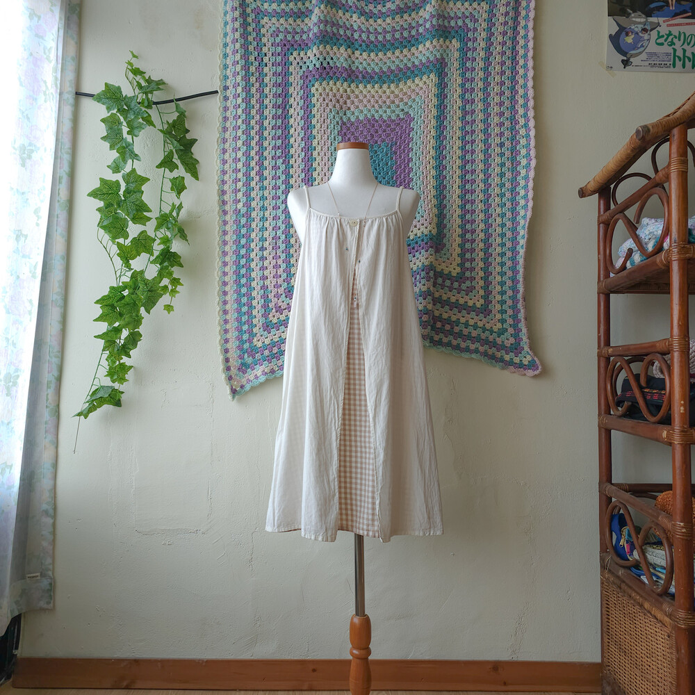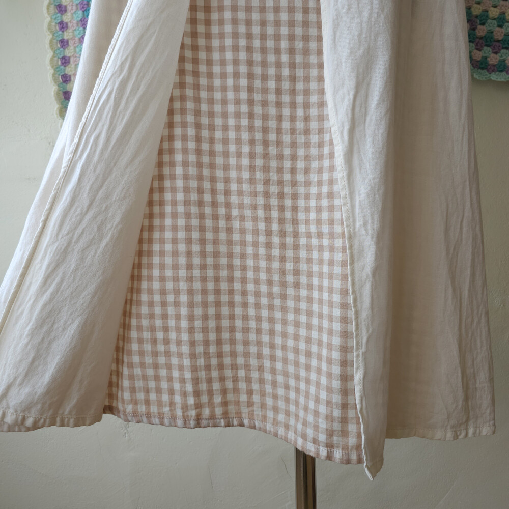 아이보리+베이지 체크 포인트의 코튼 끈원피스예요