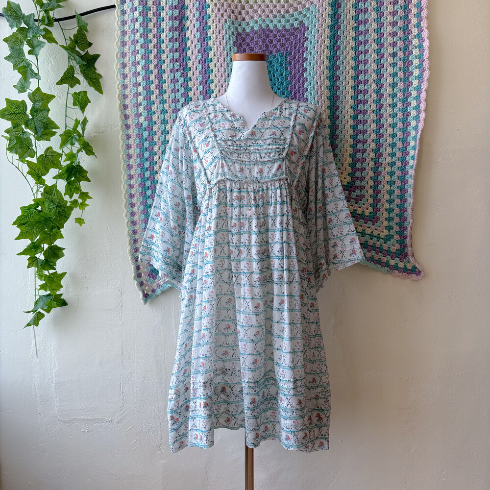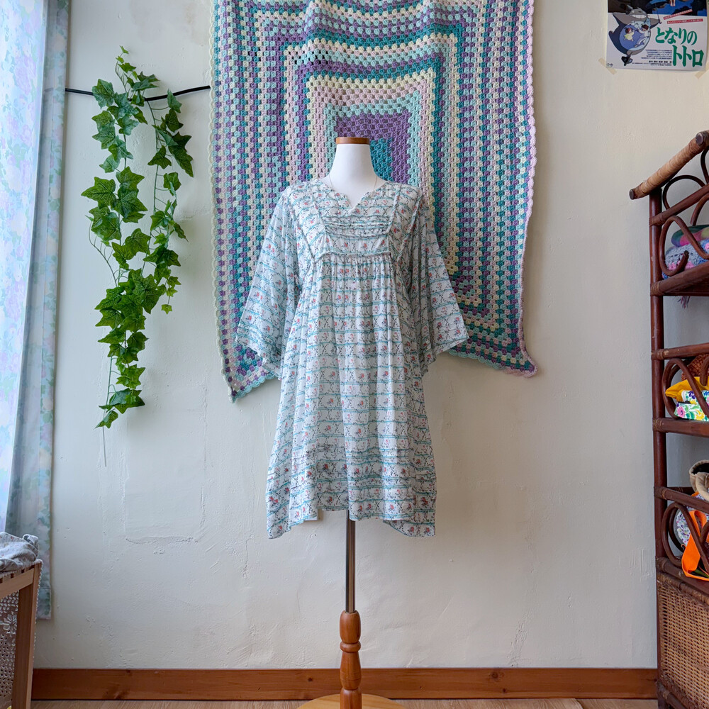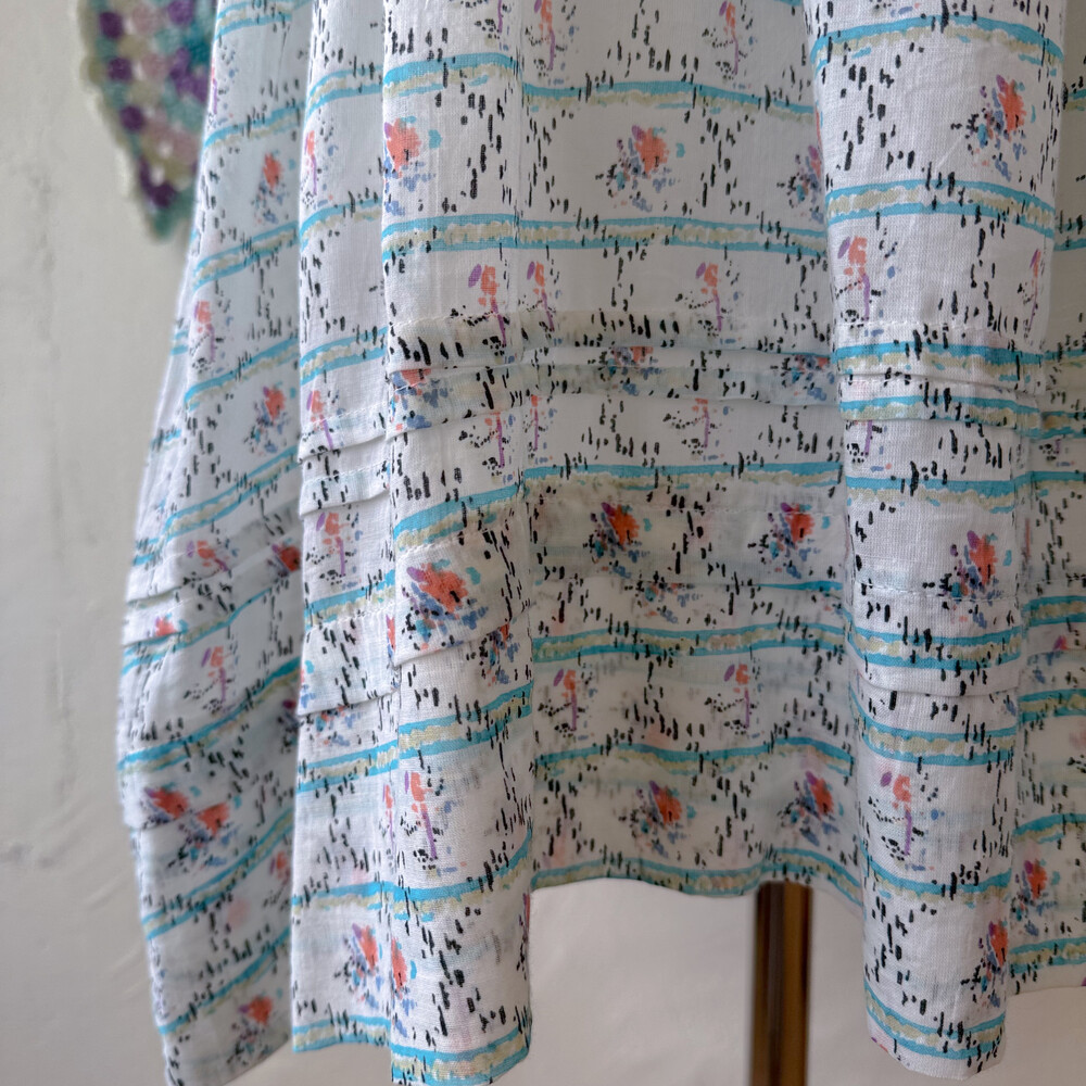 파스텔톤의 민트 라인, 살구꽃무늬등이 조합된