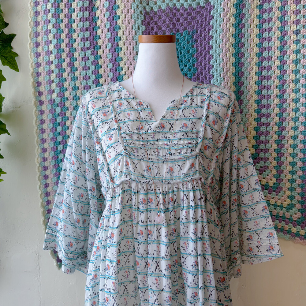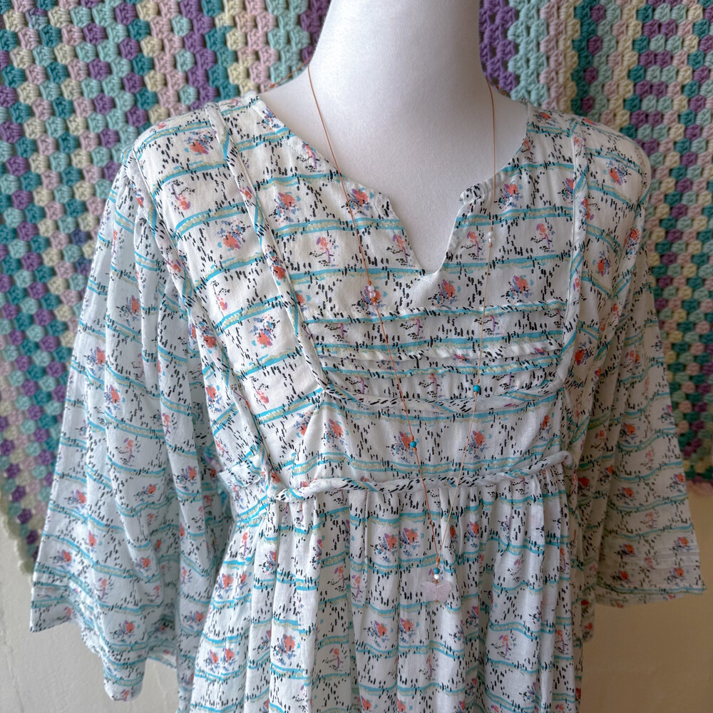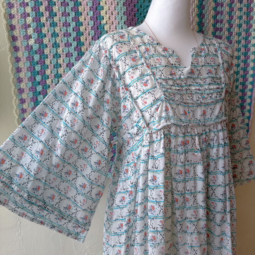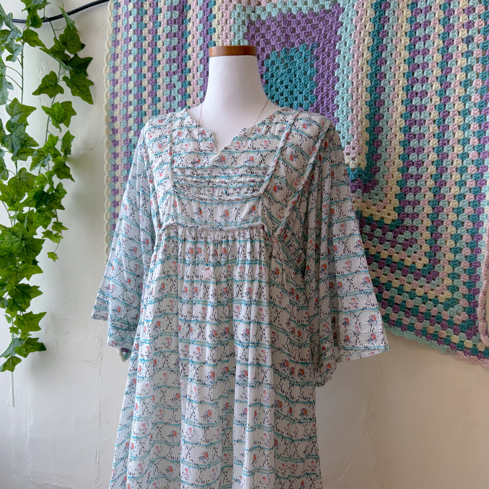 파스텔톤의 민트 라인, 살구꽃무늬등이 조합된