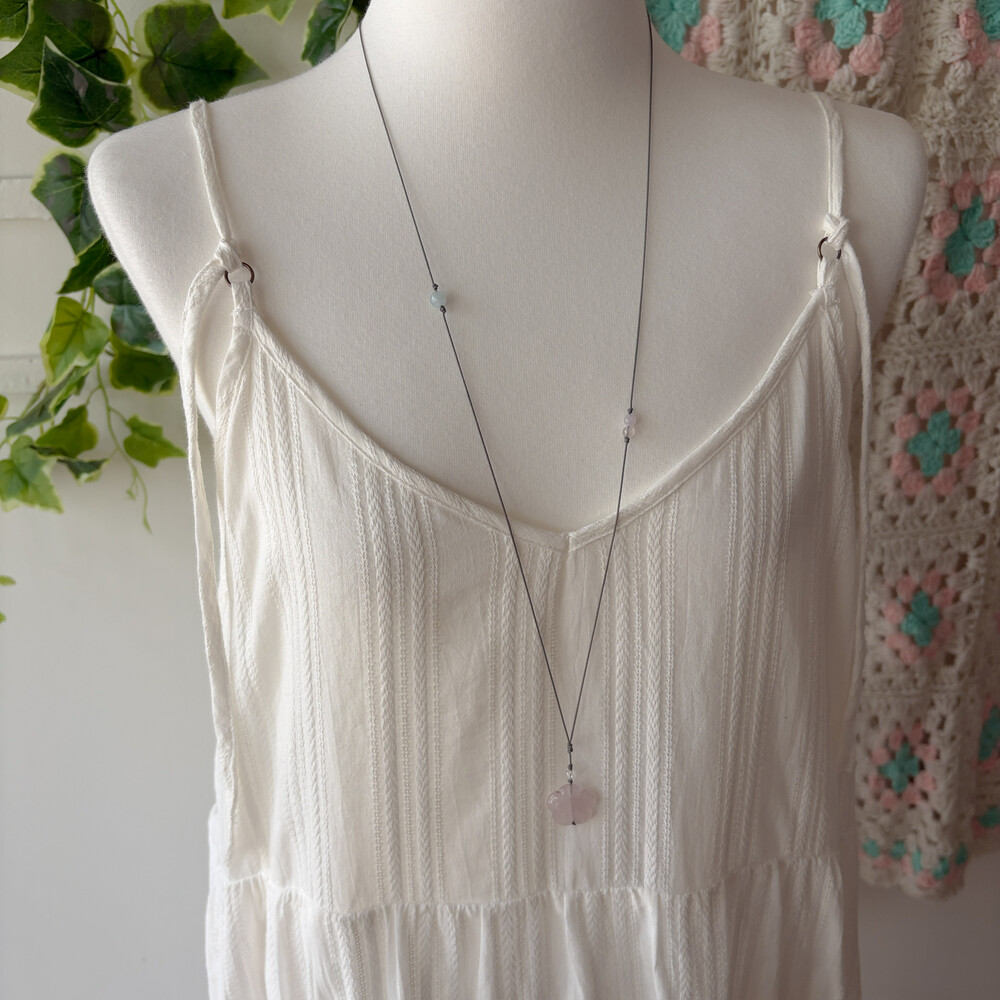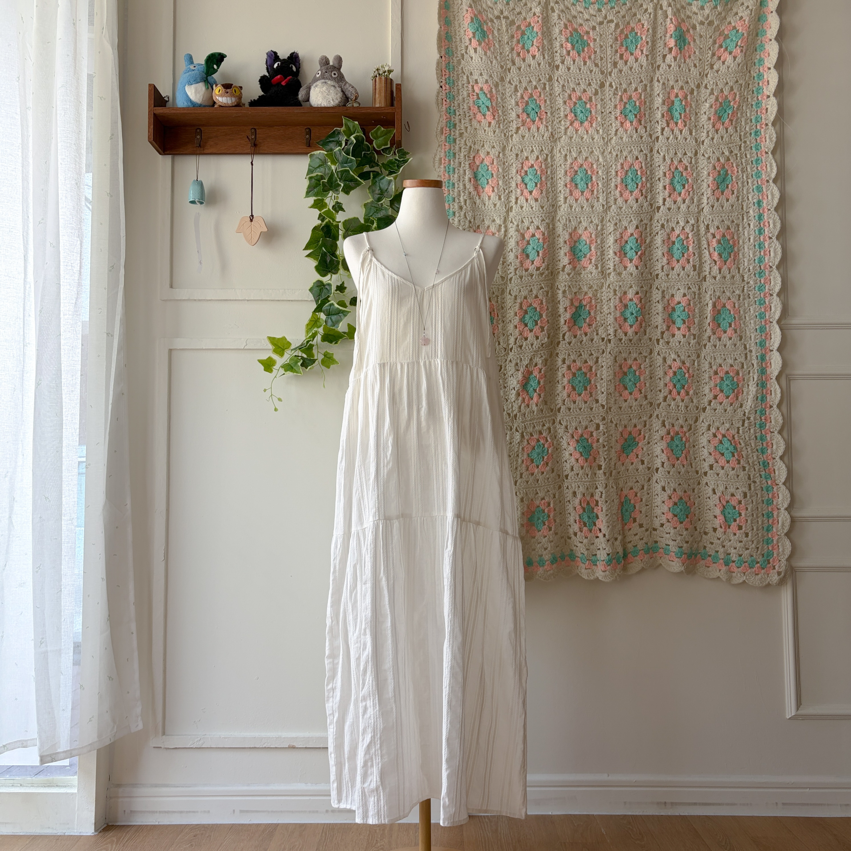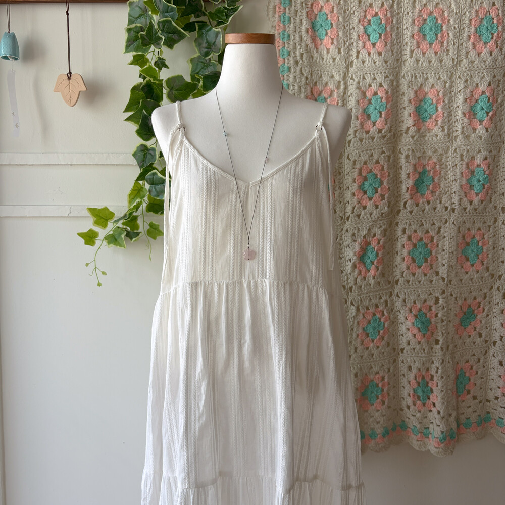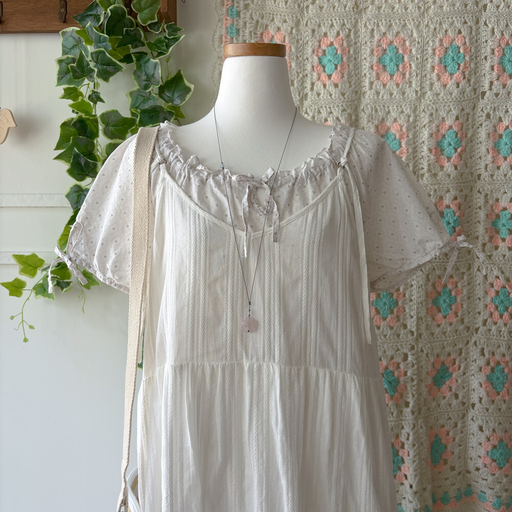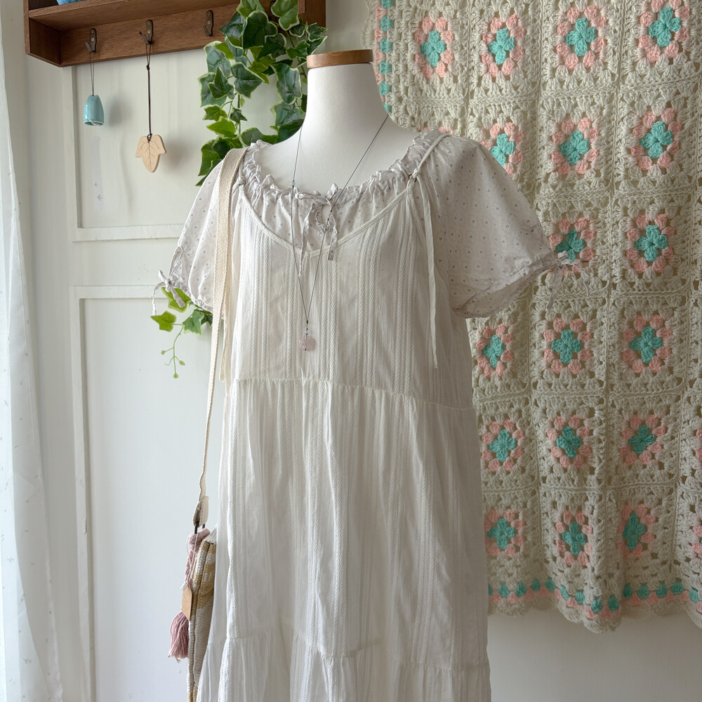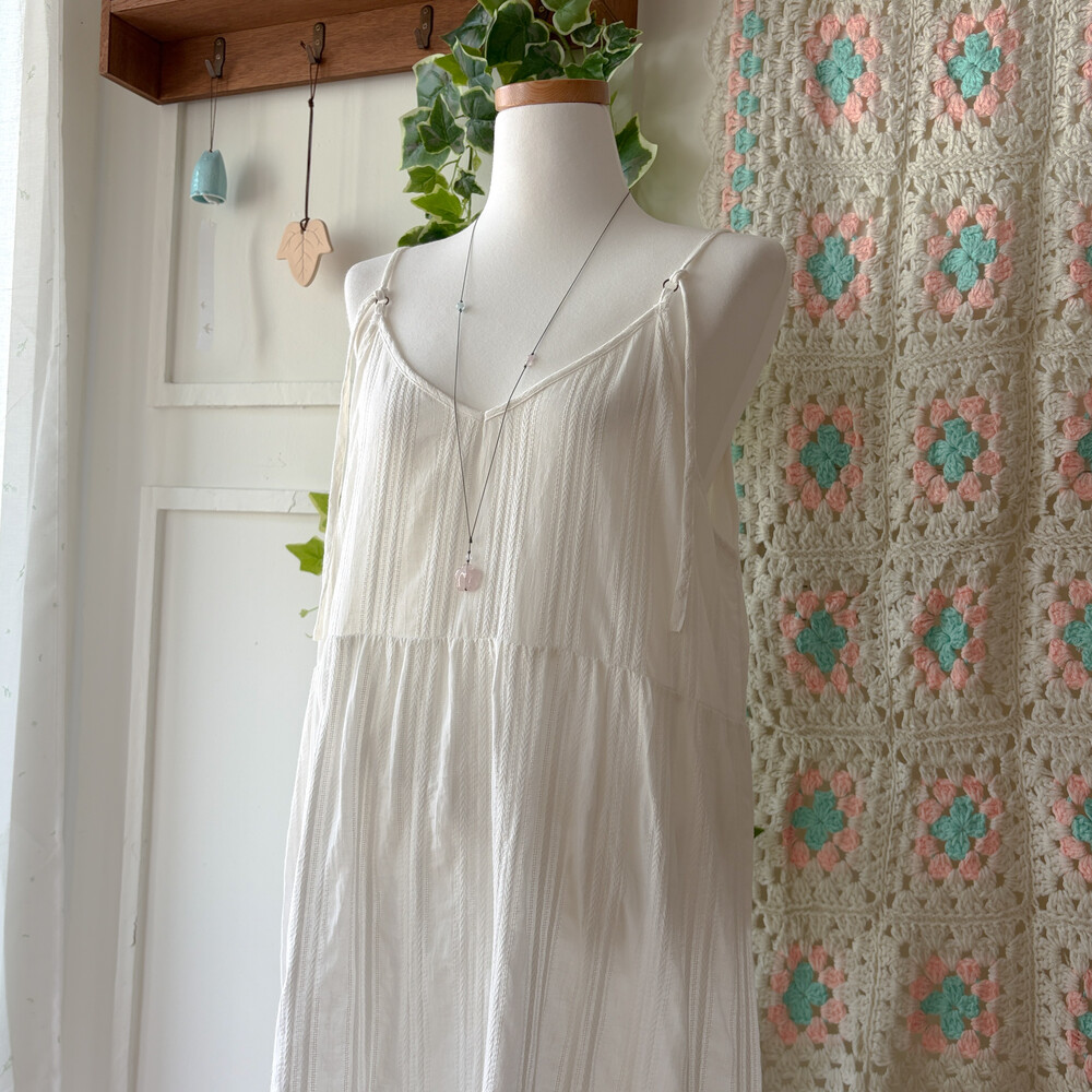 화이트 색감의 코튼 자수 브이넥 끈원피스예요