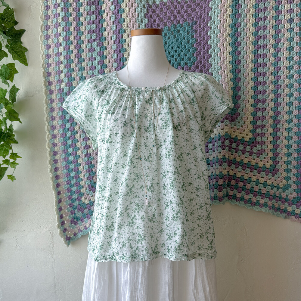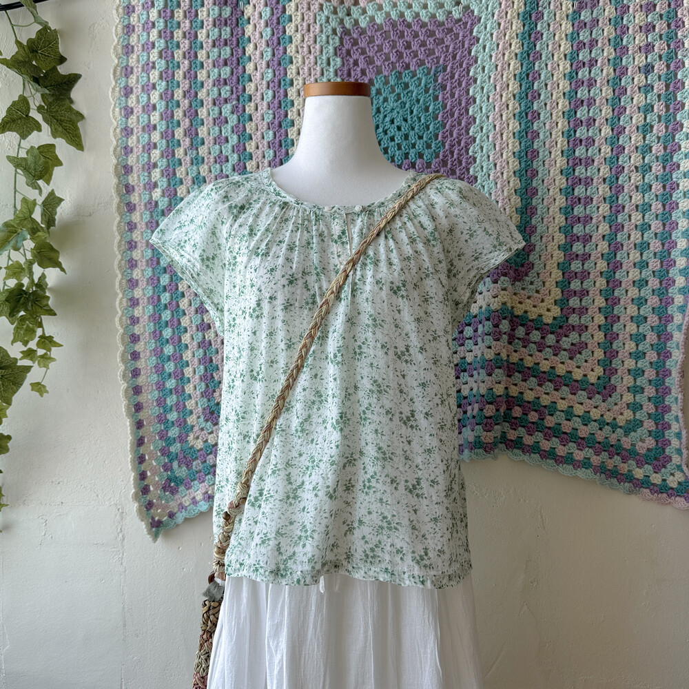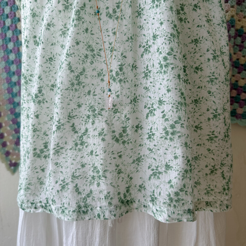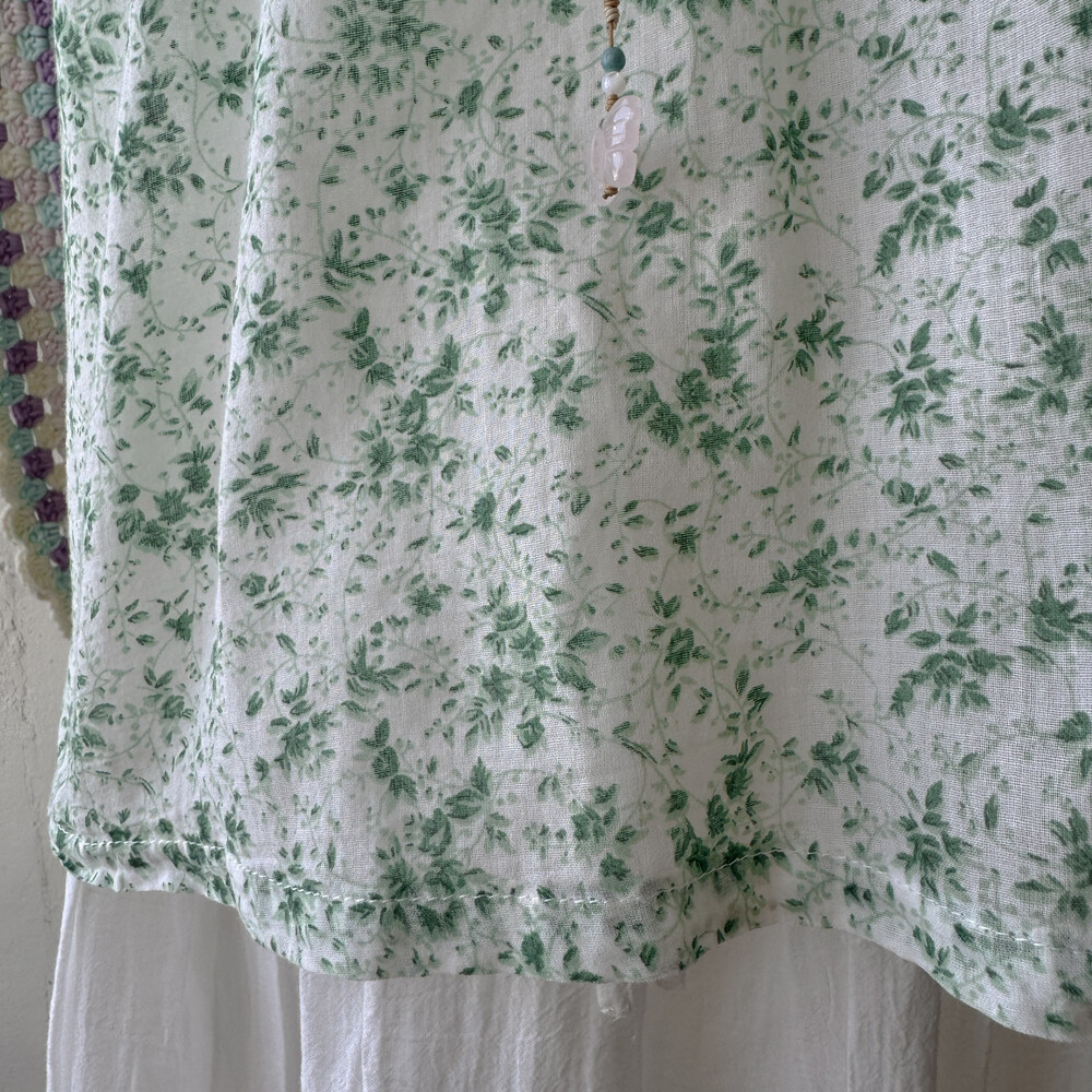 그린 꽃무늬 코튼 블라우스예요