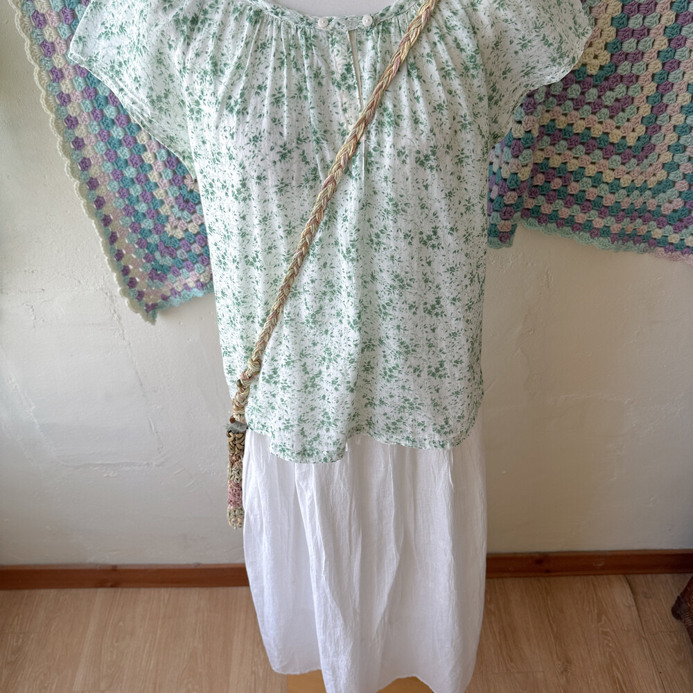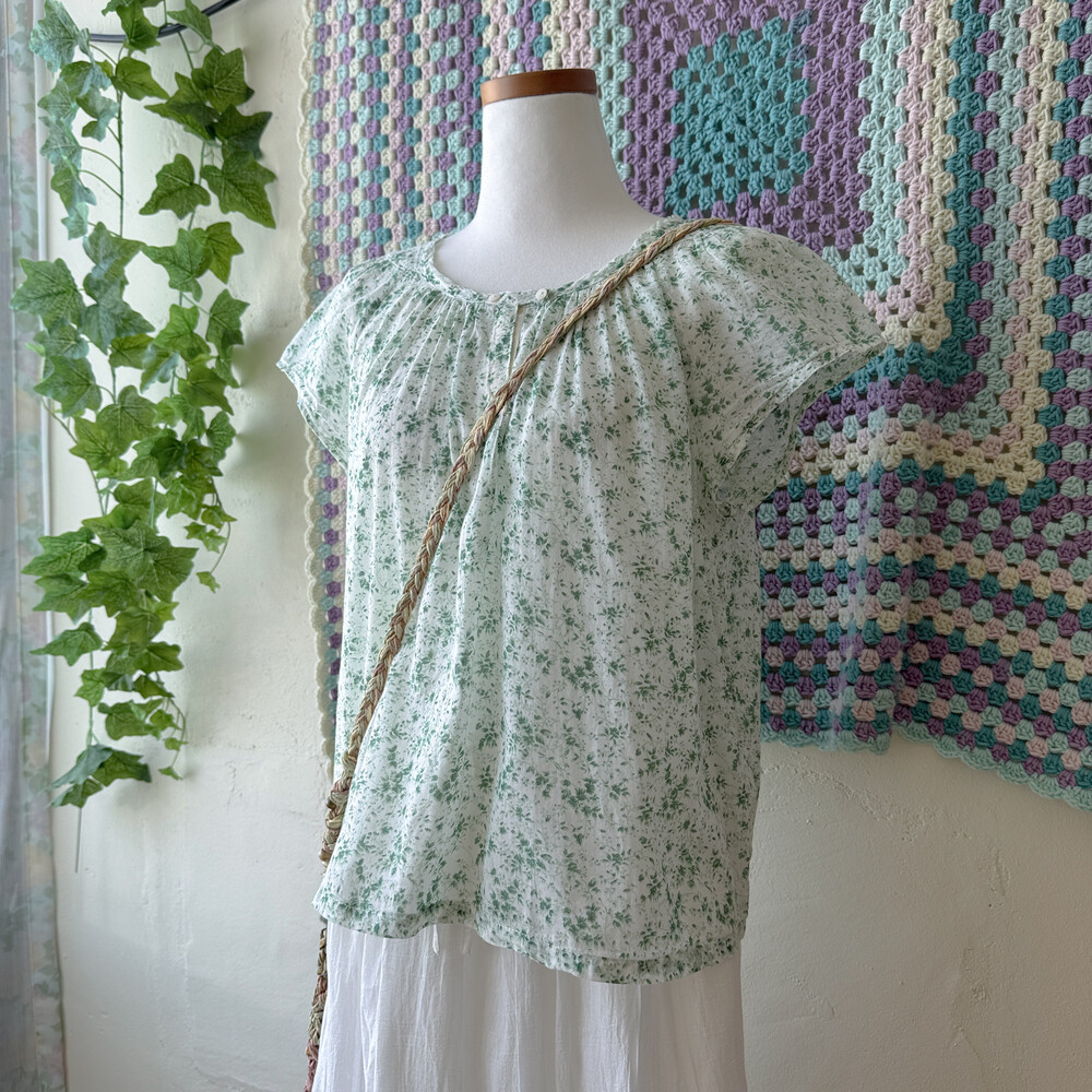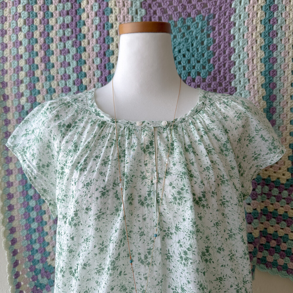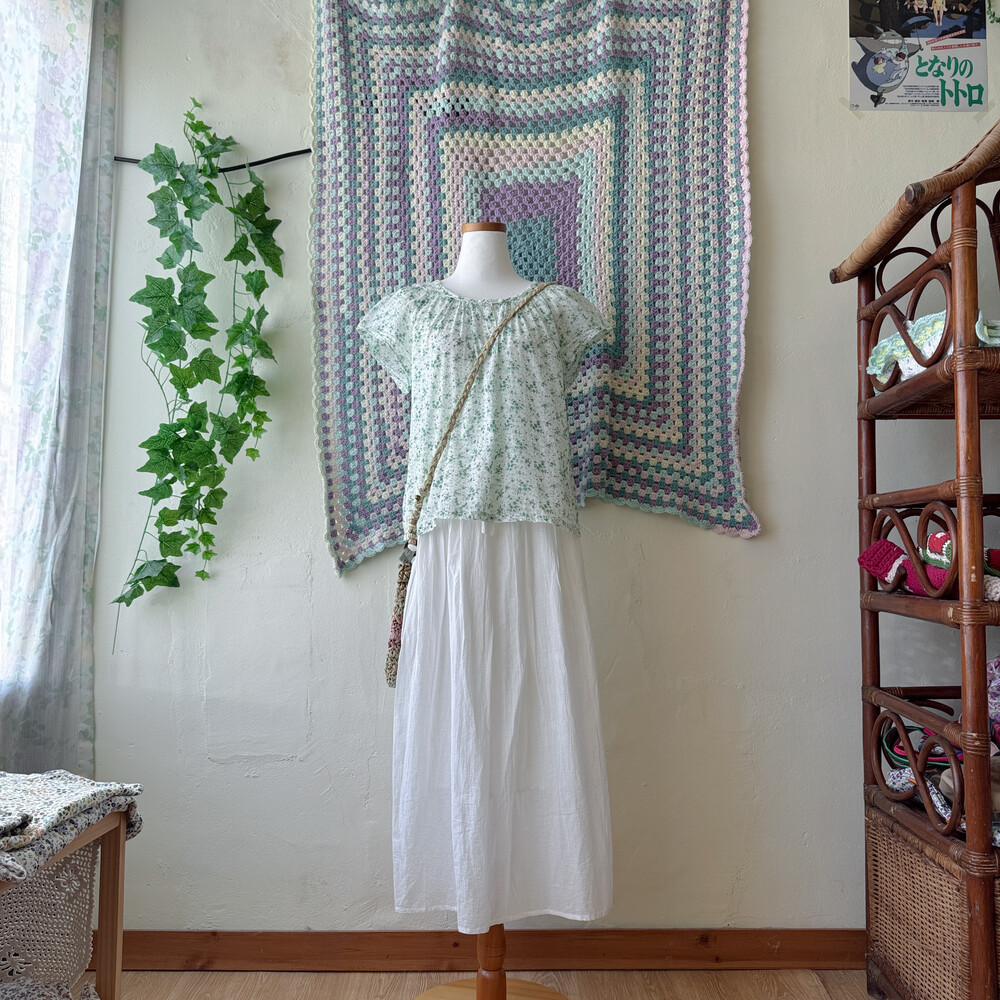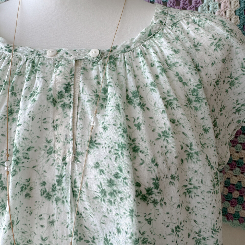 그린 꽃무늬 코튼 블라우스예요
