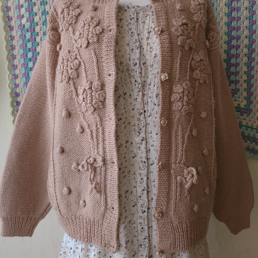 novara 브랜드의 인디핑크 모티브 가디건이에요