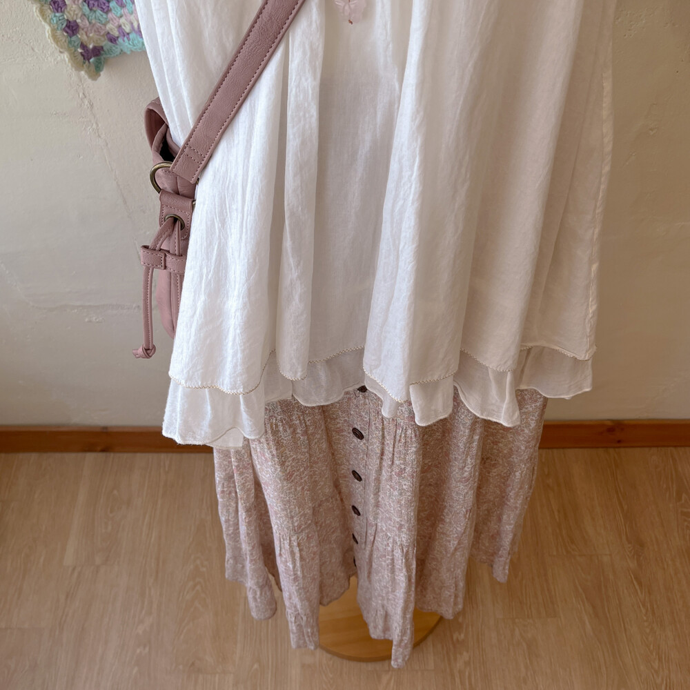 옅은 핑크 색감 잔잔한 패턴에 버튼업 디자인이라