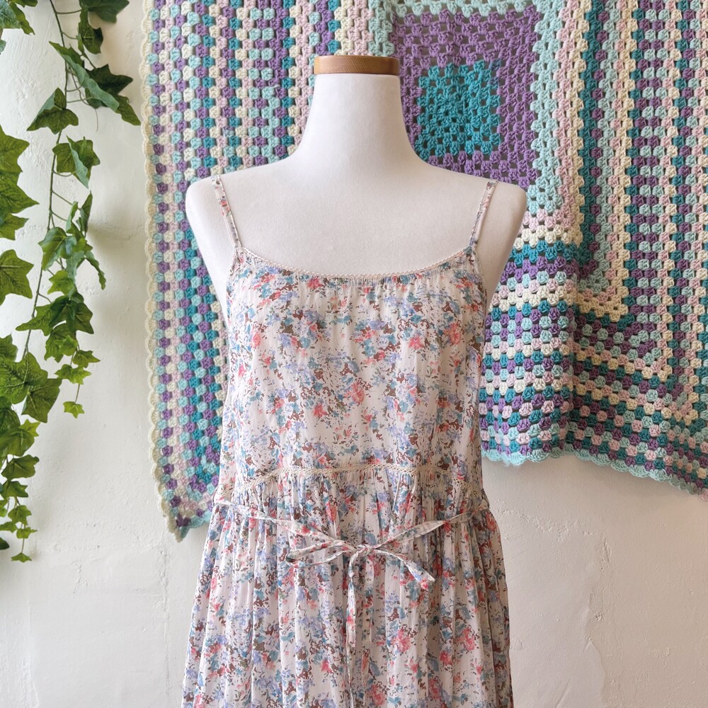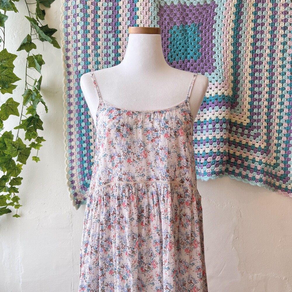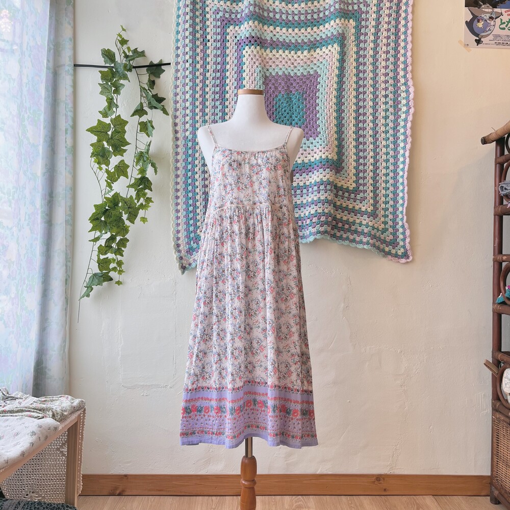 파스텔 보라 색감 베이스의 코튼 원피스예요