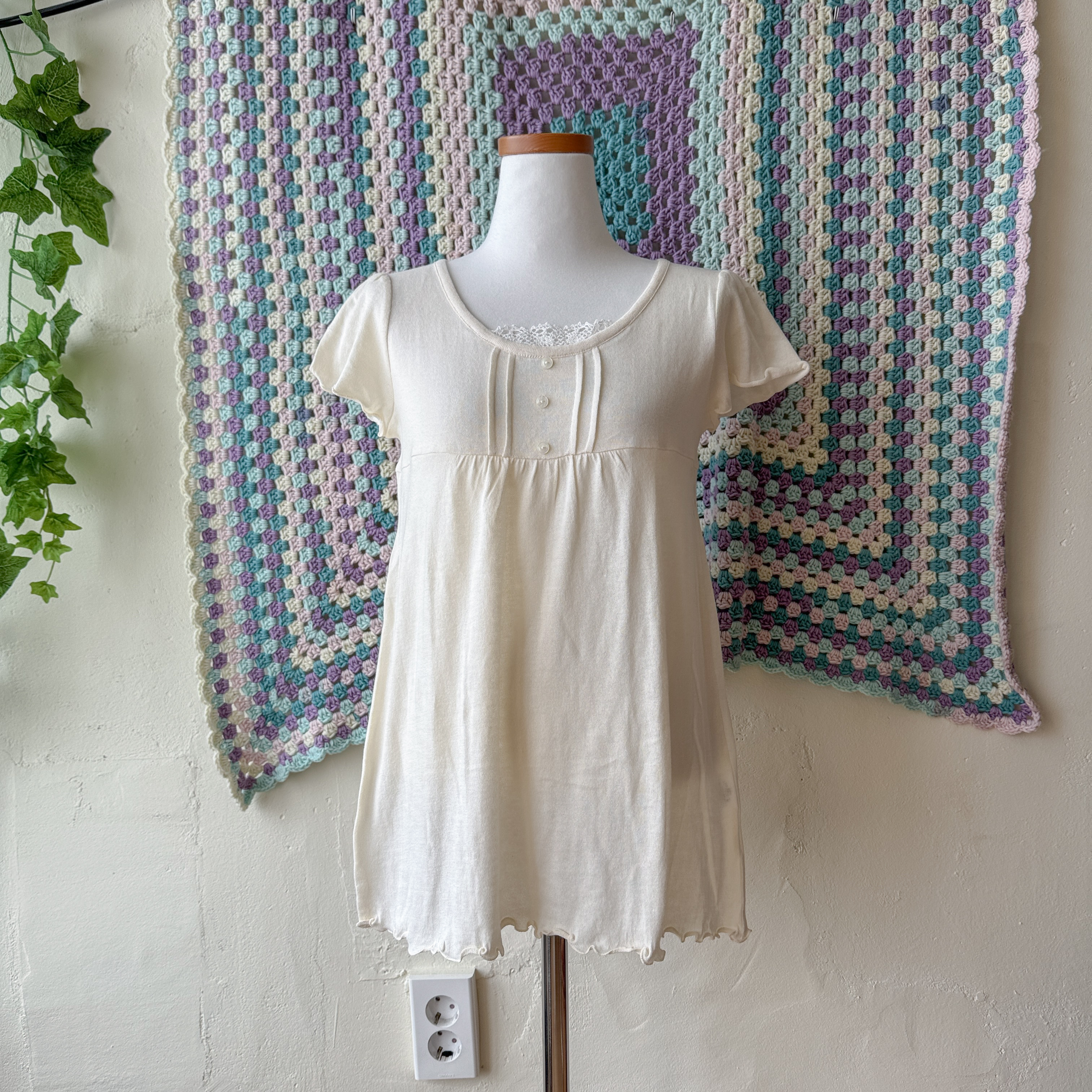 아이보리 색감의 핀턱 디테일 반팔 티셔츠에요
