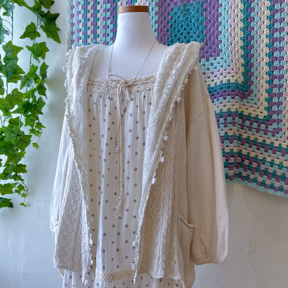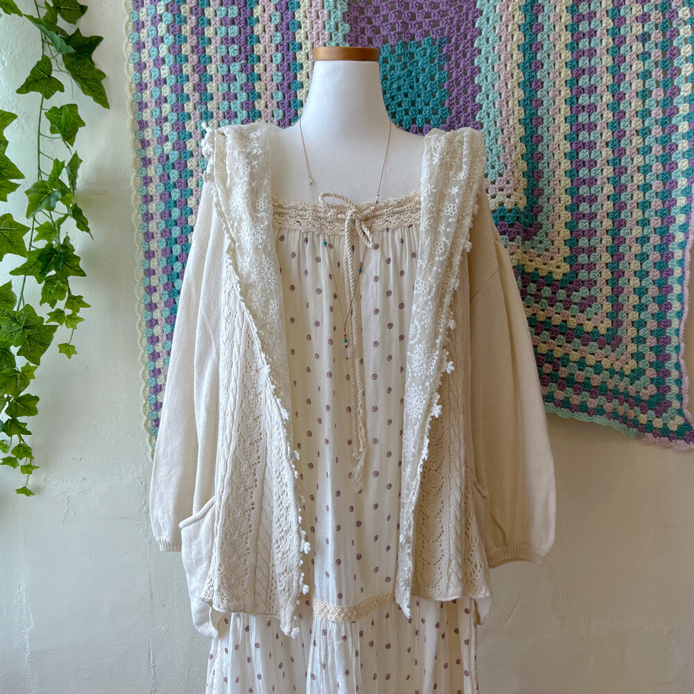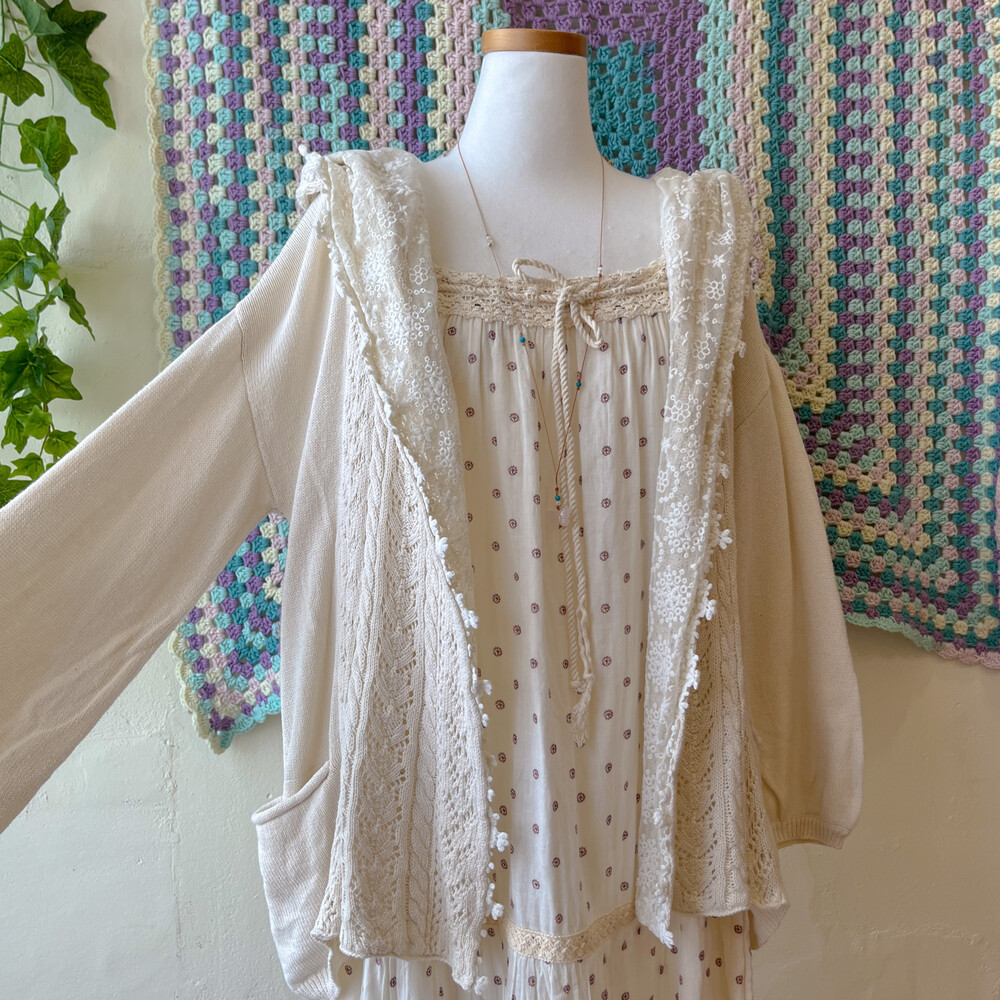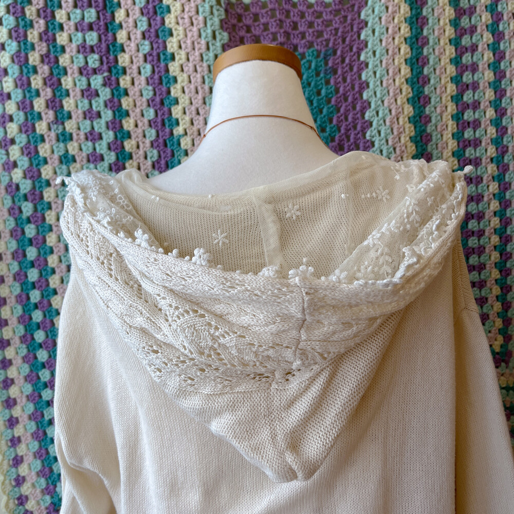 아이보리 색감의 레이스 후드 가디건이에요