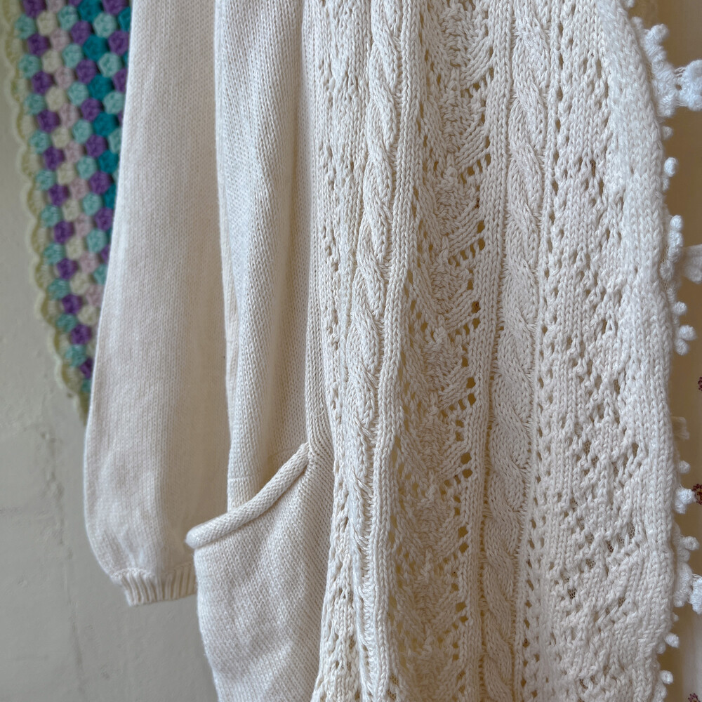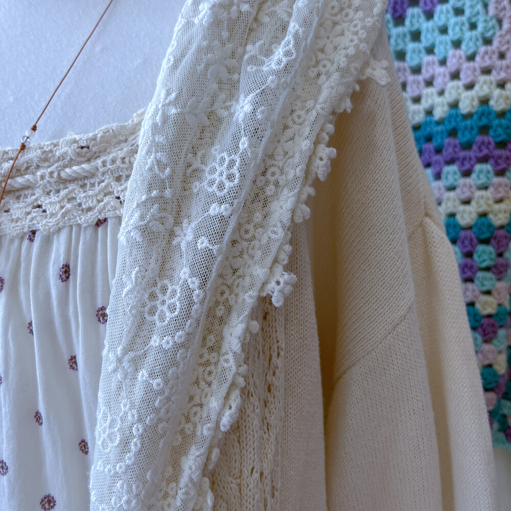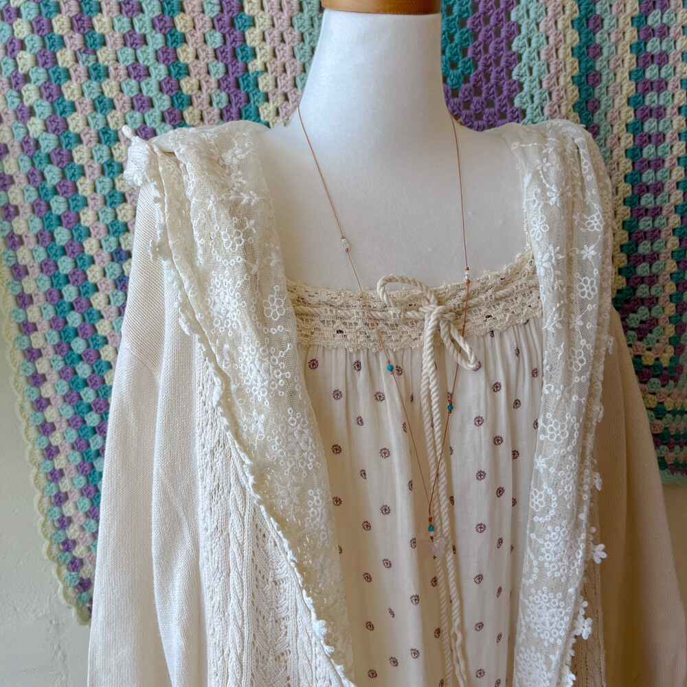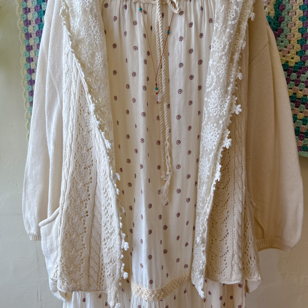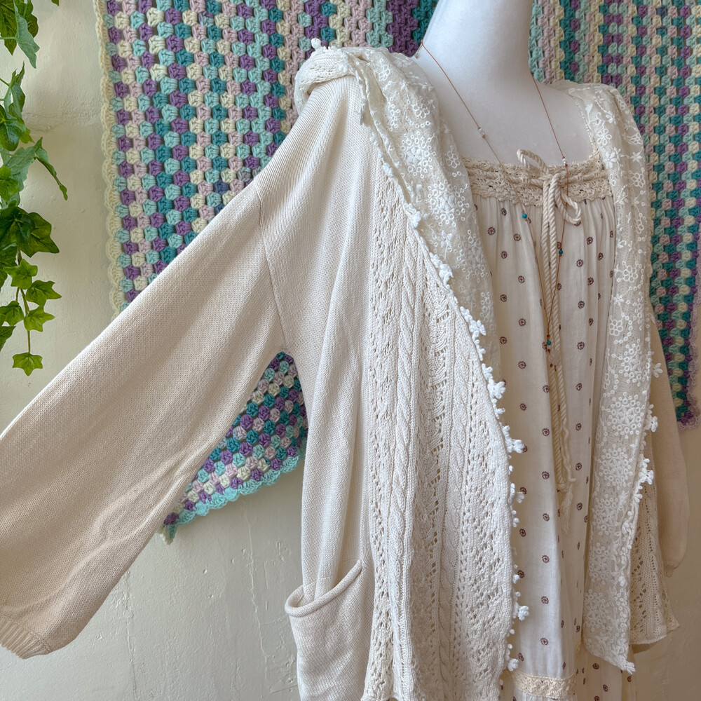 아이보리 색감의 레이스 후드 가디건이에요
