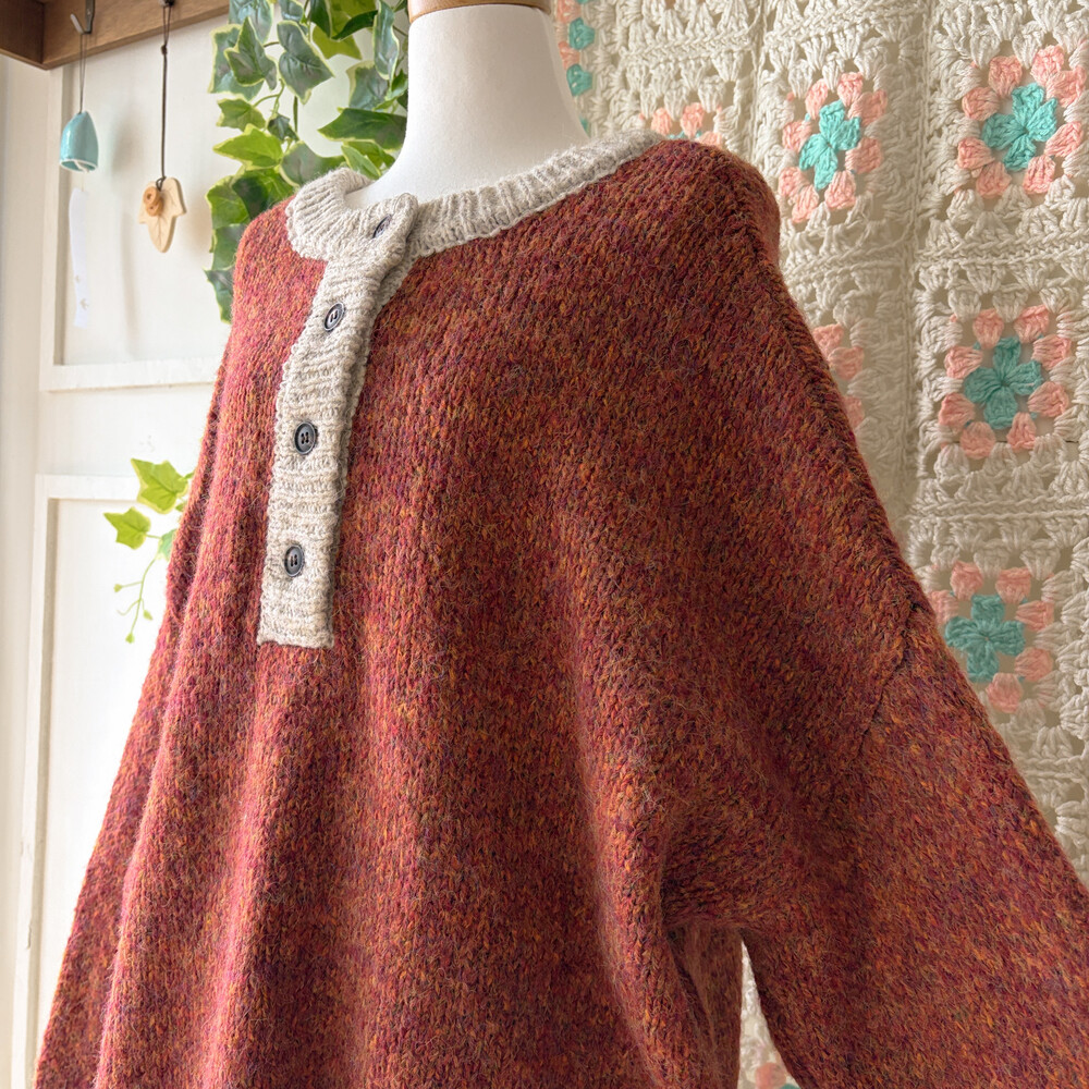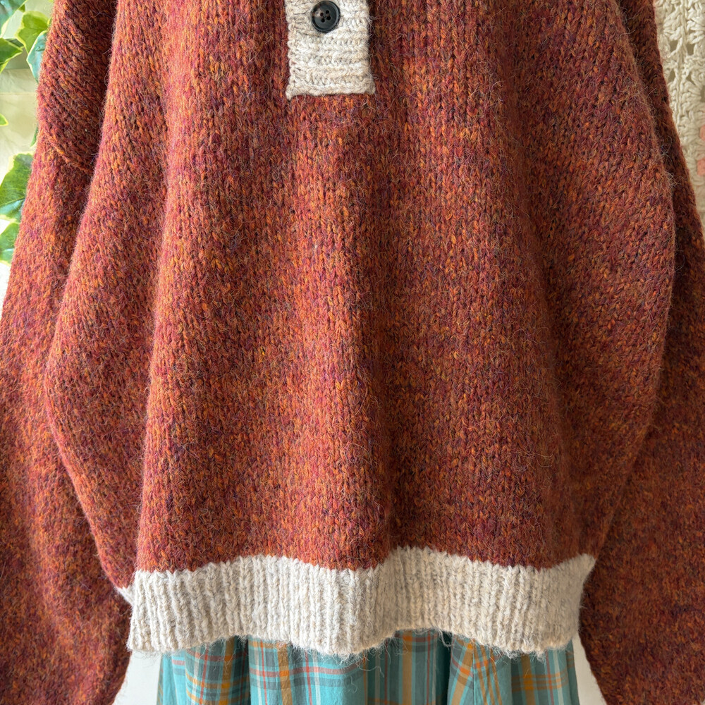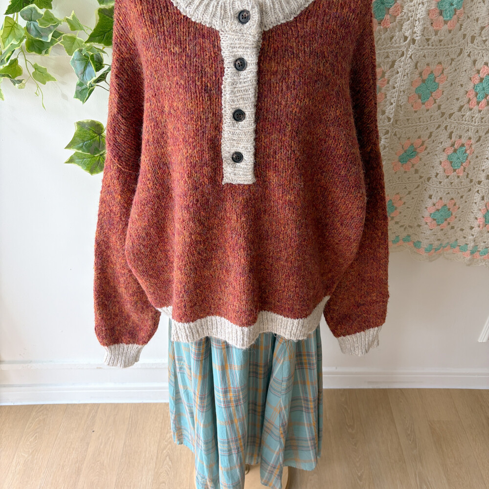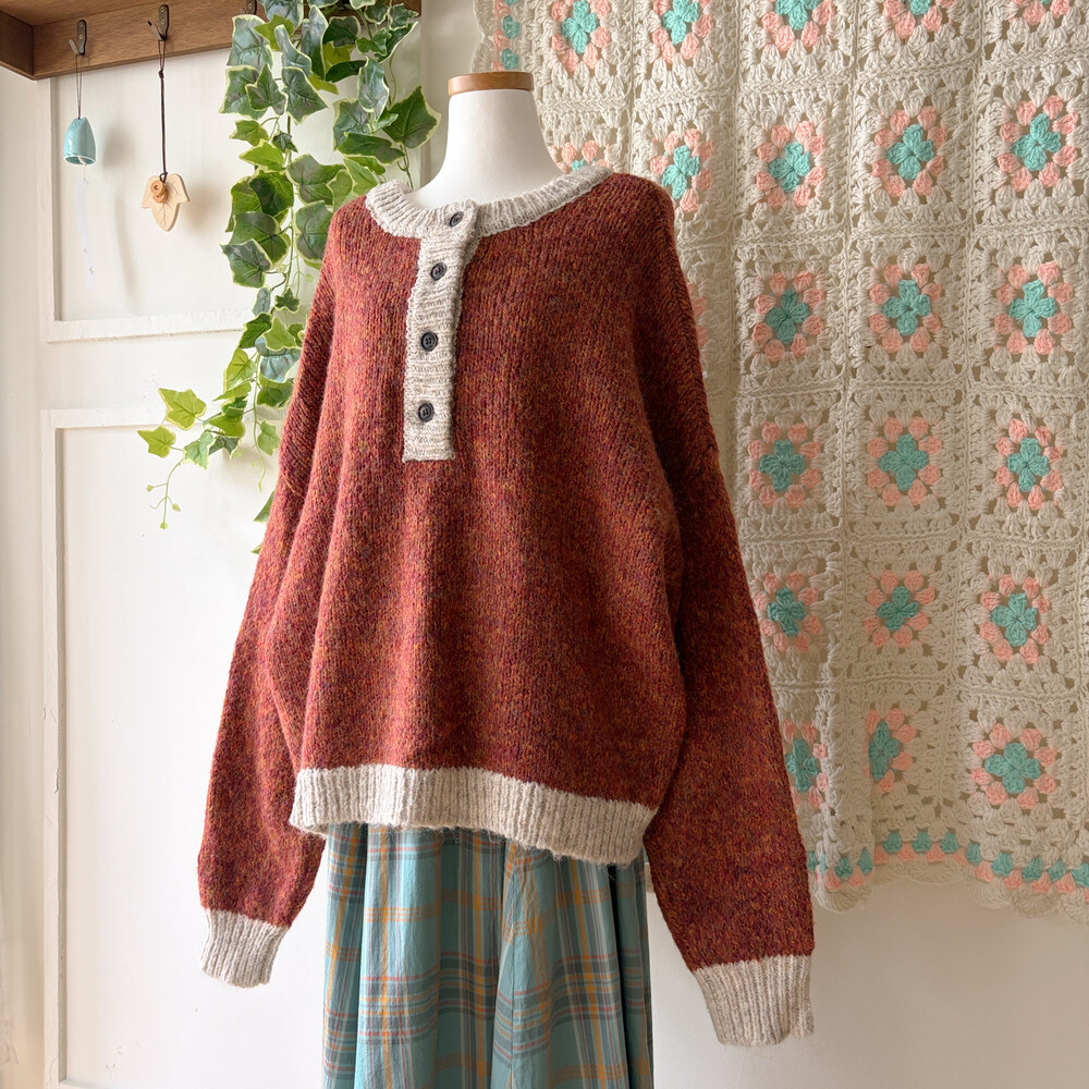 orange brown mix 4button oversize knit