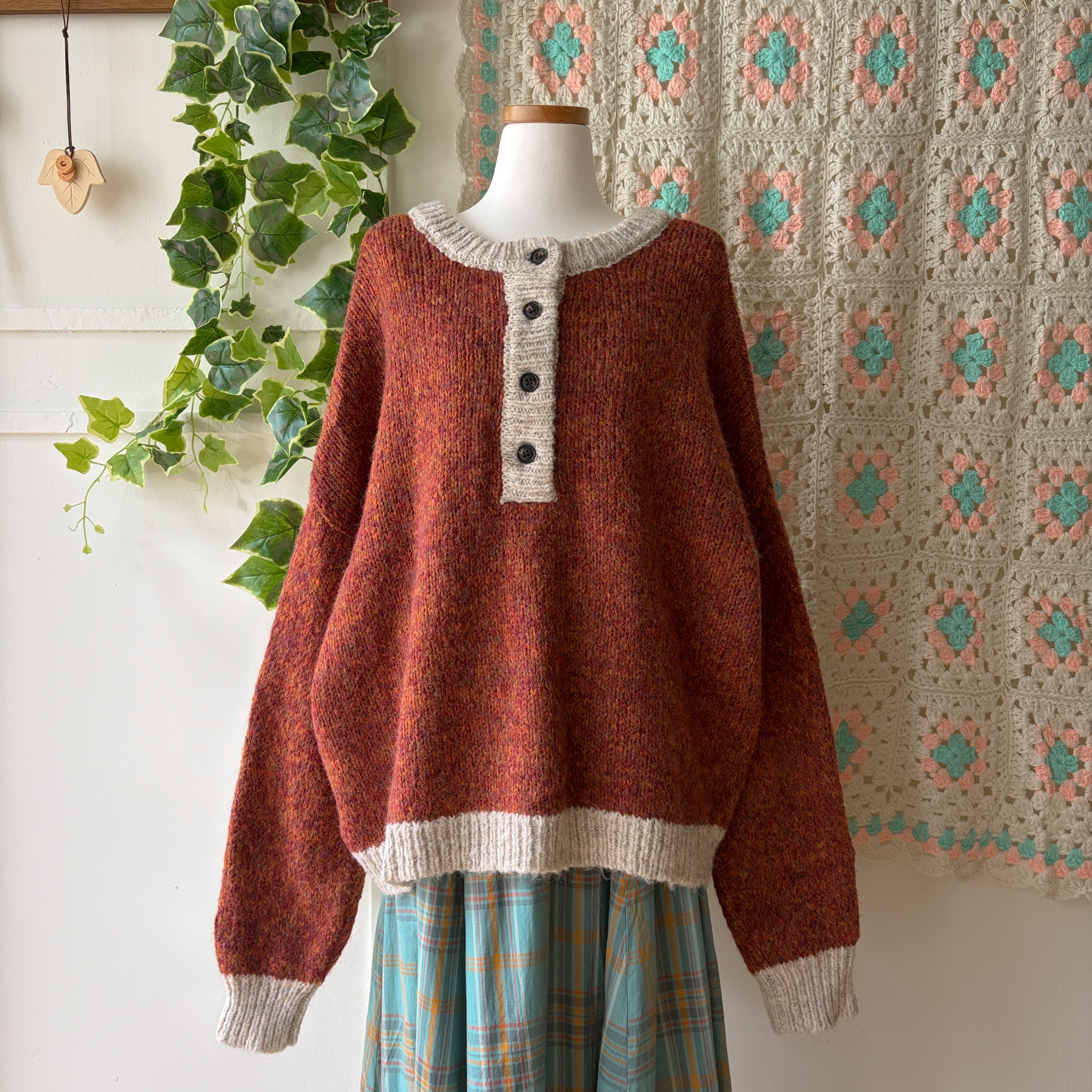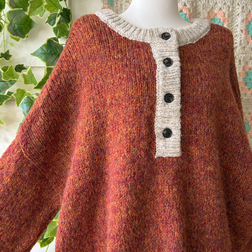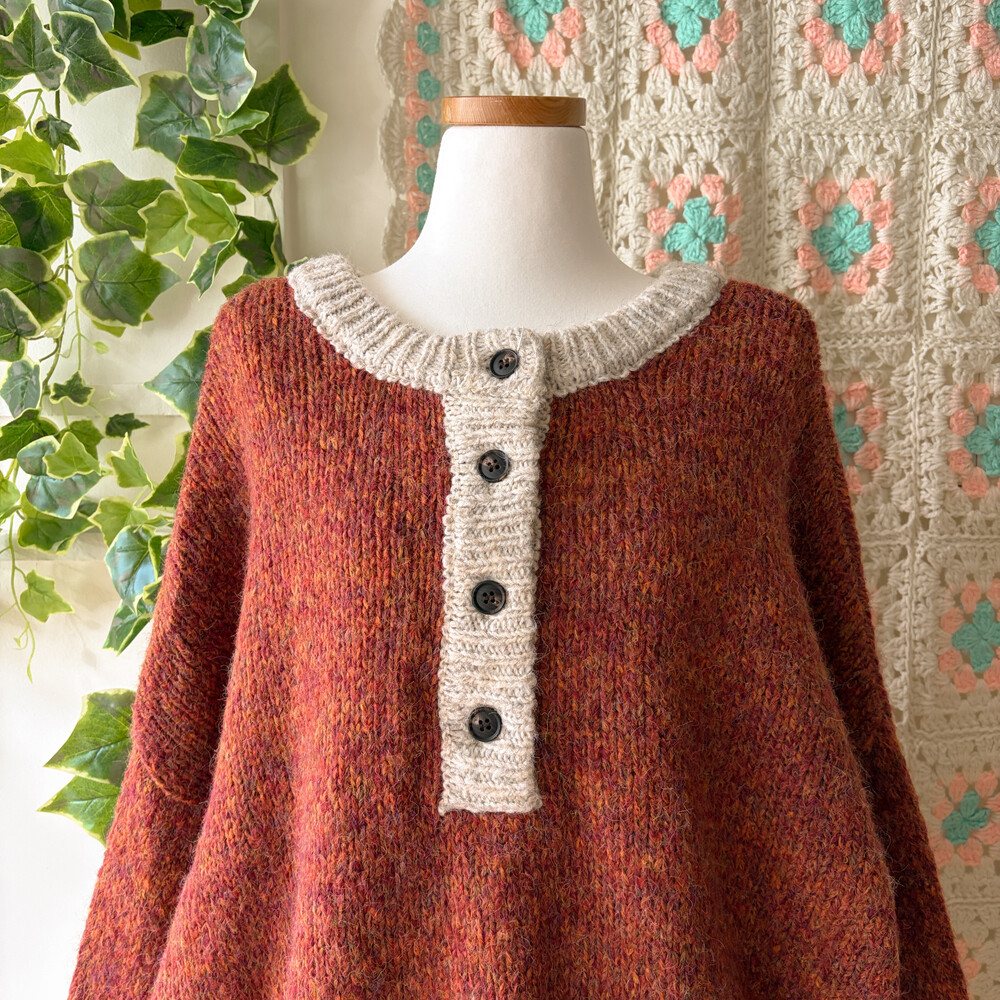 orange brown mix 4button oversize knit