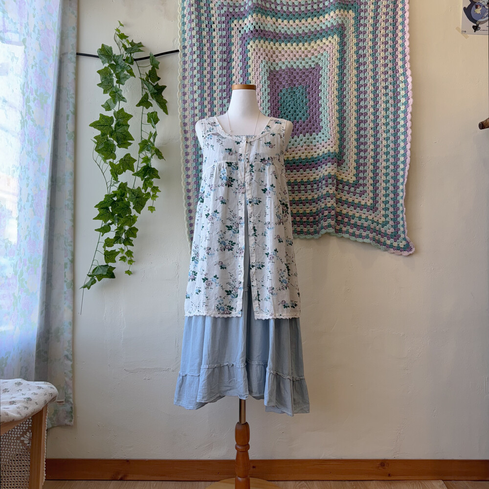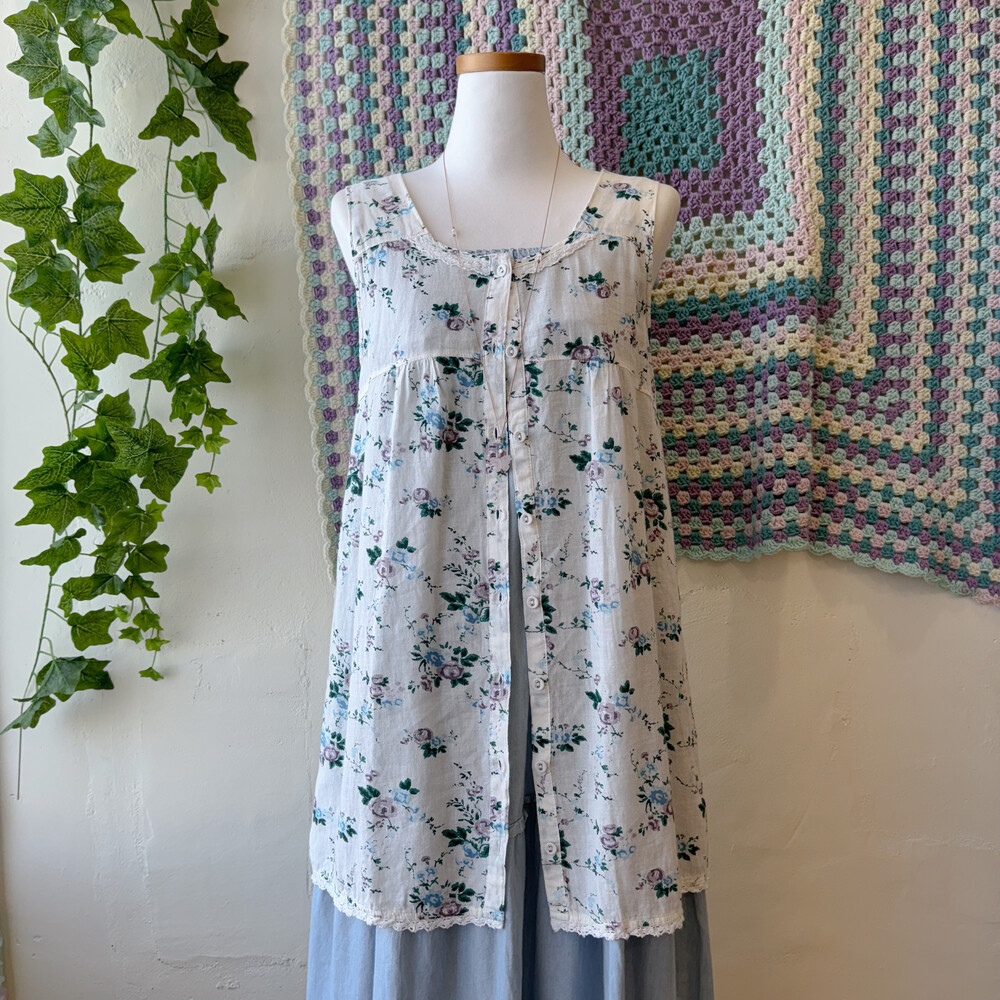 sm2 blue&purple rose sleeveless tunic