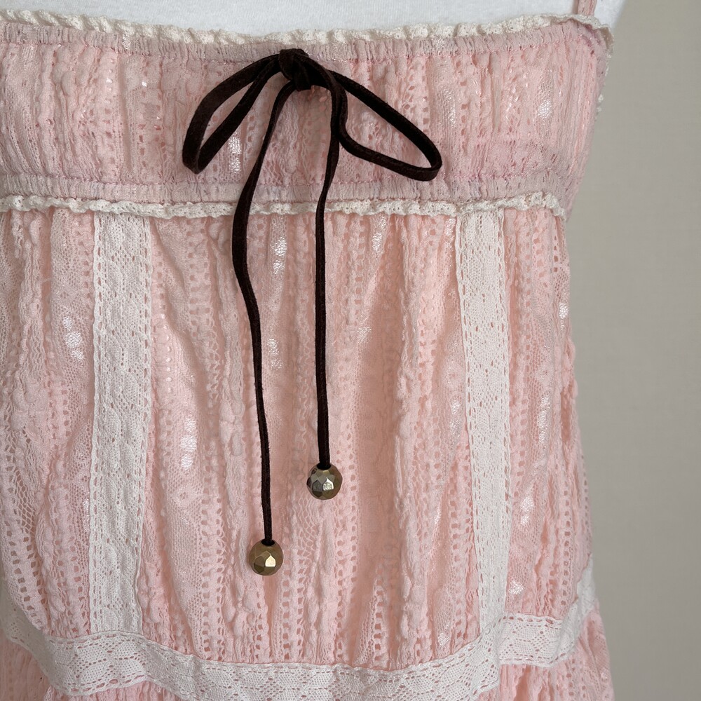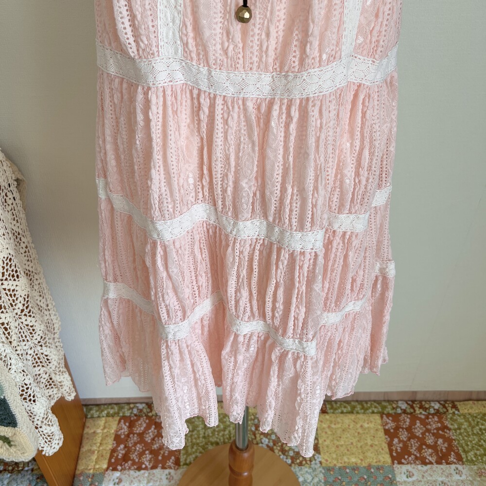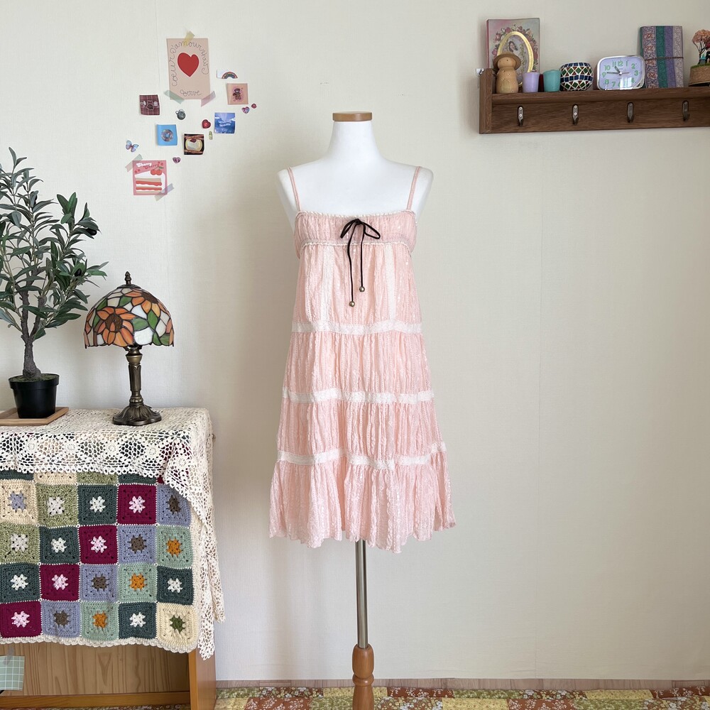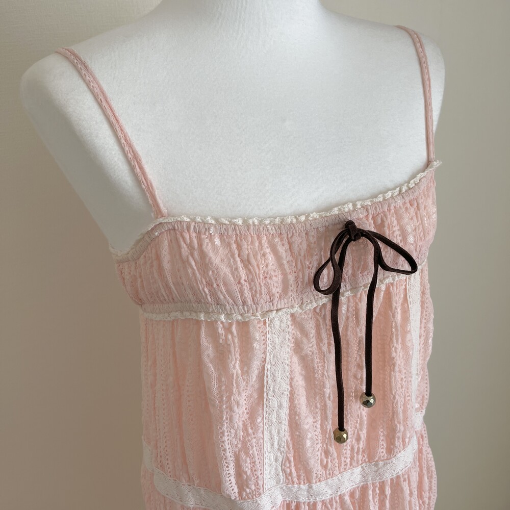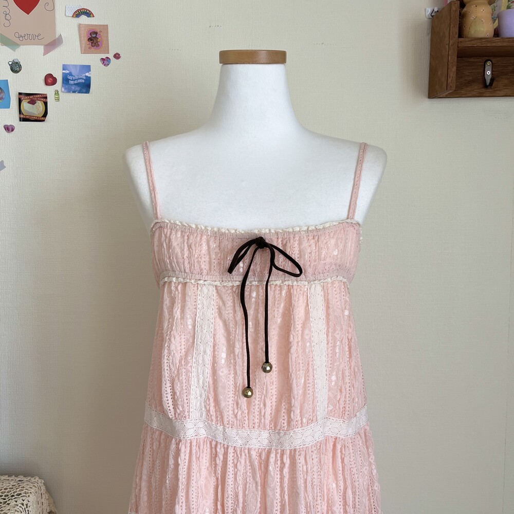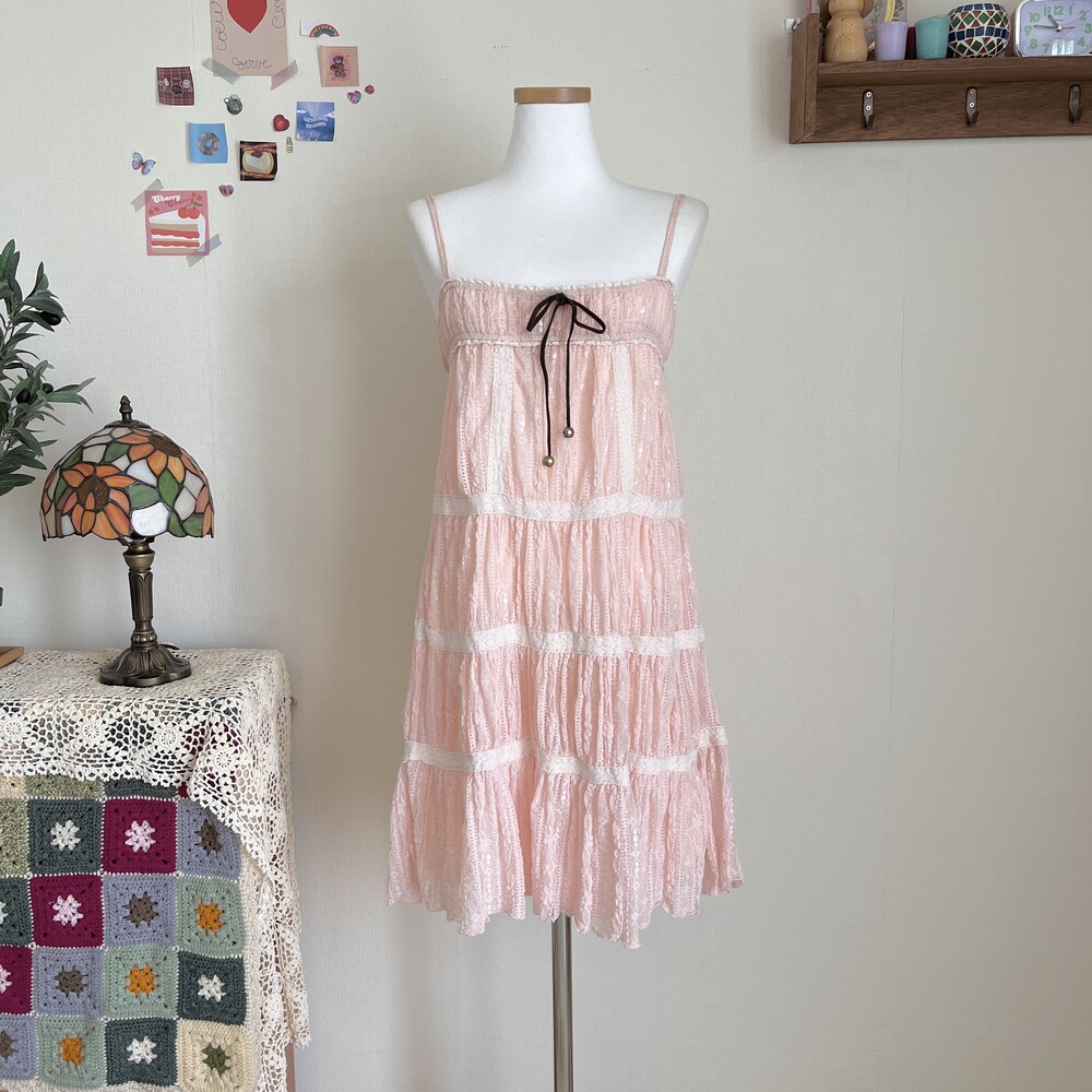 리즈리사의 분홍색감 레이스 끈 원피스예요