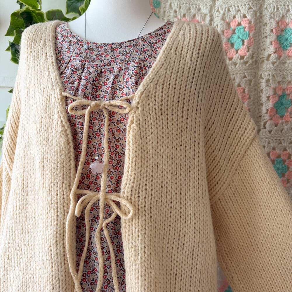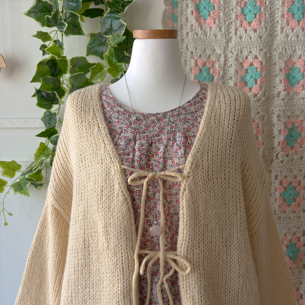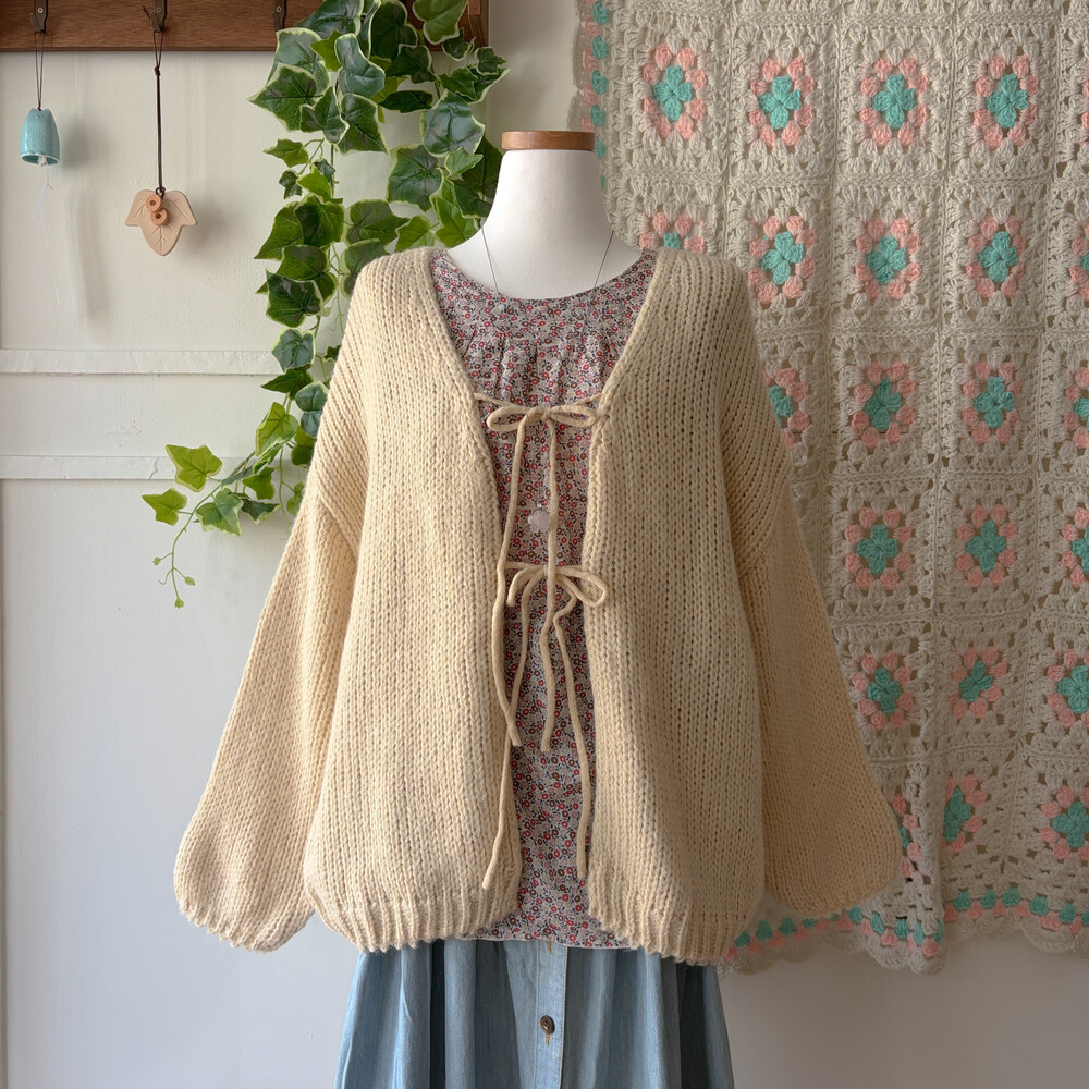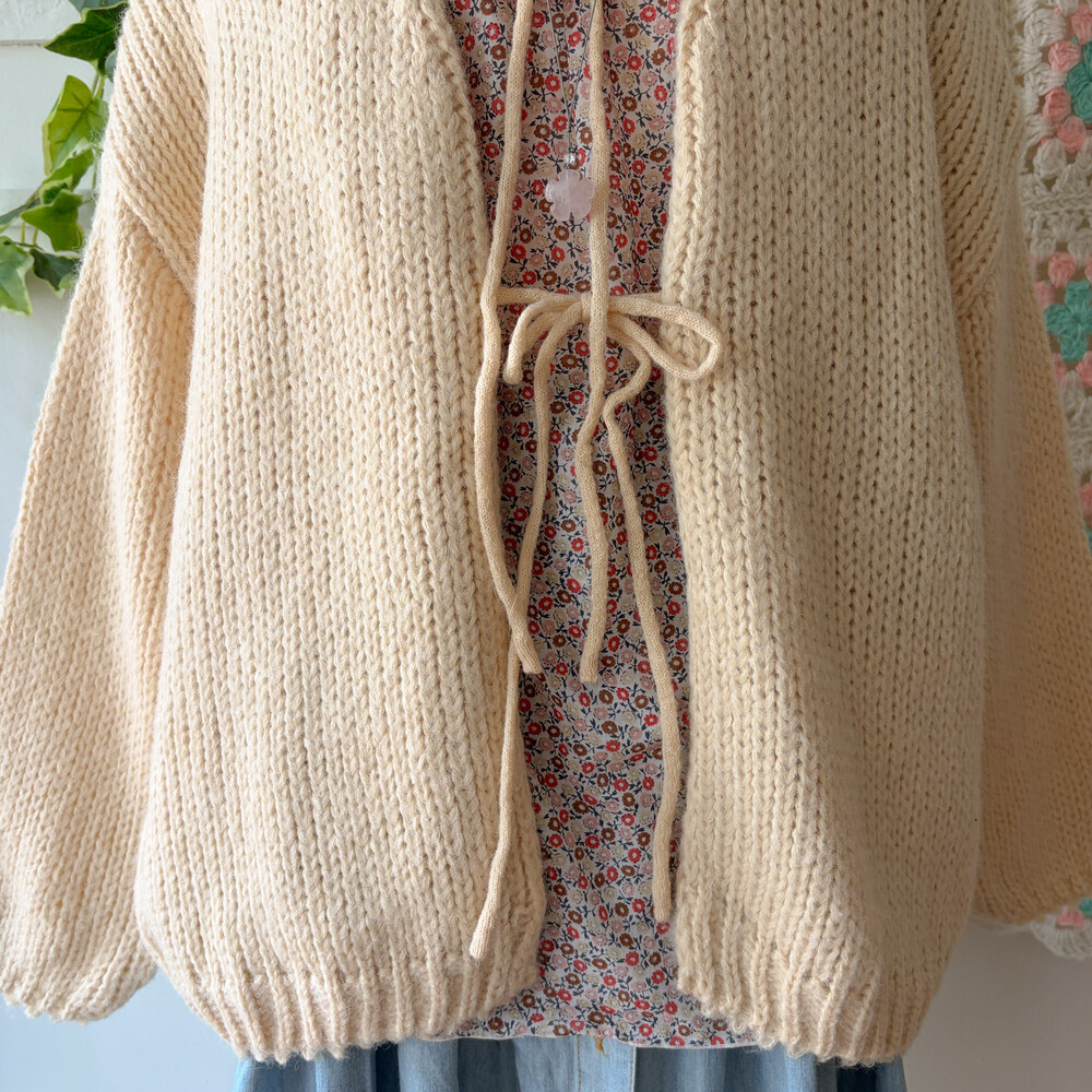 뮤트한 노란색의 2리본 오버사이즈 가디건이에요!