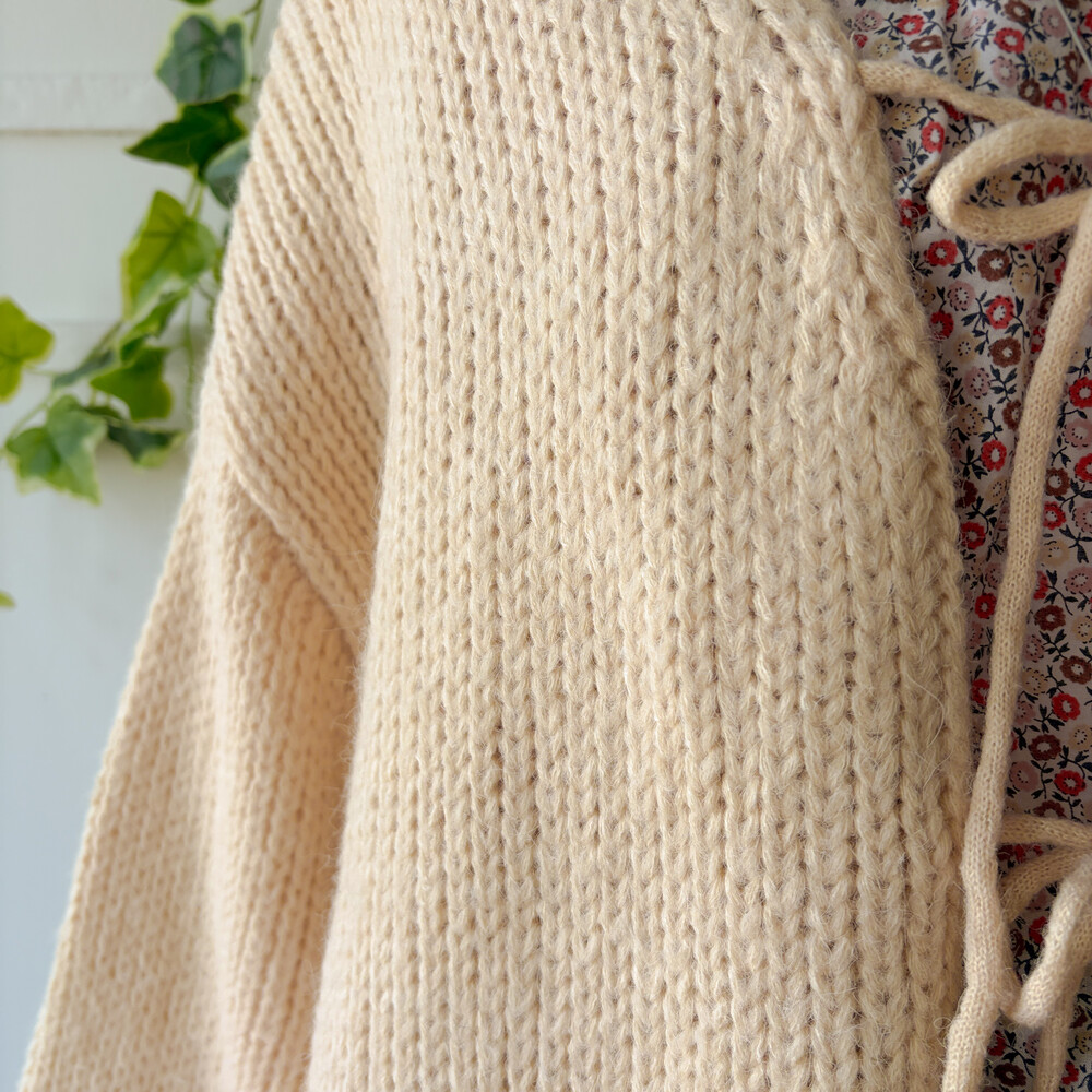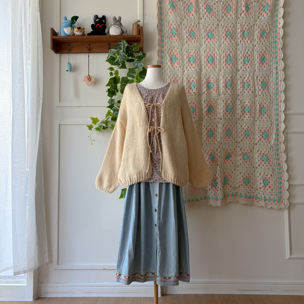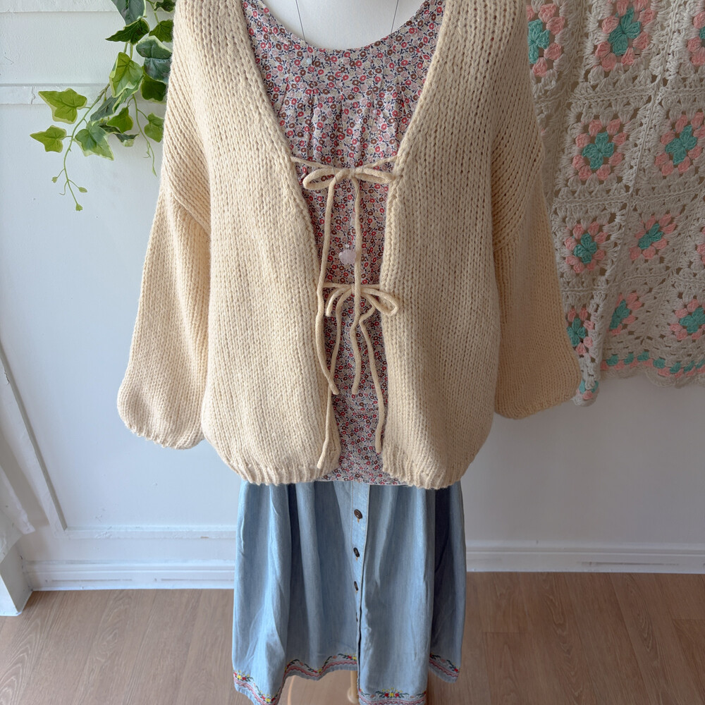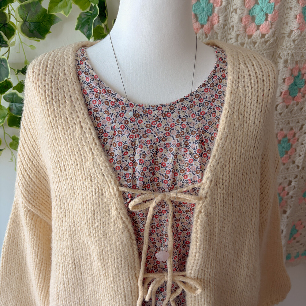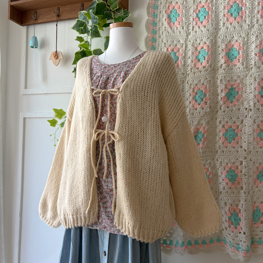 뮤트한 노란색의 2리본 오버사이즈 가디건이에요!
