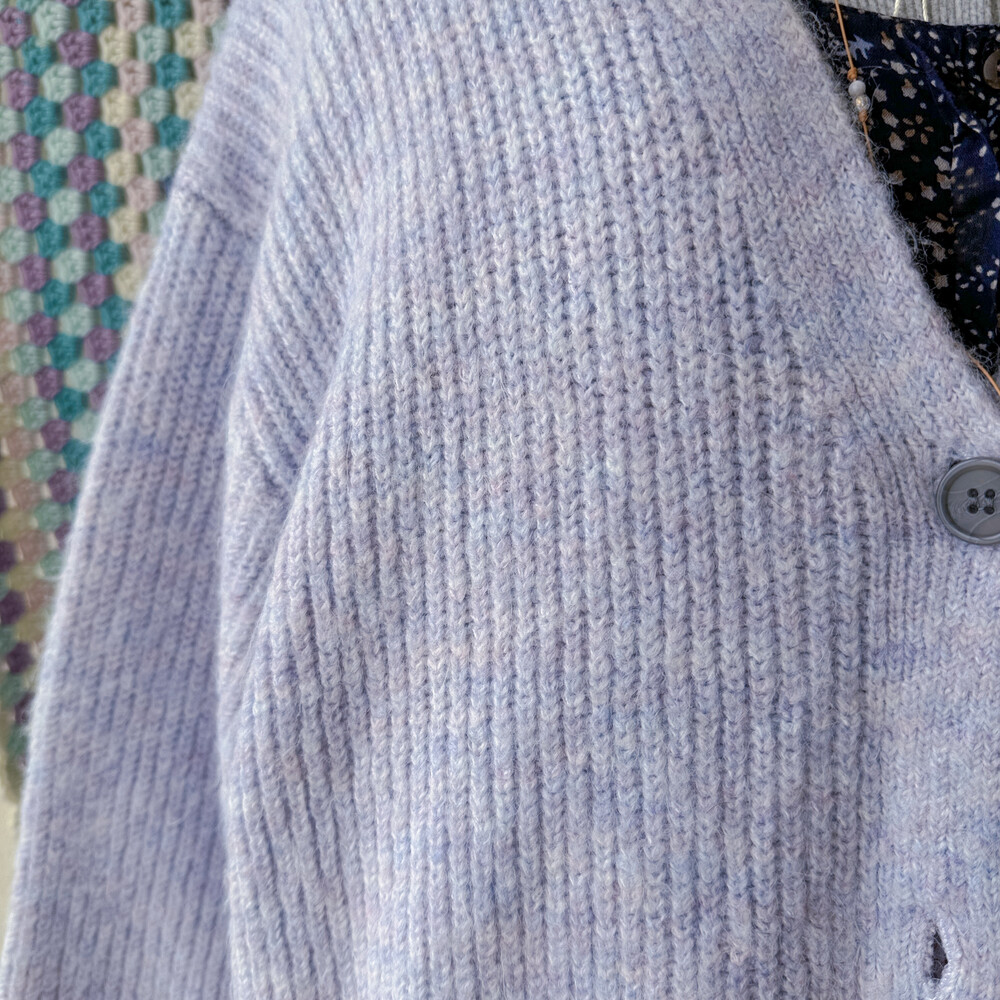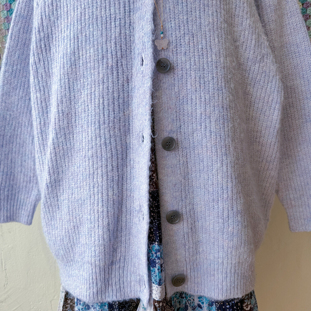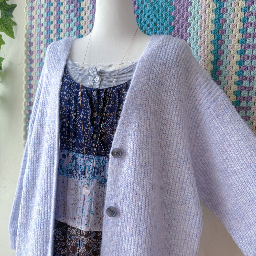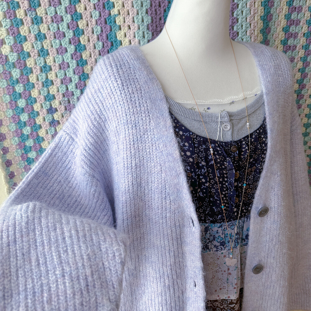 보라, 청보라색이 믹스된 브이넥 롱가디건이에요